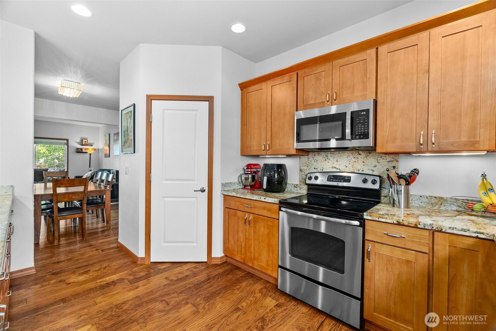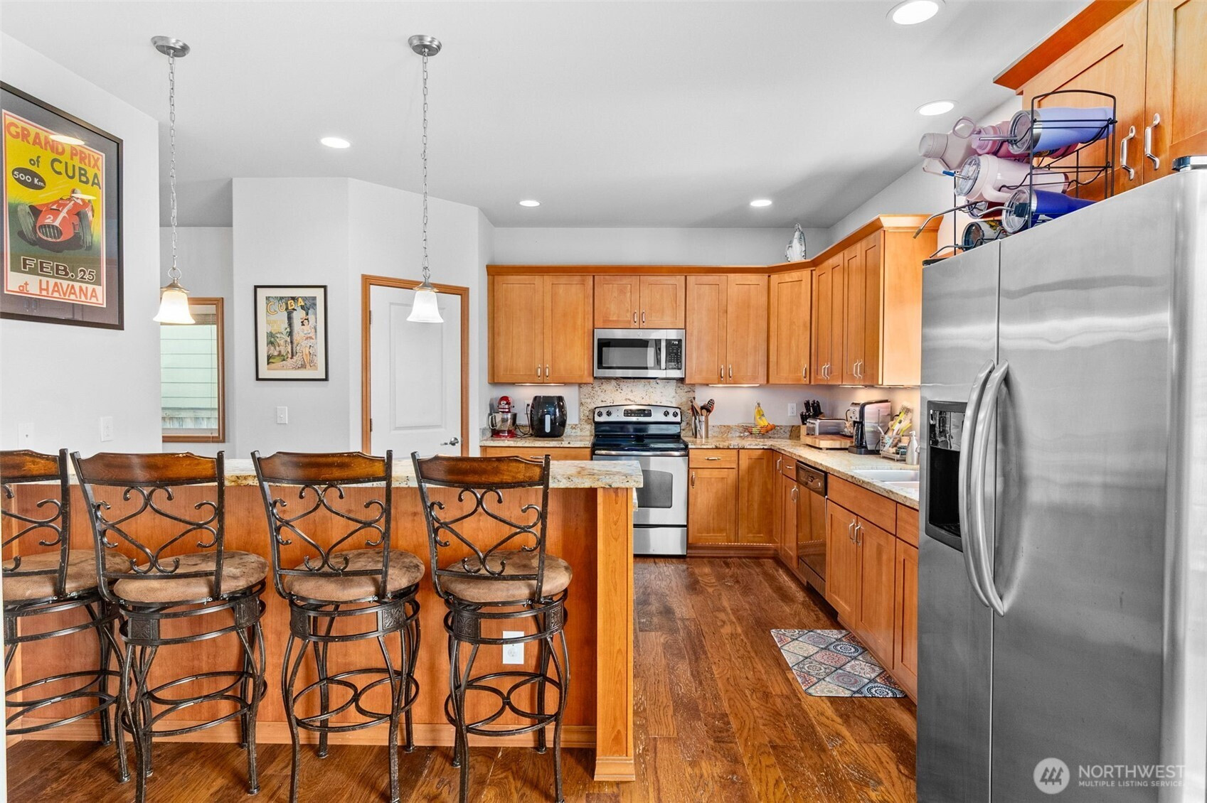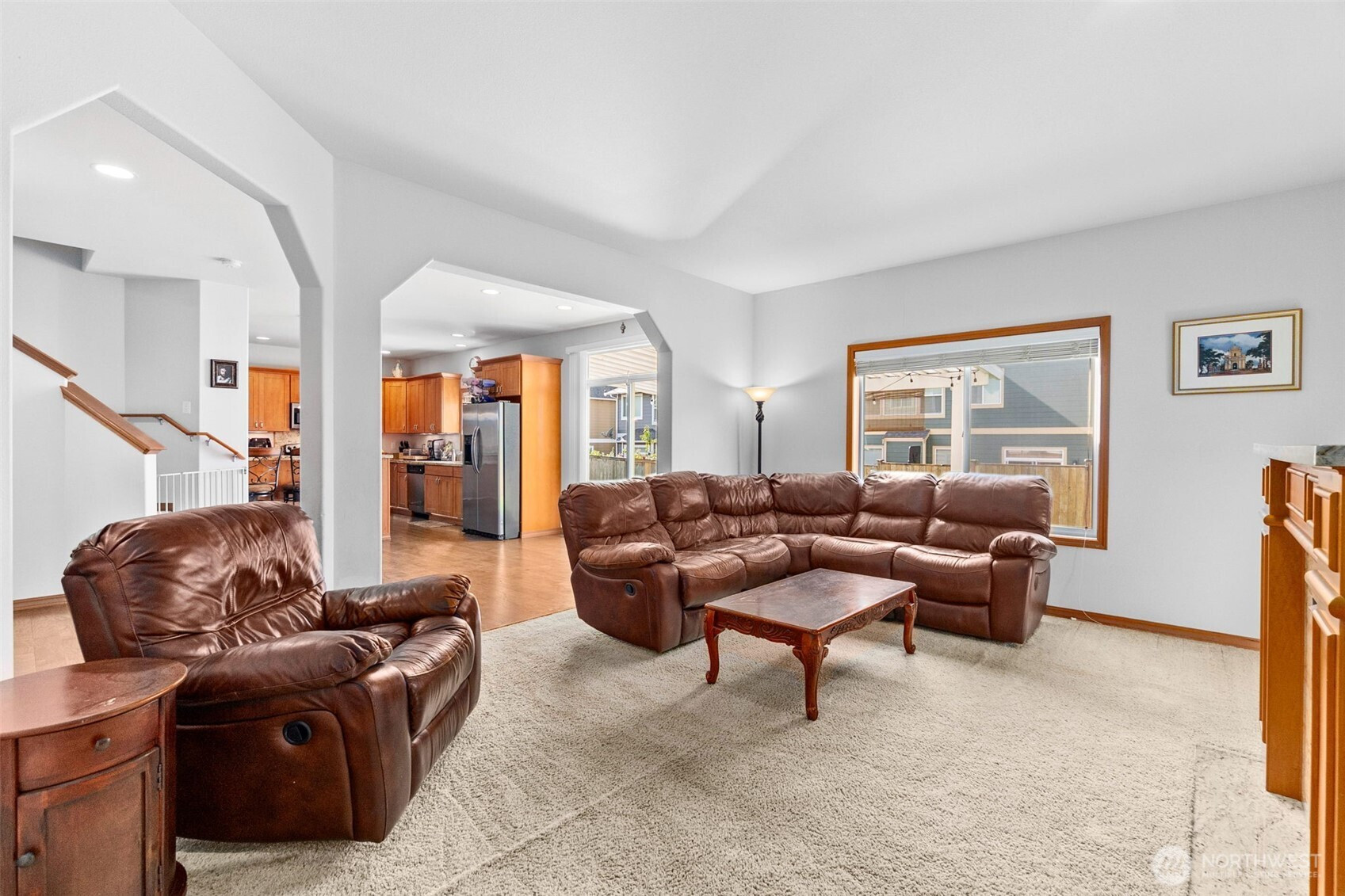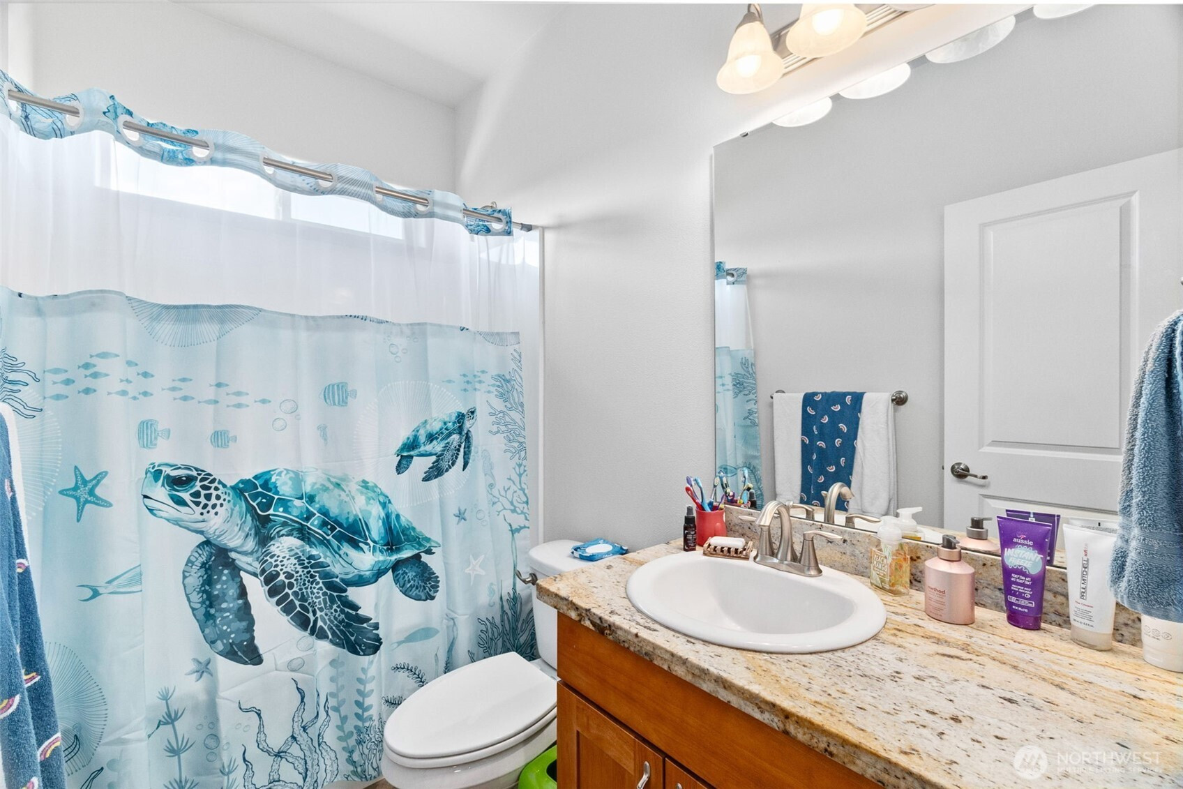 Welcome to 317 Nine Bark, a home that balances warmth, space, and everyday function in Olympia’s sought-after Westside. From the moment you step inside, you’ll notice the natural light, tall ceilings, and thoughtful layout that make the space feel instantly comfortable. The kitchen anchors the main level with granite counters, stainless appliances, and a large peninsula perfect for cooking, conversation, or casual meals. The open living area centers around a cozy gas fireplace, creating the perfect spot to unwind. Upstairs offers four bedrooms, a generous loft space, and a private primary suite with a walk-in closet and soaking tub. Outside, enjoy a fully fenced yard, mature trees, and a patio ready for quiet mornings or lively gatherings.