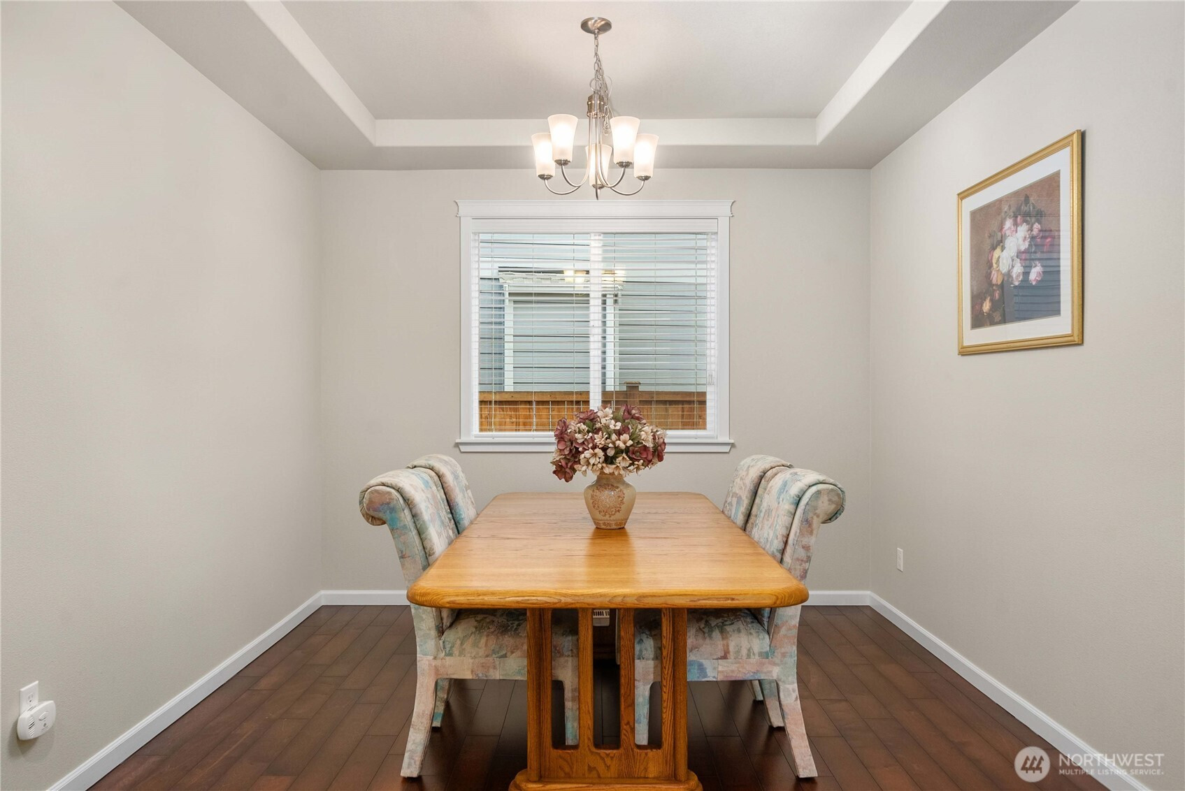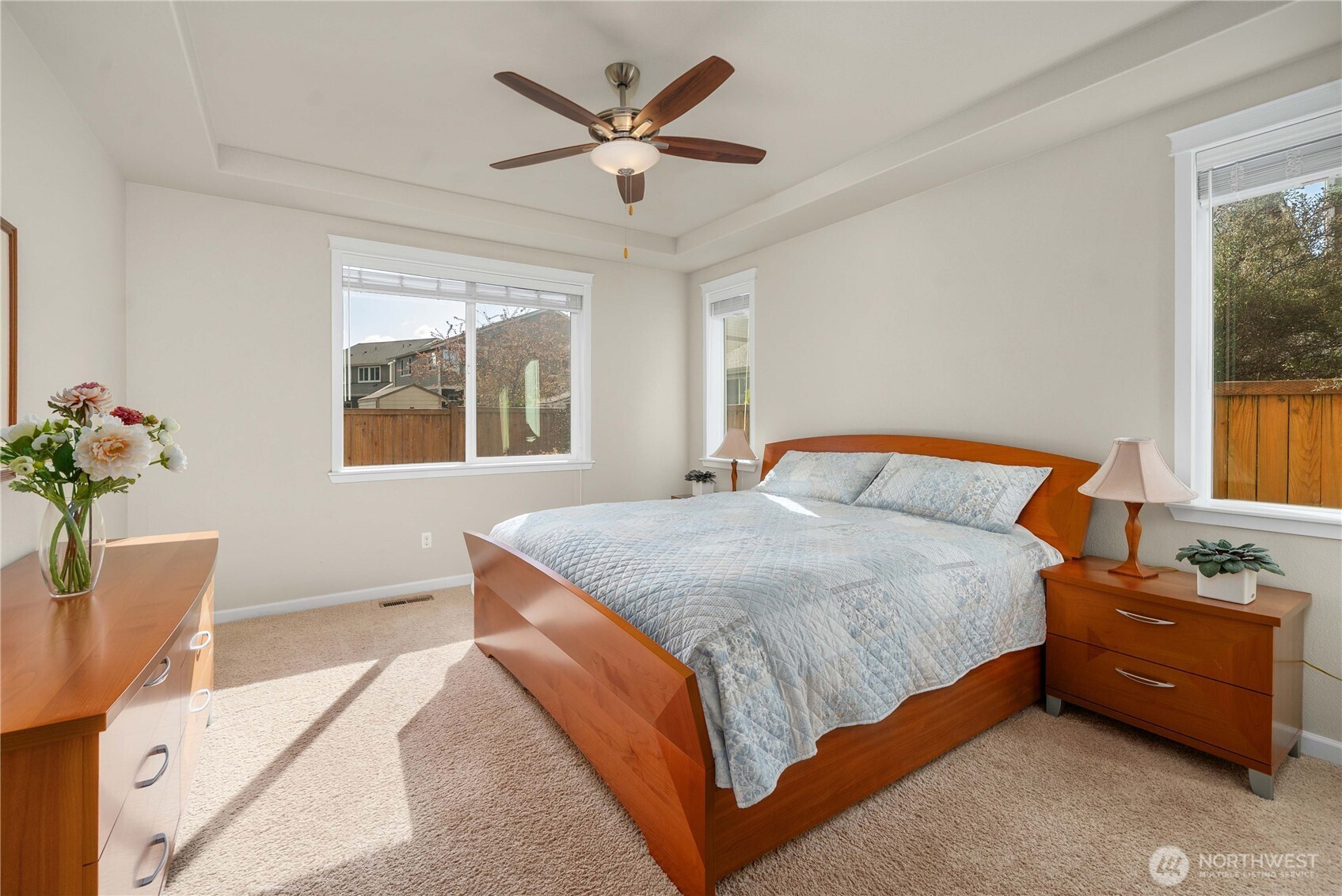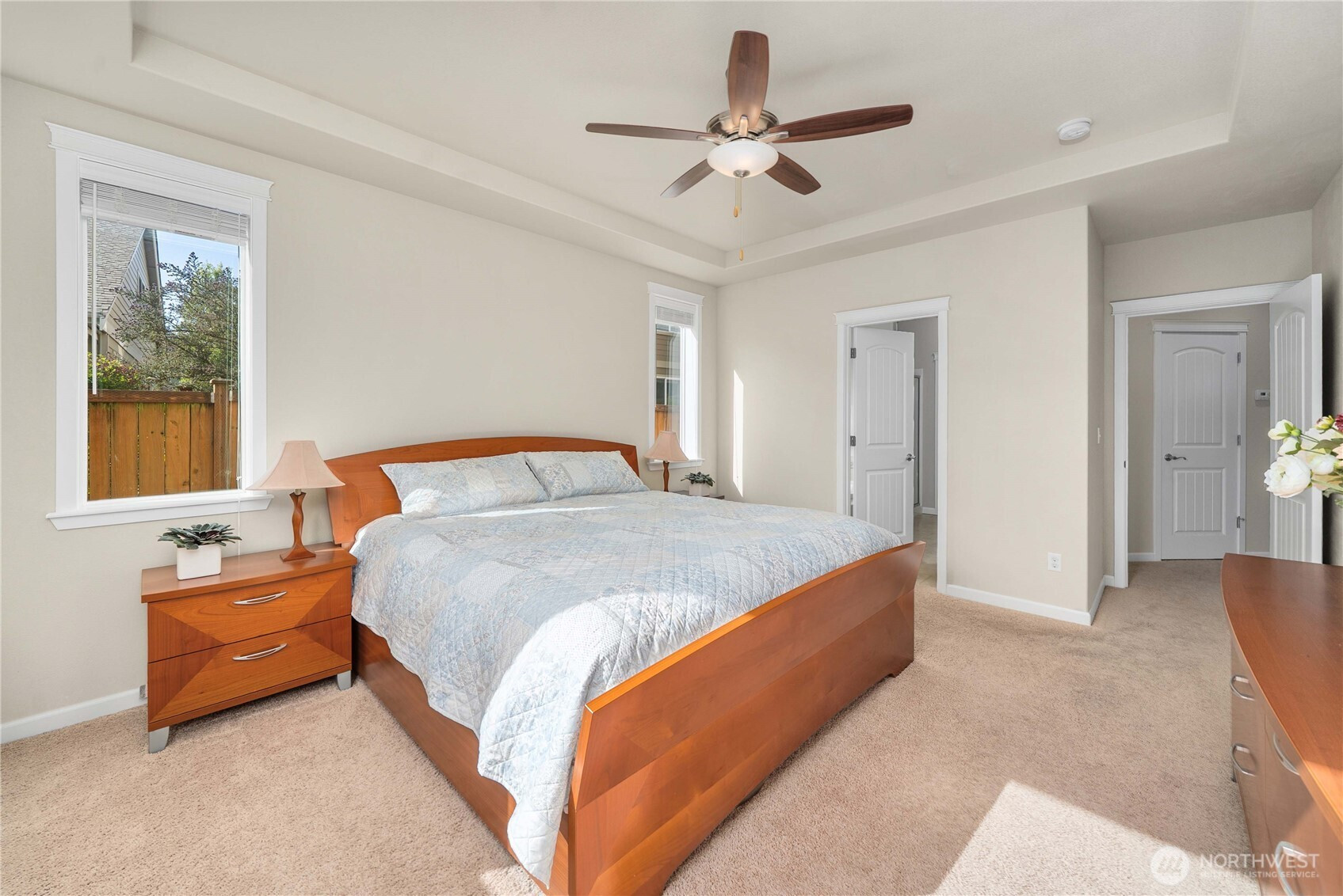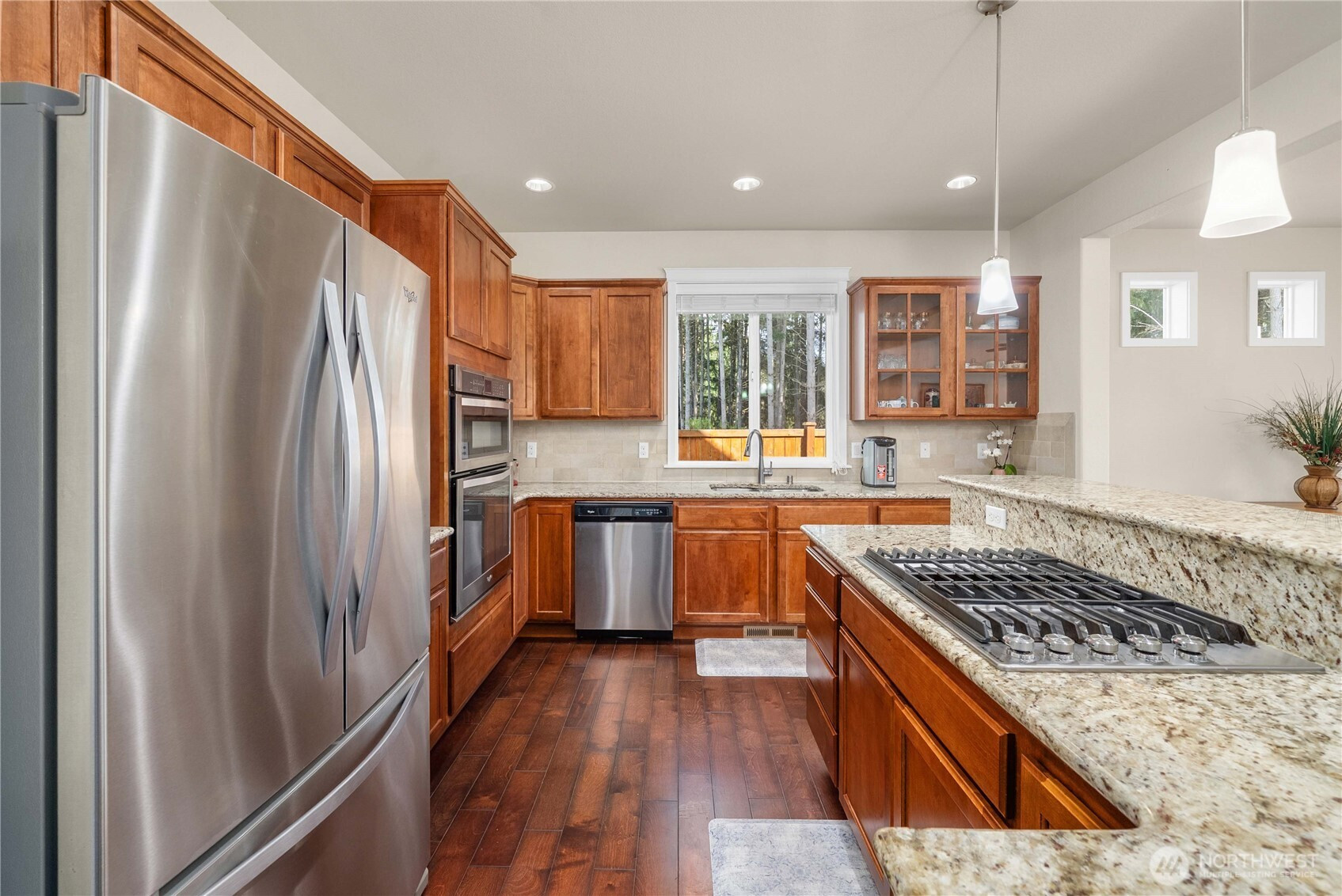 Tucked away on a quiet cul-de-sac that backs to a private greenbelt, this spacious home offers sought-after main-level living, a versatile floor plan, and an entertainer’s kitchen designed to bring people together. The MAIN LEVEL PRIMARY SUITE provides a private retreat, complete with a dual vanity, walk-in shower, separate soaking tub, and a generous WI closet. A 2nd bedroom on the main is conveniently located next to a full bathroom—ideal for guests, multi-generational living, or office. The heart of the home features a beautifully designed kitchen w/slab granite countertops, SS appliances, oak cabinetry and a gas stovetop built into the large center island with seating for 6—creating a natural gathering space for cooking, dining, and entertaining. Enjoy hosting in the formal dining room or casual mornings in the breakfast nook w/direct access to the covered back patio—perfect for BBQs and year-round outdoor living. Spacious kitchen flows seamlessly into the great room w/a cozy gas FP, while white painted millwork & rich engineered hardwood flooring add warmth & character throughout the main living spaces. Upstairs, the 3rd & 4th bedrooms & full bath provide flexible living space. Step outside to enjoy the fully fenced yard, complete with sprinkler system, raised beds & a covered patio designed for year-round PNW living. Ideally located within the sought-after Olympia School District & min to shopping, dining, parks, golf, JBLM and easy I-5 access!
