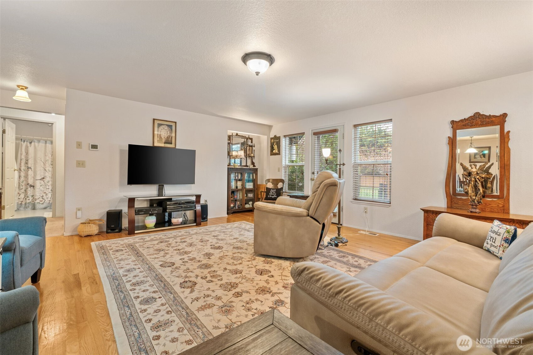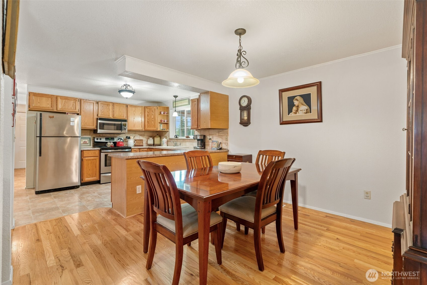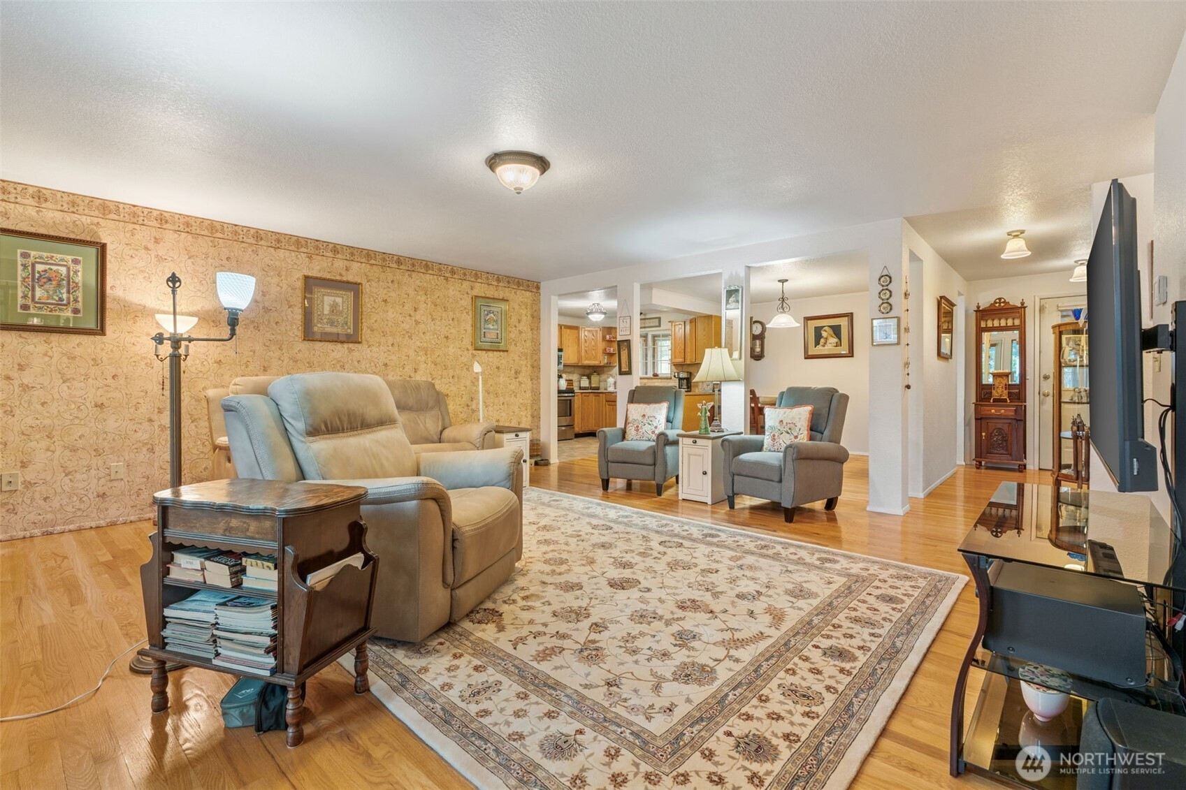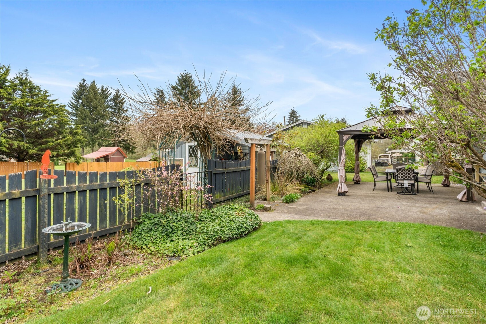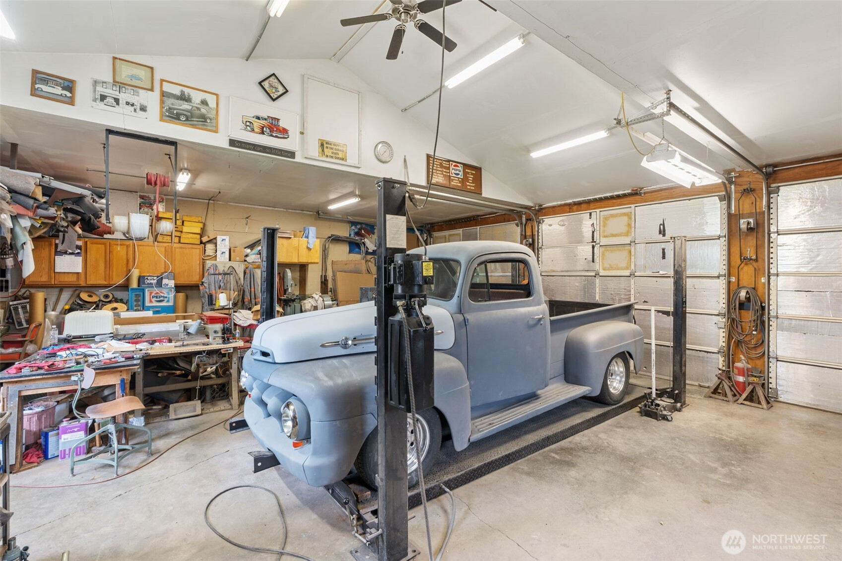 Spacious and beautifully maintained 3-bedroom, 2-bath rambler featuring an open floor plan and beautiful oak hardwood floors. The kitchen offers a stunning stone backsplash formica counter, while the main bath has been updated with a new tile shower and granite countertop. Additional upgrades include a new hot water heater. Situated on 2 private acres, this property is a dream for car enthusiasts and hobbyists alike, with a detached shop complete with a hydraulic lift and an additional outbuilding with a compressor for extra workspace and storage. Underground sprinklers add convenience, and best of all this property is not part of an HOA!