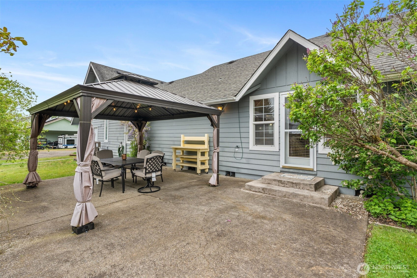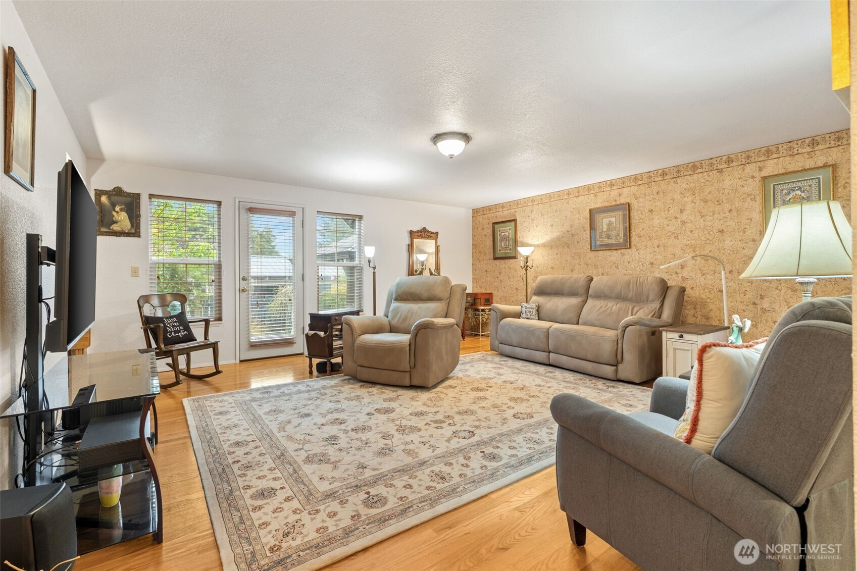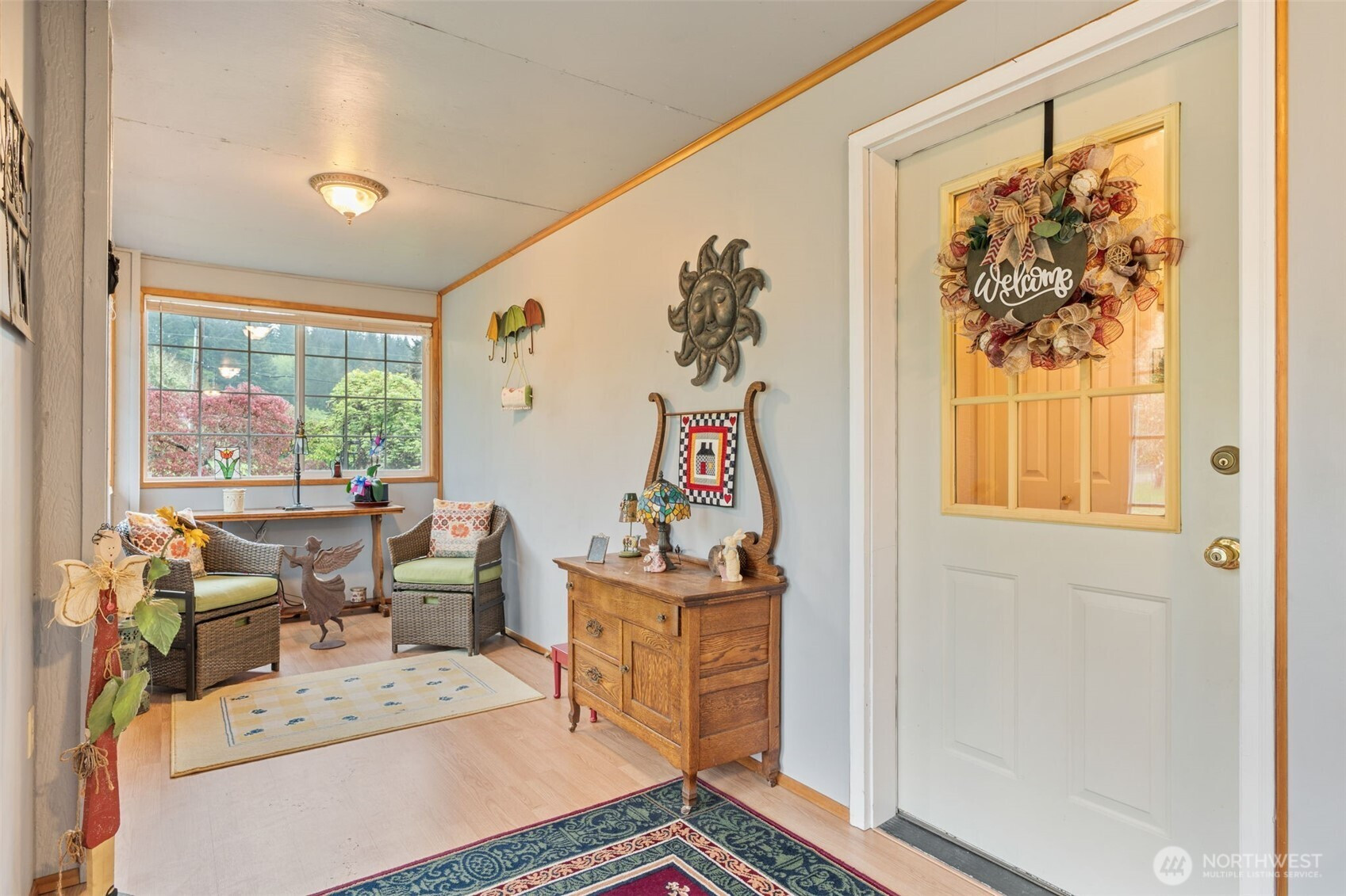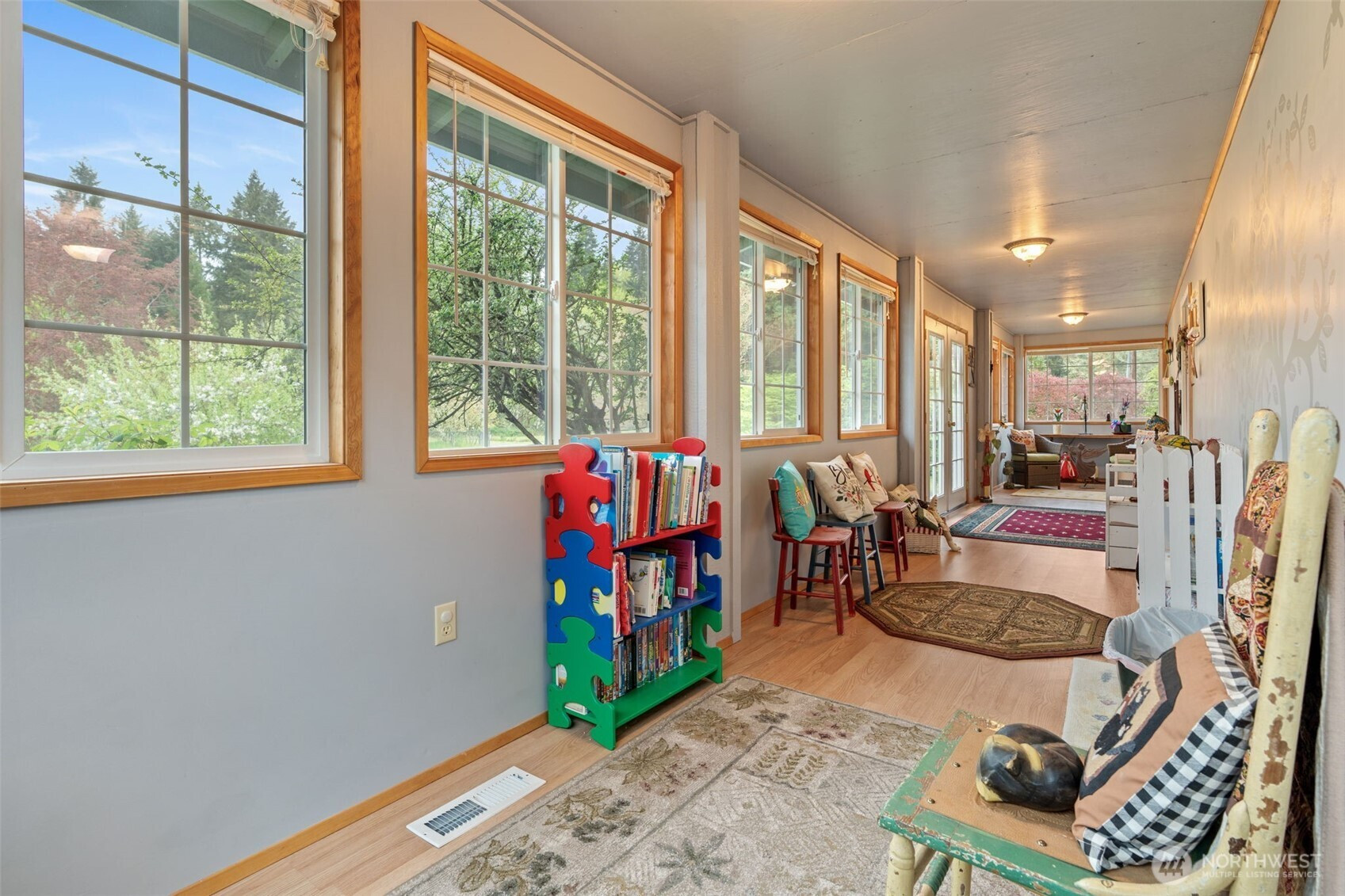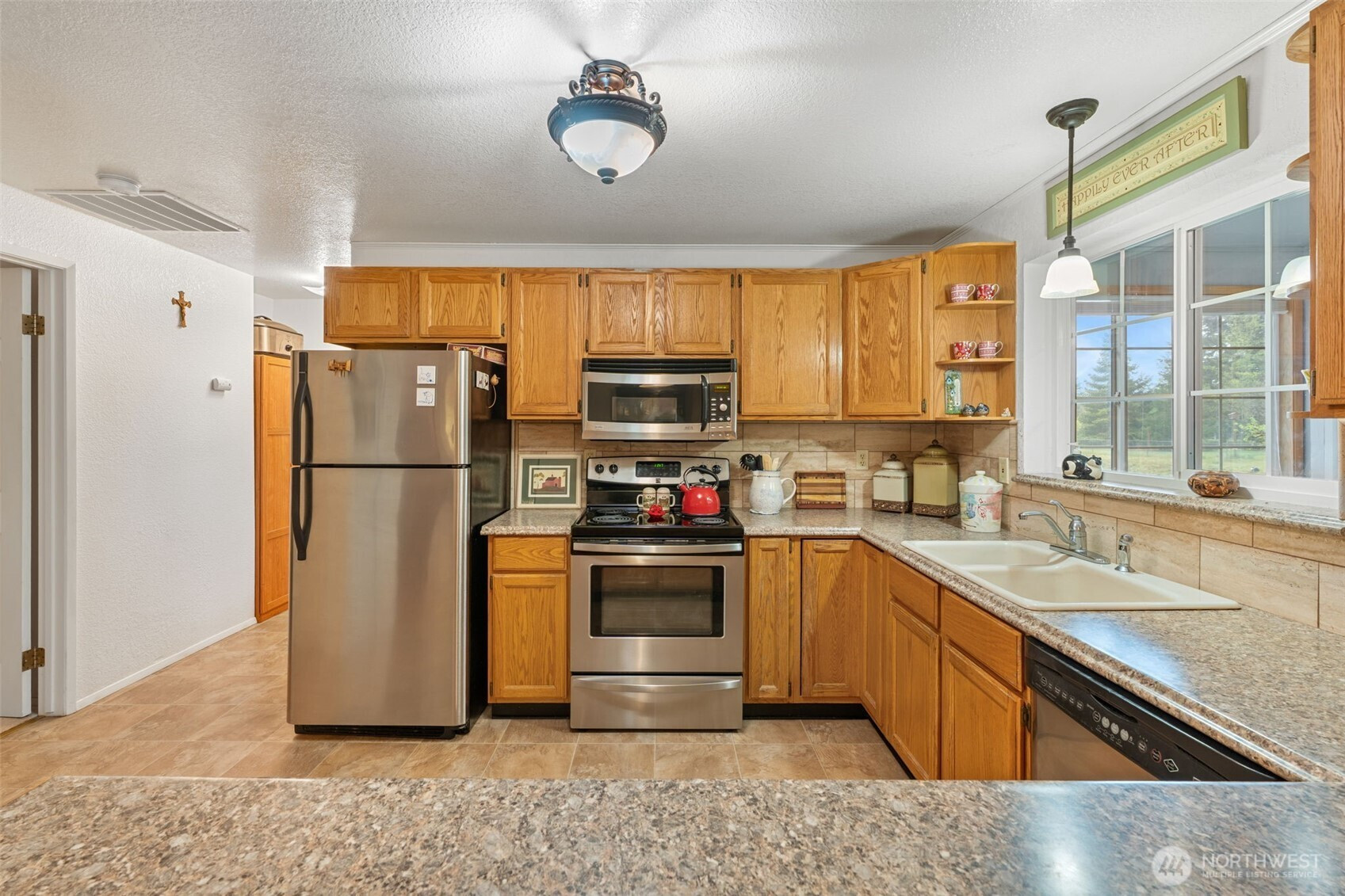Spacious and beautifully maintained 3-bedroom, 2-bath rambler featuring an open floor plan and beautiful oak hardwood floors. The kitchen offers a stunning stone backsplash formica counter, while the main bath has been updated with a new tile shower and granite countertop. Additional upgrades include a new hot water heater. Situated on 2 private acres, this property is a dream for car enthusiasts and hobbyists alike, with a detached shop complete with a hydraulic lift and an additional outbuilding with a compressor for extra workspace and storage. Underground sprinklers add convenience, and best of all this property is not part of an HOA!