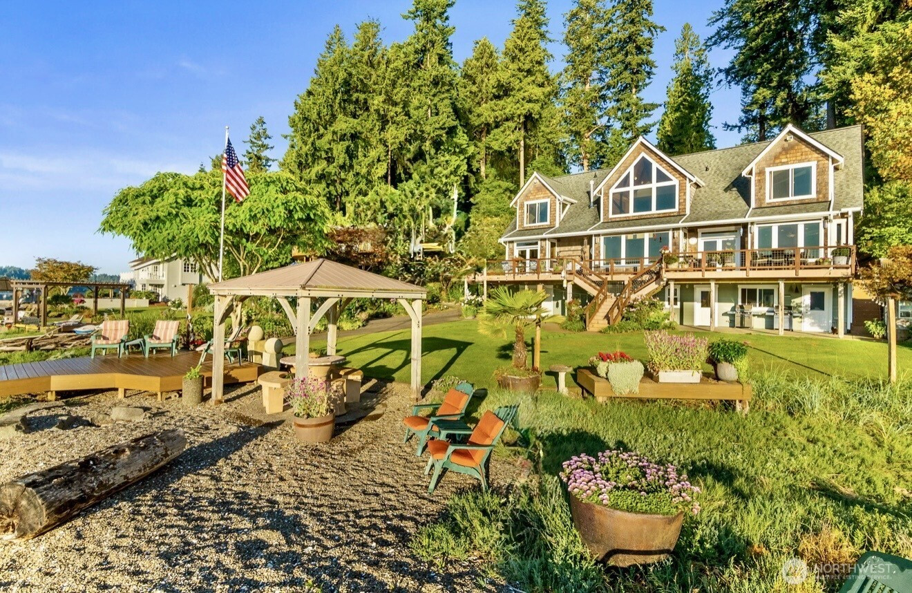 Experience the ultimate waterfront lifestyle on Eld Inlet at Flapjack Point in the desirable Griffin School District and Steamboat Island Community. This rare no-bank property offers 180-degree views from one of Thurston County’s finest beaches, creating a true everyday retreat. This one-owner home features a traditional yet versatile floorplan with vaulted ceilings, large picture windows, and a spacious gourmet kitchen ideal for entertaining. Two primary suites, each with full baths and walk-in closets, plus multiple flexible spaces for an office, gym, studio, arts and crafts, or guest use. This home adapts to your lifestyle. New carpet & pad throughout the main home & efficiency studio above the detached shop, and fresh interior paint. The daylight basement includes a full kitchen, 3/4 bath, and additional living quarters. Enjoy mature, vibrant & colorful landscaping, a covered gazebo at the water’s edge, and endless opportunities to relax or host gatherings. A private boat launch, moorage buoy, with included tideland, complete this exceptional setting. Additional highlights include an attached 2-car garage, basement utility garage, detached 3-car shop, and a fully functional 1,000± sq ft studio apartment—perfect for guests or extended living. A rare opportunity to own a one-of-a-kind Pacific Northwest waterfront retreat. Come take a look and make your dreams become a reality.