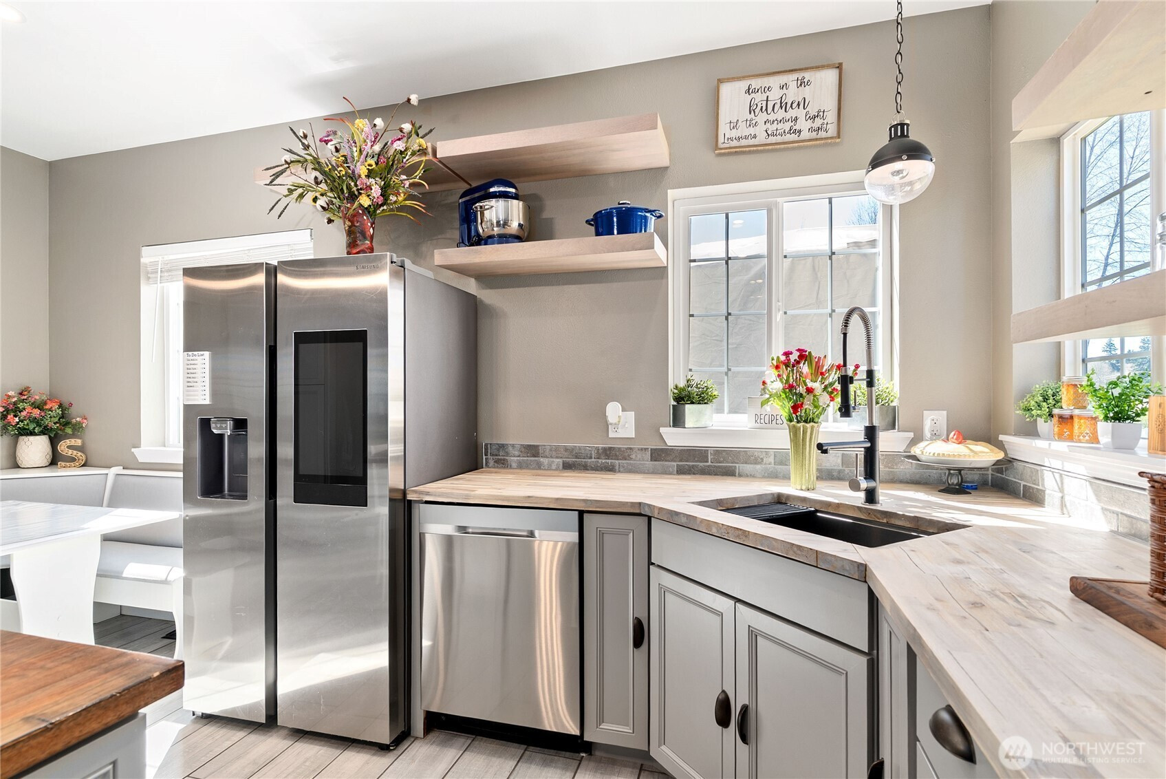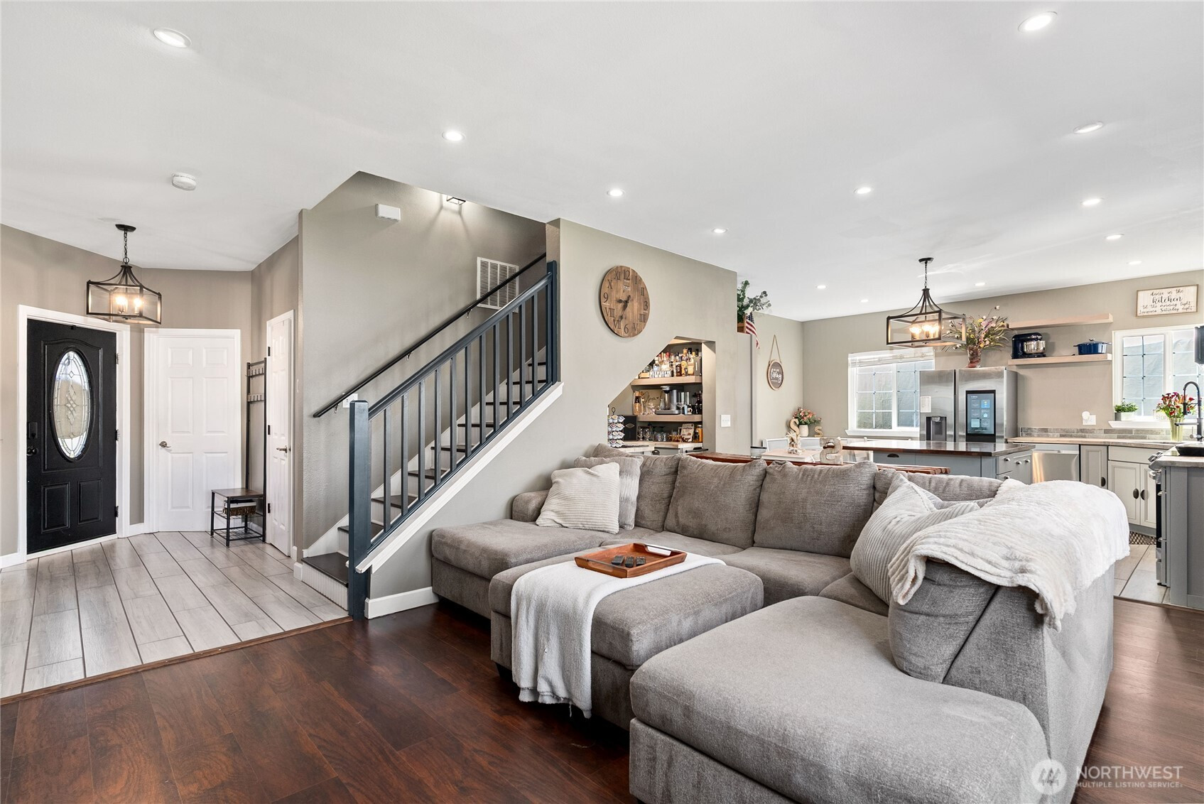 Welcome Home to this exceptionally maintained property featuring high-end upgrades with no expense spared! Sitting on over half an acre, yards from Nisqually Park and scenic riverfront, this property offers elite outdoor enjoyment all year long. The inviting open-concept floor plan boasts 9-foot ceilings and updated flooring throughout. The thoughtfully renovated kitchen showcases updated countertops, cabinetry, appliances, and a convenient butler’s pantry. An expansive kitchen island and a charming and thoughtfully designed coffee bar adds both style and functionality. The primary bedroom and en-suite bathroom have been tastefully remodeled, offering a luxurious and calming spa-like retreat. Upstairs, you’ll find a large loft, two spacious bedrooms and a Jack-and-Jill bathroom. Additional improvements include a recently upgraded electrical panel and a heat pump system with A/C to ensure year-round comfort. Gutter guards have also been installed for added convenience and safety. With no HOA and a quick, convenient commute to JBLM via the East Gate, this exceptional property offers a rare blend of refined comfort, thoughtful functionality, and a highly desirable location. The expansive grounds are further enhanced by dedicated RV parking, large exterior shed, massive deck, and a beautifully appointed fire pit area, perfect for elevated outdoor living. Get in just in time for gardening, summer BBQ's and nightly walks by the river! Don't miss out on this one!