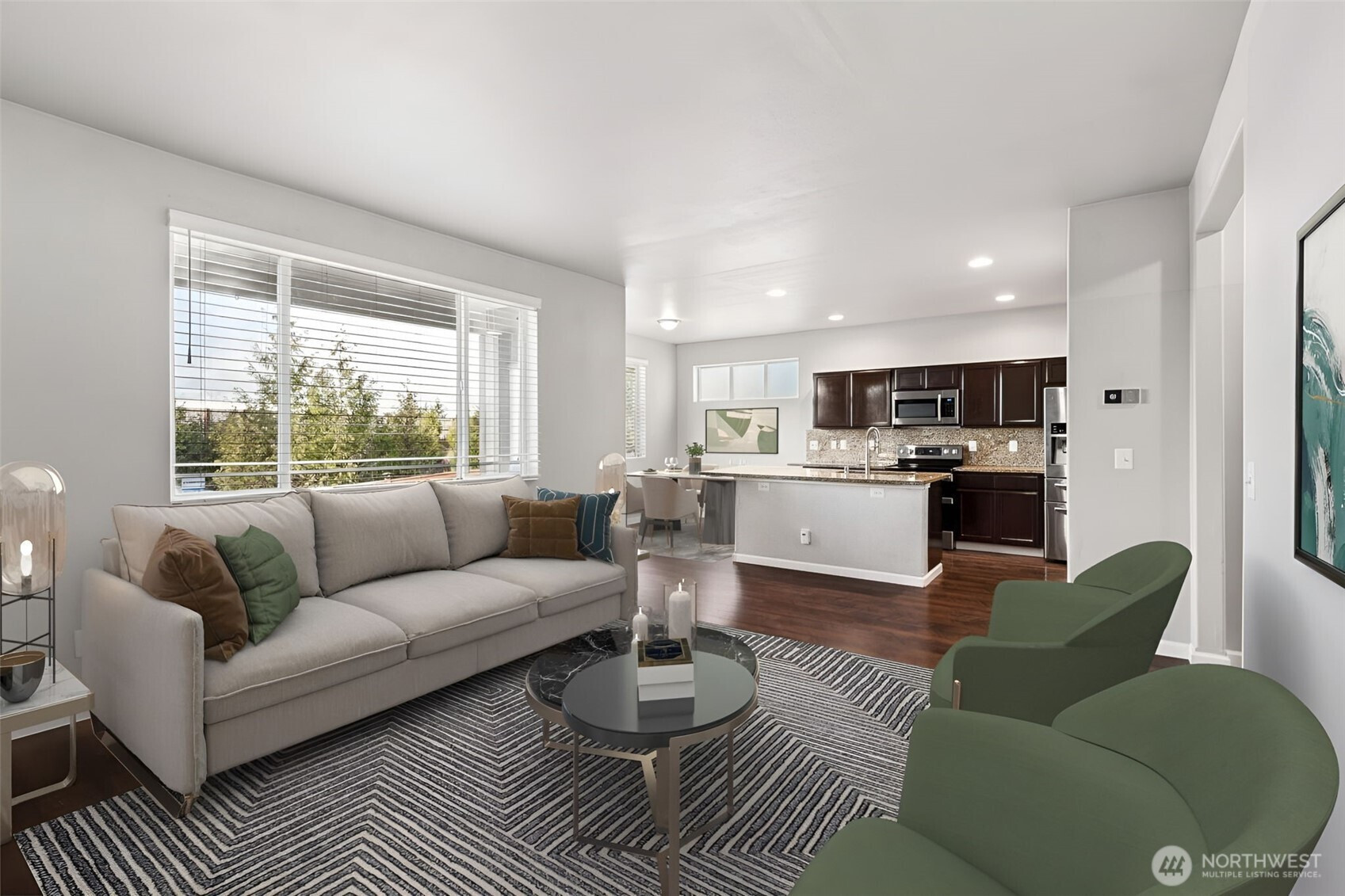 Beautifully updated home in a prime location, offering a thoughtfully designed & functional layout. Main level features updated flooring & kitchen with extended countertops, ideal for both everyday living & entertaining. Enjoy a formal dining room, butler’s pantry, cozy living room, office/den & breakfast nook. Upstairs, primary suite includes a 5-piece bath with soaking tub & a walk-in closet. Two guest bedrooms, a full bathroom, a laundry room, & a versatile bonus room complete the upper level. Additional highlights include central A/C, an oversized two-car garage, & a fully fenced backyard with an extended patio backing to peaceful green-space for added privacy. Located near parks, trails, & playgrounds, with easy access to I-5 & JBLM.