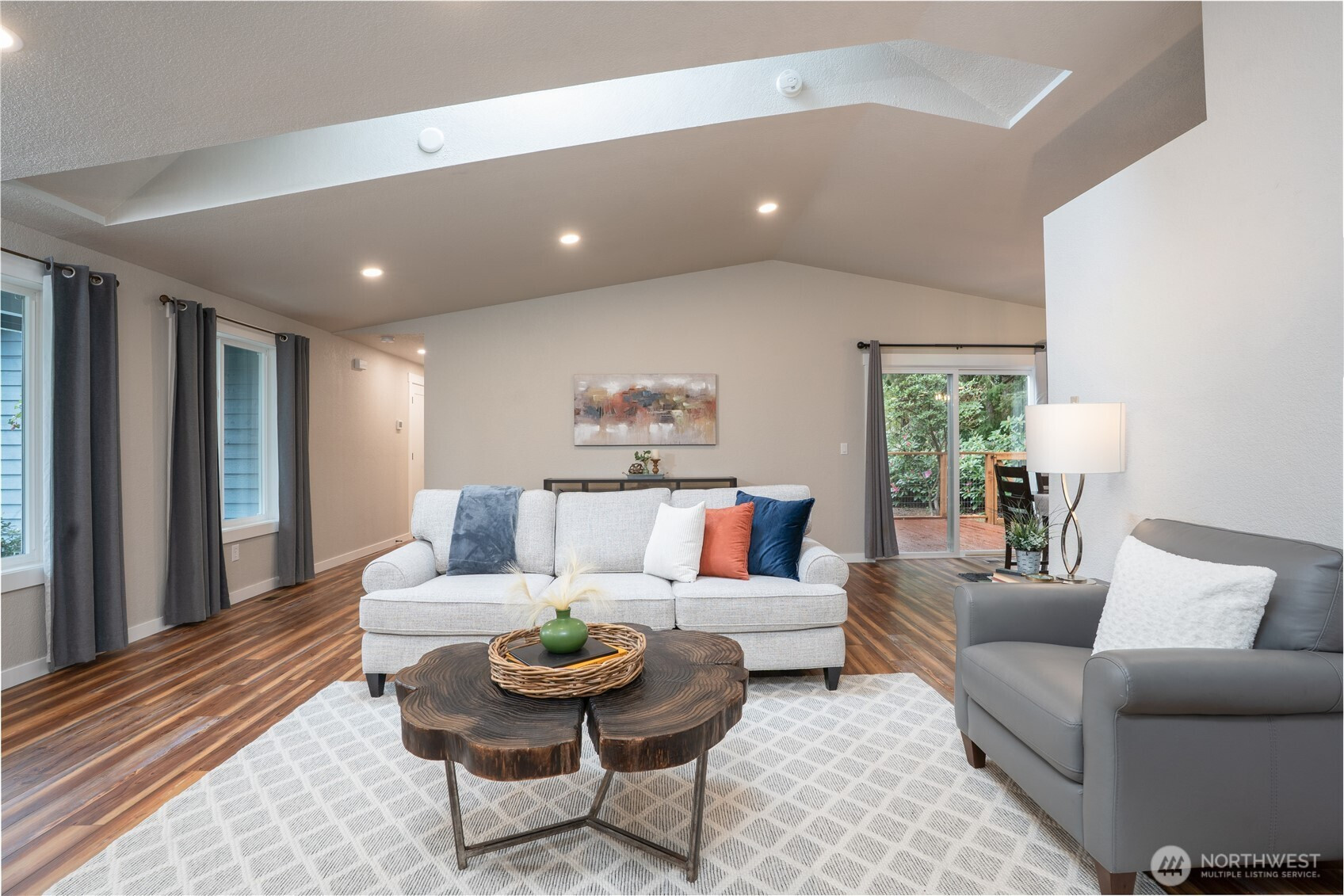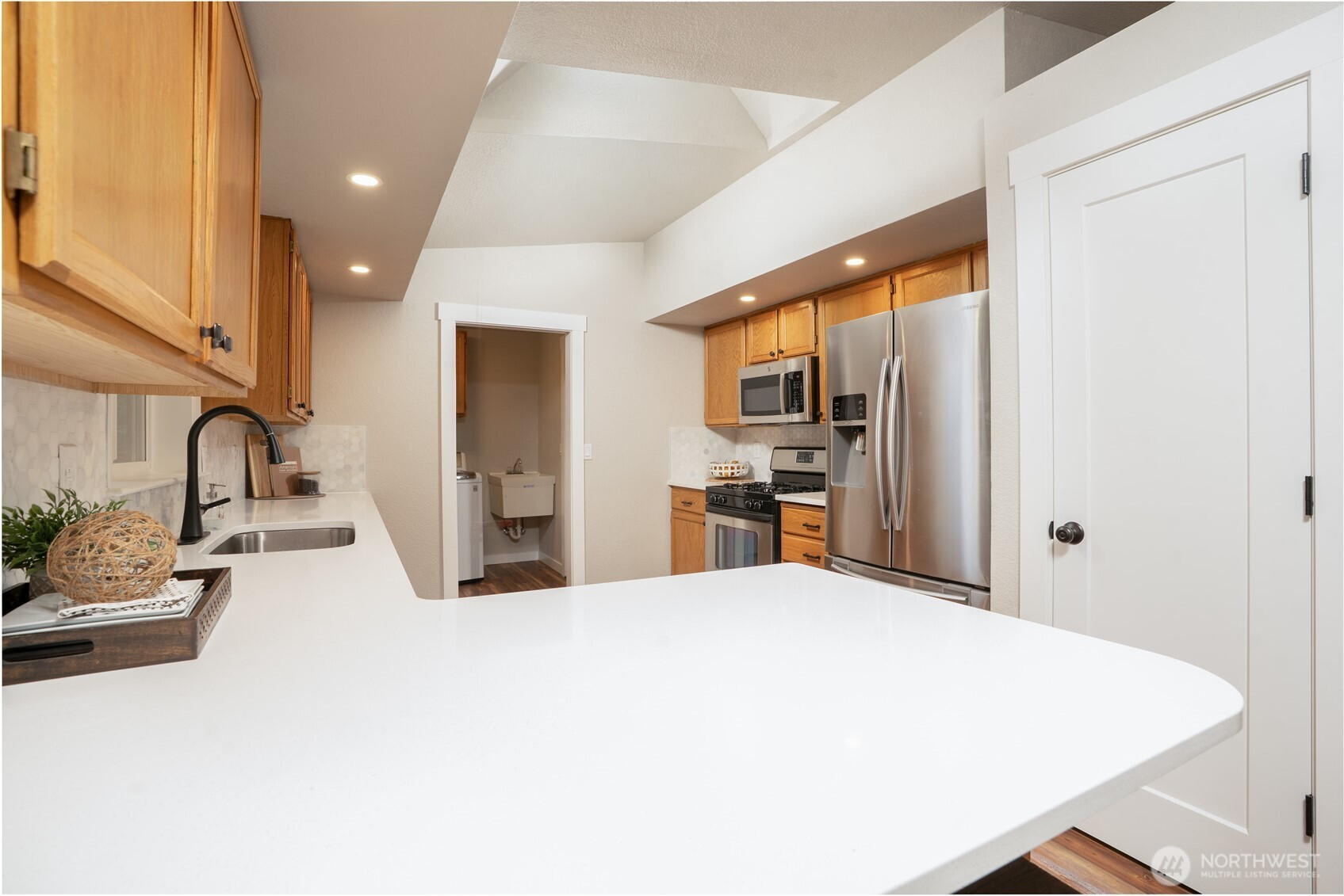 You will fall in love with this beautifully refreshed RAMBLER which offers a perfect blend of comfort and style! Situated on a spacious ¼ acre lot, featuring a fenced backyard and a welcoming deck - ideal for outdoor entertaining or relaxing. Recent updates include a new furnace, newer roof, newer water heater, plus exterior and interior paint. The kitchen has been thoughtfully updated with new countertops, sink & faucet, custom tile backsplash, stainless steel appliances plus a slider that leads you to the private back deck and backyard. The primary en suite offers an adjoining modernized ¾ bath with new vanity, quartz top, shower enclosure and lighting fixtures, in addition you will find 2 ample sized bedrooms, and a full/ main bathroom which has been nicely updated with a new double vanity with quartz top; lav sinks & faucets plus new lighting. Luxury Vinyl Plank (LVP) flooring flows throughout the home for easy maintenance and a contemporary feel. Attached two car garage with lots of space for storage. Enjoy the convenience of an easy commute to JBLM while living in one of Lacey’s most sought-after neighborhoods. Don’t miss this move-in ready gem!