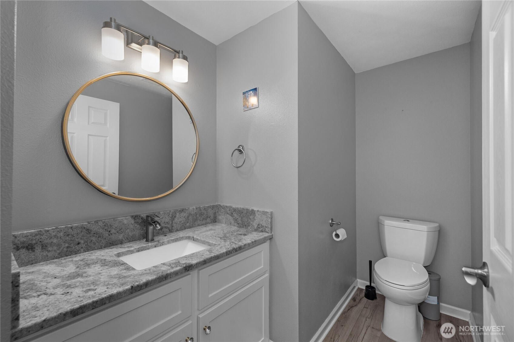 Well maintained 3-bedroom, 2.5-bath home offering 1,764 sq ft of comfortable and functional living space. High ceilings create an open, airy feel throughout the main level, which includes a formal living room and an updated kitchen with an adjoining dining area—ideal for both everyday living and entertaining. The lower level features an updated half bath, laundry room, and a perfectly sized family room with a gas fireplace. Outside the family room is the amazing cedar-covered patio w/ ceiling fan—perfect for relaxing or barbecuing in any weather. Enjoy exceptional peace & privacy with a greenbelt behind the home and additional open space to one side. Recent upgrades include newer windows, air conditioning, furnace, water heater, and roof, providing peace of mind for years to come. All bathrooms were also remodeled in 2021. Located in a well-situated neighborhood close to shopping, dining, and everyday amenities, this home offers an ideal balance of comfort, privacy, and convenience. Oly schools!