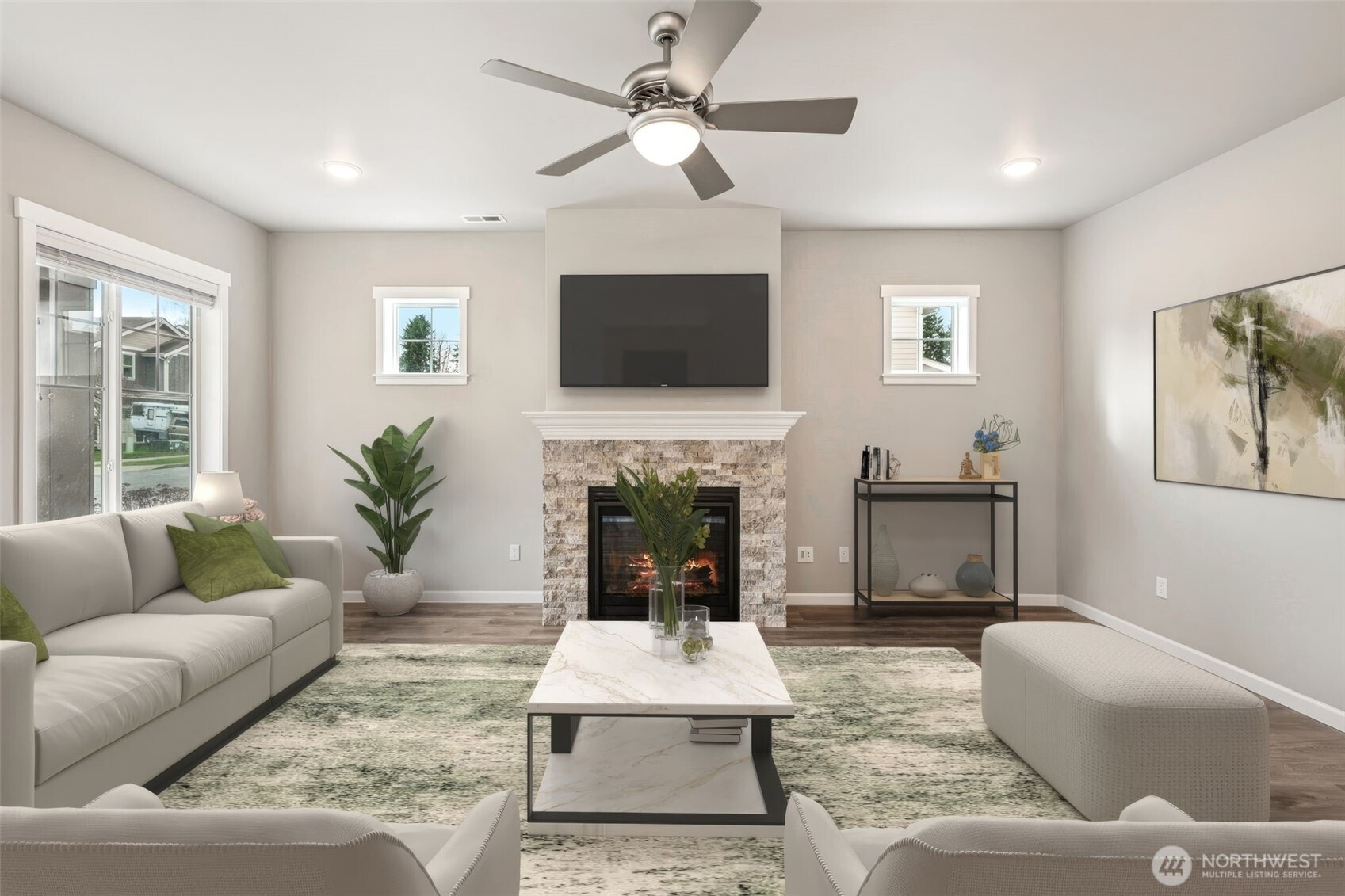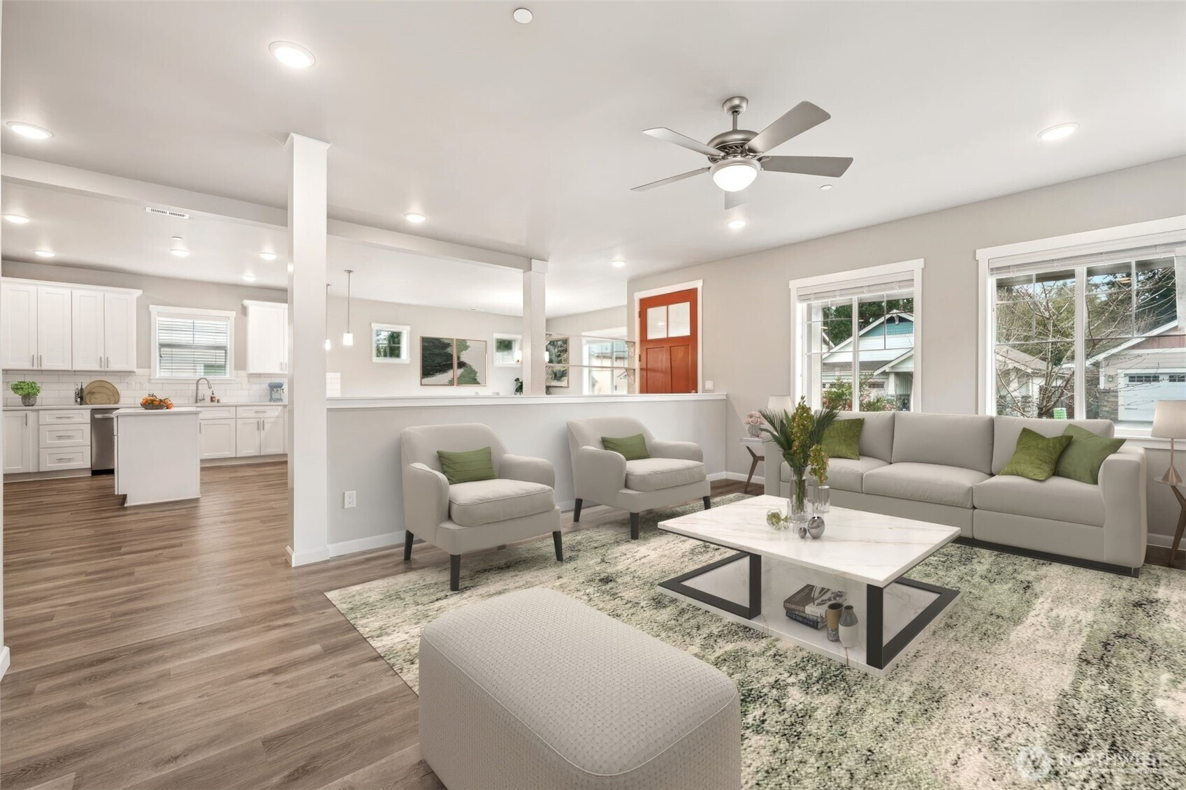 Welcome to 3642 22nd Ave NE in Olympia, WA — a perfectly located, like-new home in The master planned, Village at Mill Pond. This home offers modern design & flexible living space, with a main floor bedroom & bath, providing ideal separation for multi- generational living or guests. Built with comfort & functionality in mind, the “Laurel” model features 4 bedrooms total plus the spacious upstairs bonus/flex room is perfect for a home office, playroom, or media room. The semi-open-concept floor plan down creates easy flow between the entry, living room, dining area, & eat-in kitchen. The large chef’s kitchen is designed for both everyday living & entertaining, showcasing a generous prep island, quartz countertops, brushed nickel hardware, & abundant cabinetry. Upstairs, the primary suite offers a private retreat with a walk-in closet & a luxurious 5-piece bath. Two additional bedrooms, a full guest bath, & a conveniently located upstairs laundry room complete the second floor. Additional features include central A/C, two-car garage w/alley access, & a fully fenced backyard w/storage shed, on a corner lot. The Village at Mill Pond offers beautiful walkable sidewalks w/ access to community parks & green spaces & direct proximity to the Chehalis Western Trail for miles of walking & biking. Convenient access to I-5 & JBLM. If you’re searching for a move-in ready home in Olympia with a main-floor bedroom, bonus room, fenced yard, & modern upgrades — this one checks all the boxes.