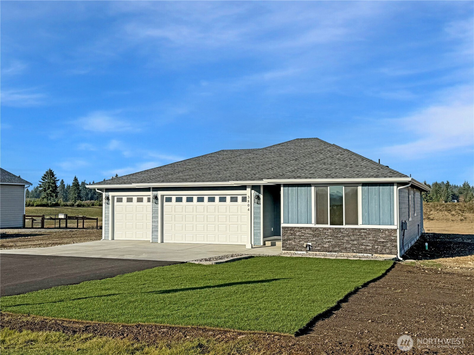 Move in Ready, Fabulous Brand New Tenino Rambler situated on nearly 5 acres surrounded by beautiful pastureland, horses, peace & tranquility plus Mt. Rainier & territorial views. Open concept floor plan, vaulted ceilings, durable LVP flooring & a sleek linear fireplace. Impressive designer Chef’s kitchen w/quartz countertops, stainless appliances, a spacious island, ample cabinetry & walk-in pantry. The light & bright dining area opens to a covered outdoor living space. French doors lead to a luxurious primary suite w/5-piece bath, oversized tile shower, soaking tub & walk-in closet. 3-car fully insulated garage, energy-efficient heat pump w/A/C & high-end finishes throughout—perfect for entertaining, working from home or simply relaxing.
