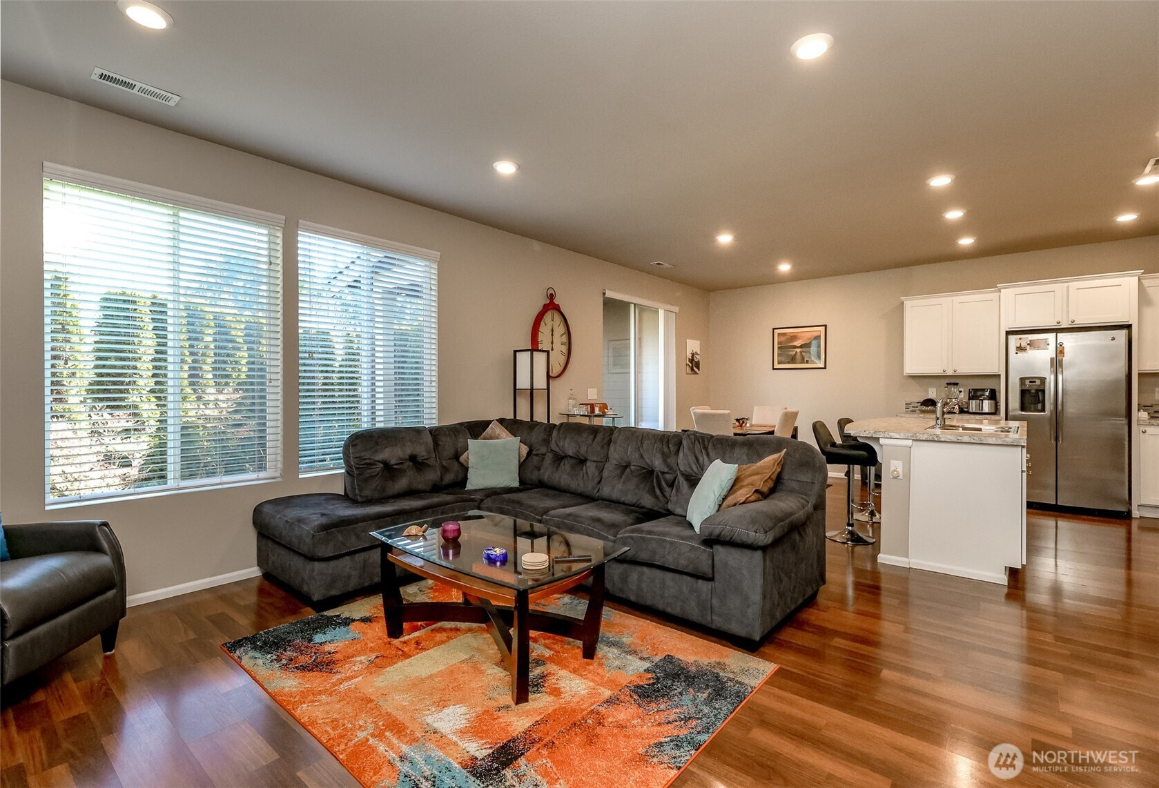 Move-in ready and perfectly positioned, this end-unit townhome-style condo offers comfort, convenience, and modern living in the Meridian Campus Community. With a 2-car garage and a private outdoor space, this home lives larger than expected and checks all the boxes. Inside, you’ll find a bright, open layout with fresh interior paint and a thoughtfully designed kitchen featuring an oversized island and quality cabinetry—ideal for everyday living or hosting guests. The spacious primary suite includes a walk-in closet and an ensuite bath designed for relaxation, complete with dual vanities and a soaking tub. Enjoy the ease of low-maintenance living with HOA-covered yard care and snow removal. Located near parks, trails, golf courses, and playgrounds, plus quick access to I-5, fast growth off exit 111, JBLM, and shopping, this home puts everything you need right at your fingertips. This one is a must-see and won’t last long!