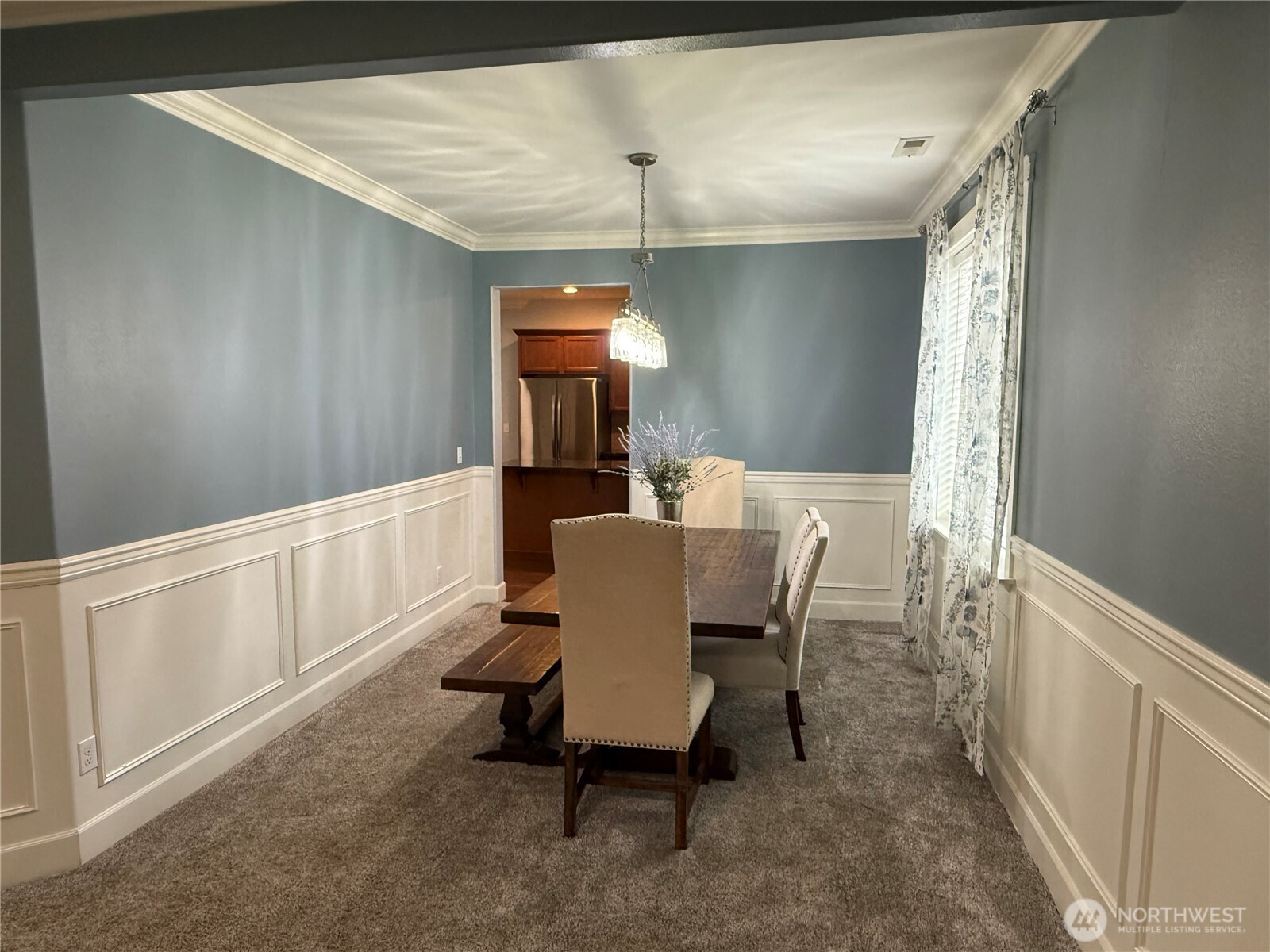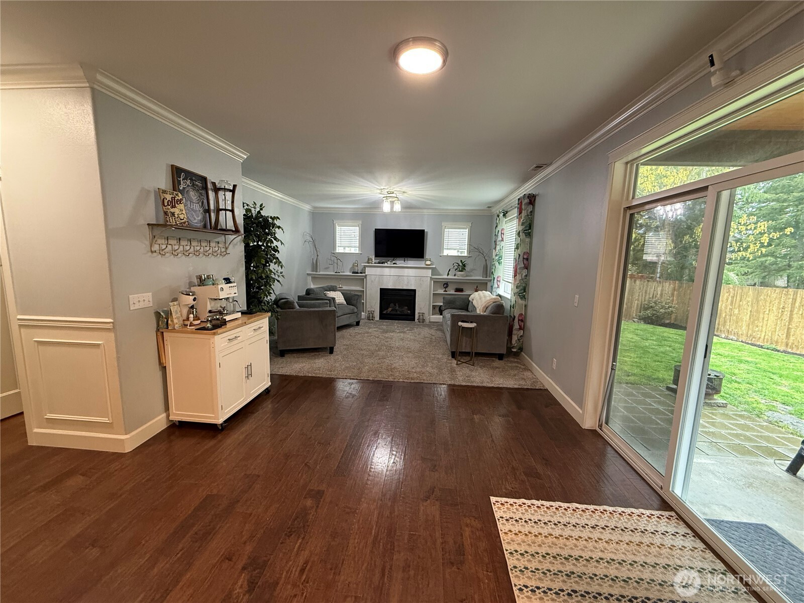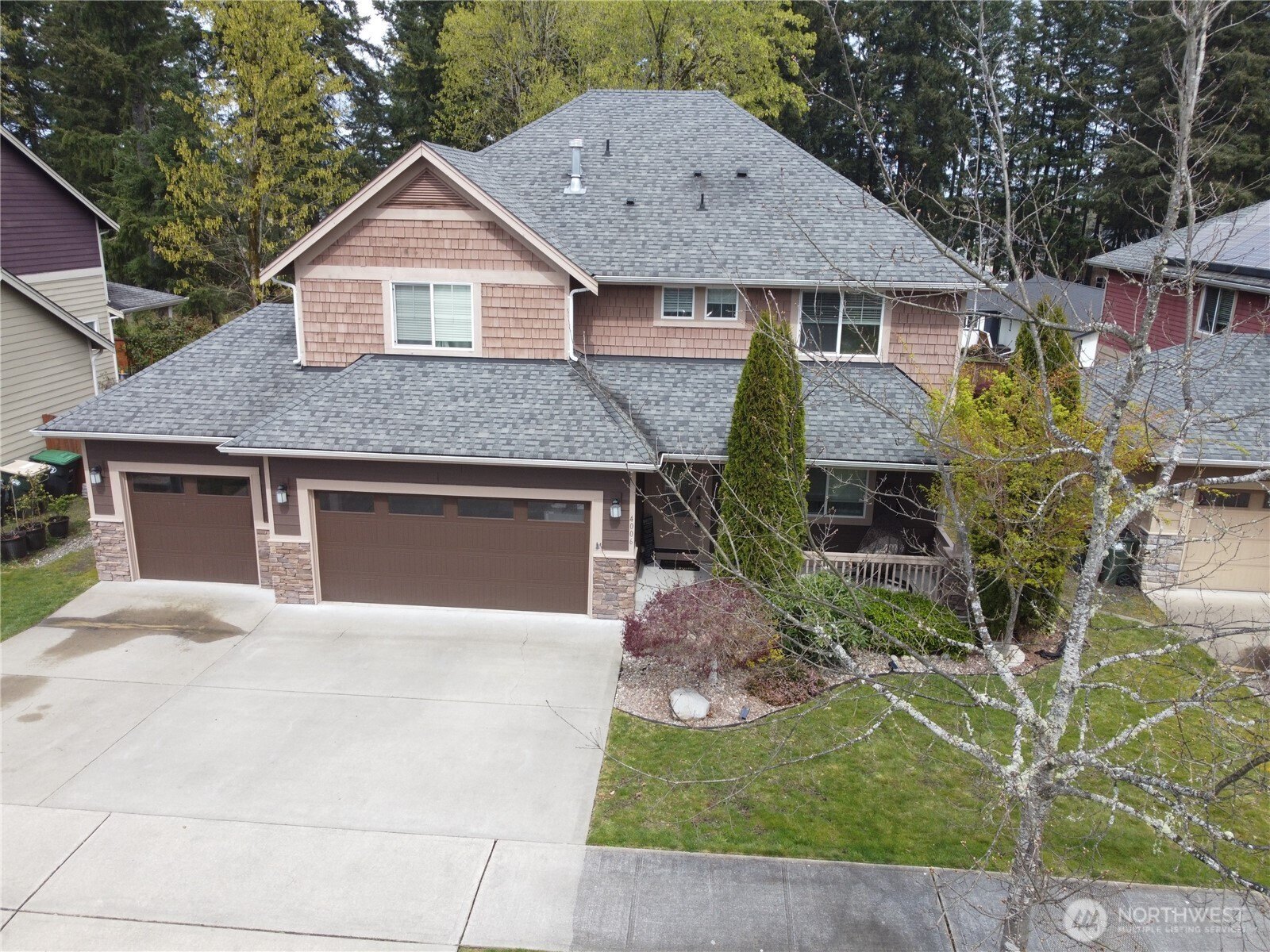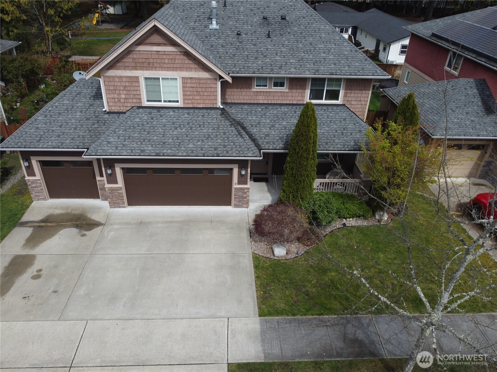 Welcome to this beautiful residence in the sought after Trailside Estates community! Thoughtfully curated with timeless finishes and generous living spaces, this home offers a refined lifestyle in a prime location.From the moment you arrive, you’re greeted by an inviting covered front entrance. Inside, extensive crown molding and detailed wainscoting flow throughout. The main level is designed for both formal entertaining and effortless daily living, featuring a formal living room, an elegant dining area, and a dedicated office/den that is perfect for remote work or quiet study, along with a convenient half bath.At the heart of the home, the chef-inspired kitchen serves as a true centerpiece, showcasing granite countertops, stainless steel appliances, and walk-in pantry, seamlessly connecting to the main living areas for an open yet refined feel.Upstairs, a huge bonus living area offers incredible flexibility for a media room, playroom, or additional lounge space. The luxurious primary suite is complete with its own cozy fireplace, big walk-in closet, and well-appointed en-suite bath designed for comfort and relaxation. Step outside to the covered back patio ideal for year round entertaining. Oversized 3 car garage provides ample space for vehicles & storage. Additional highlights include an energy-efficient heat pump for year-round climate control and easy access to I-5 for a easy commute. Enjoy close proximity to schools, shopping, entertainment, and scenic local trails.