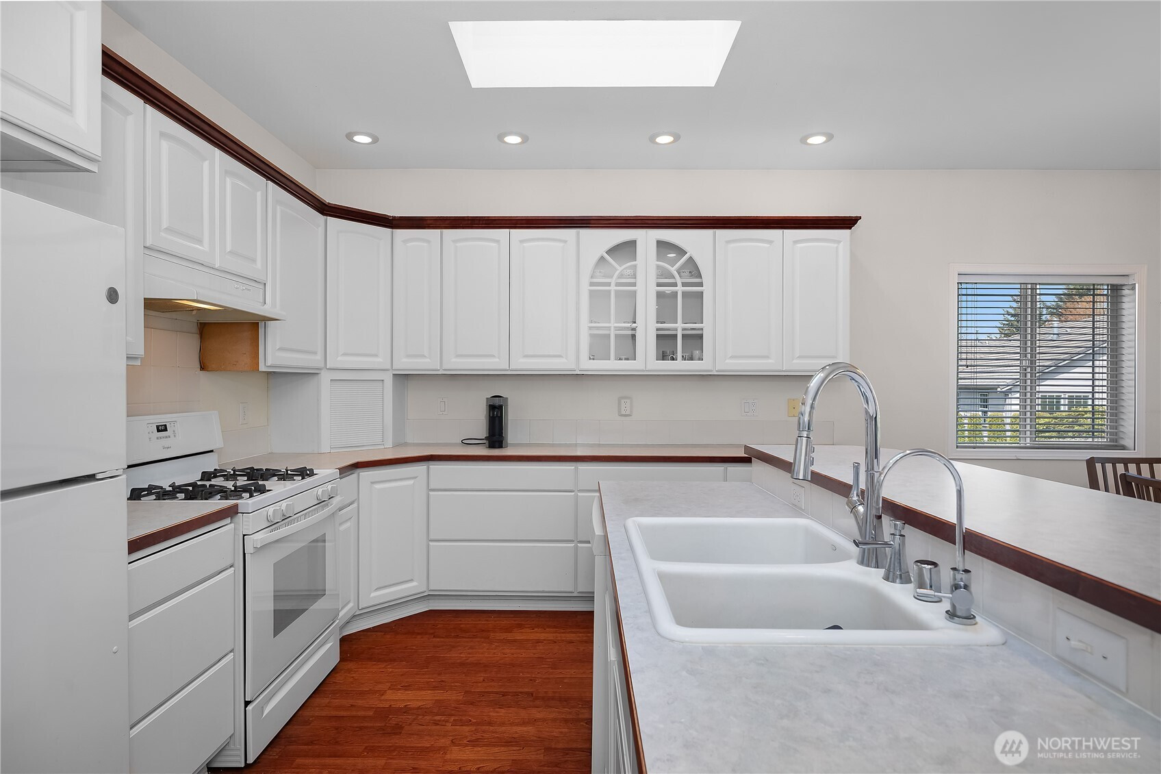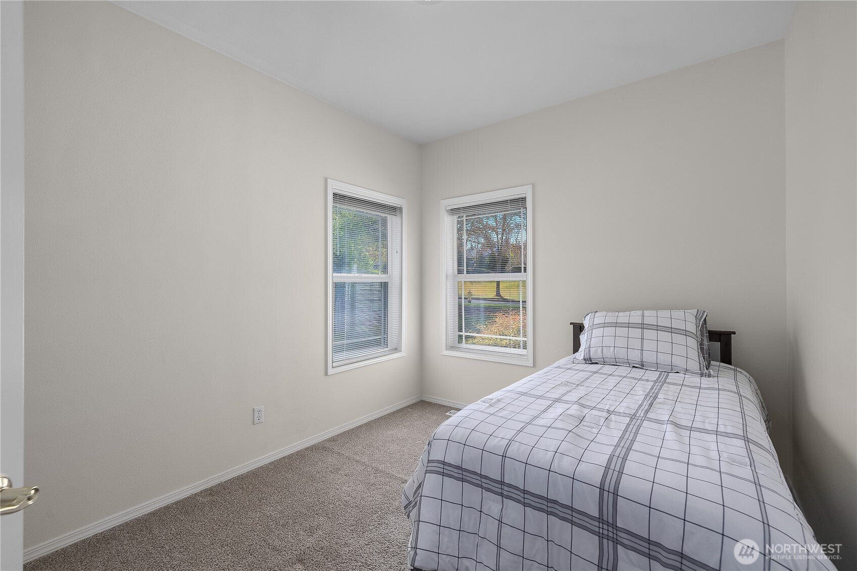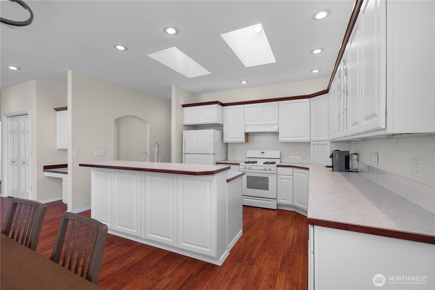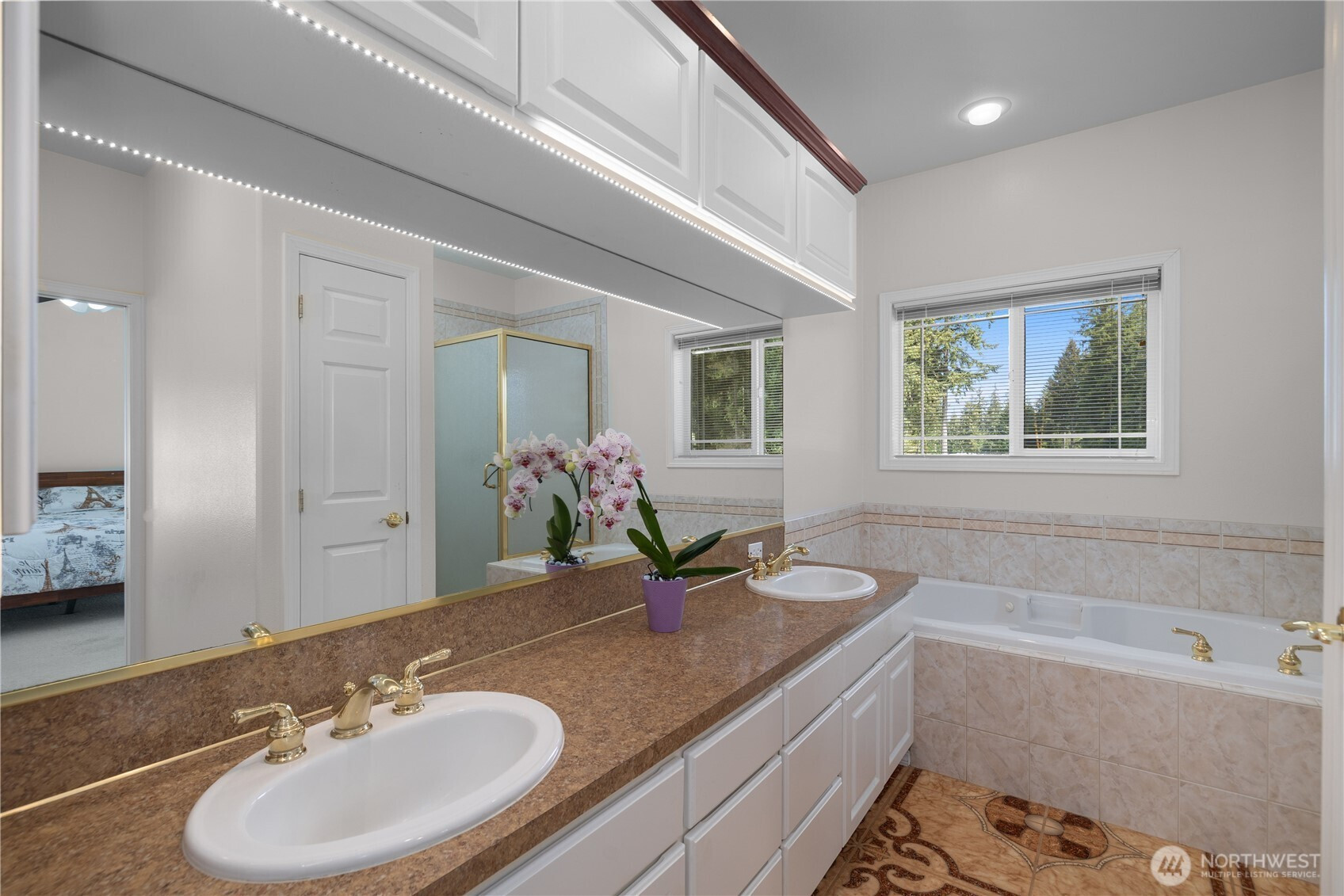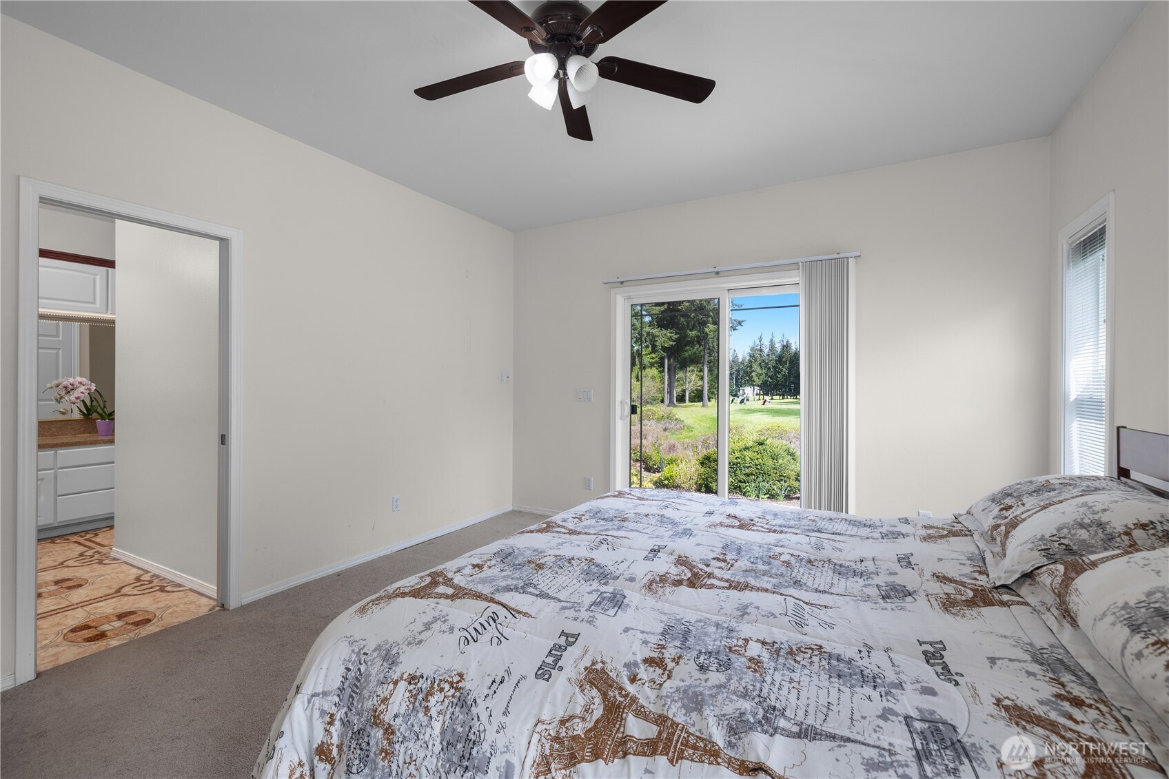 Wonderful views on the 9th tee of the Woodlands Golf course in Hawks Prairie Campus Green. Great open floor plan with windows over looking the golf course in the living areas & primary bedroom & a large concrete back patio. Home has a formal living and dining room & a family room with gas insert fireplaces, 3 bedrooms 2 bath plus an office w/built-ins. Freshly painted exterior, 5 zone sprinkler system & newer sod. Great fenced enclosure with built in dog door off the 3 car garage. A/C & all appliances included.