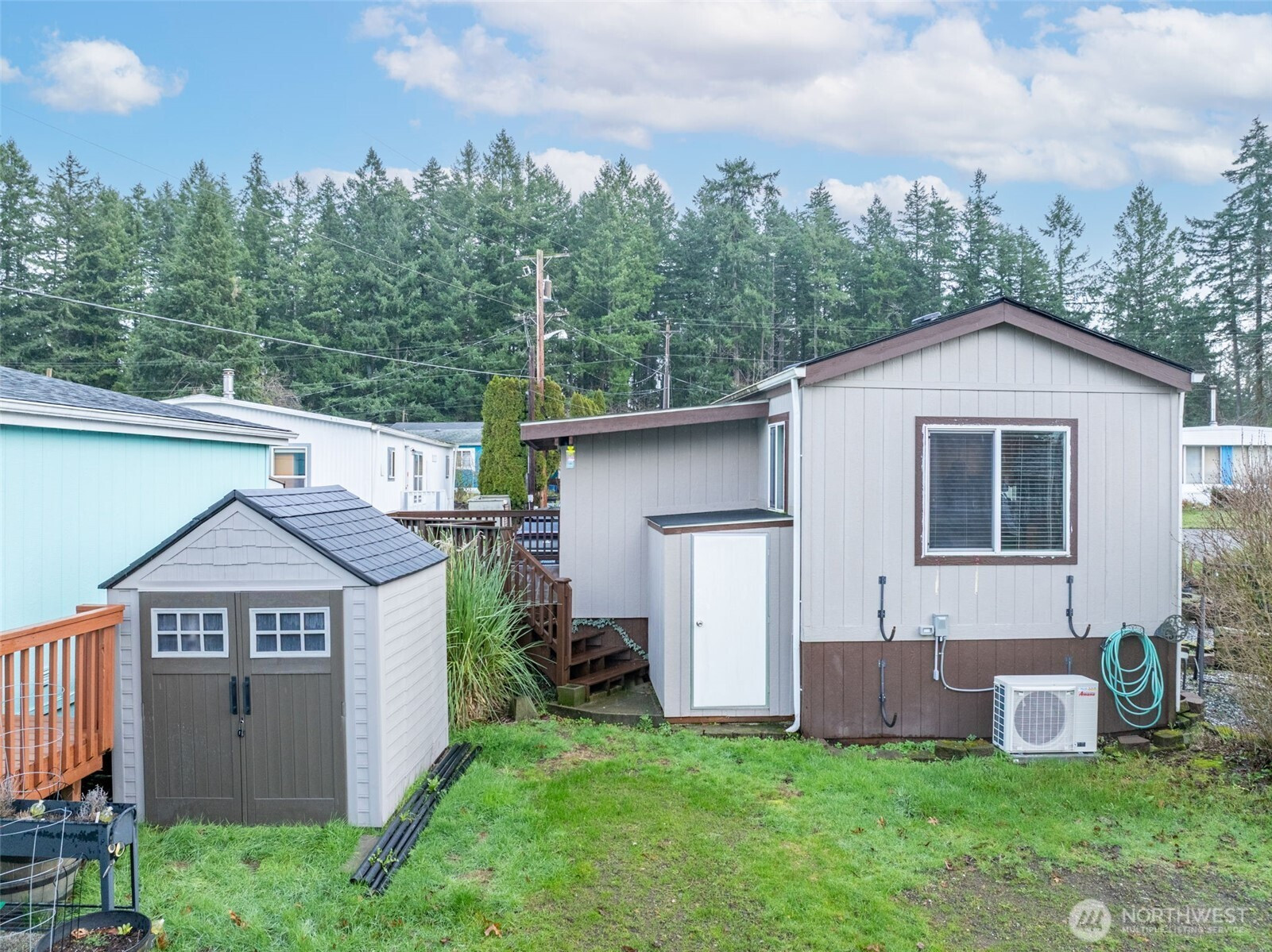 Welcome to the LAKE LIFE! Enjoy coming home each day to this cozy, well-maintained 2bed/1bath home in Lakeside Private Residences, an all-ages park. Then take a short stroll to the relaxing waters of BLACK LAKE. Enjoy unlimited use for you & your guests of the BBQ area, firepit, 3 docks, boat launch & more. Kitchen has tons of counter space, a large island, & stainless appliances. Major upgrades done in 2024 include a NEW ROOF, HEAT PUMP (ducted), EV charger, NEW W/D & REFRIGERATOR. All appliances stay. Enjoy BBQ's on the covered deck, rain or shine. 2 large storage sheds for your "stuff", lots of parking & a large corner lot offers a spacious feel. Park approval/background check is needed for new tenants. Space rent is $850