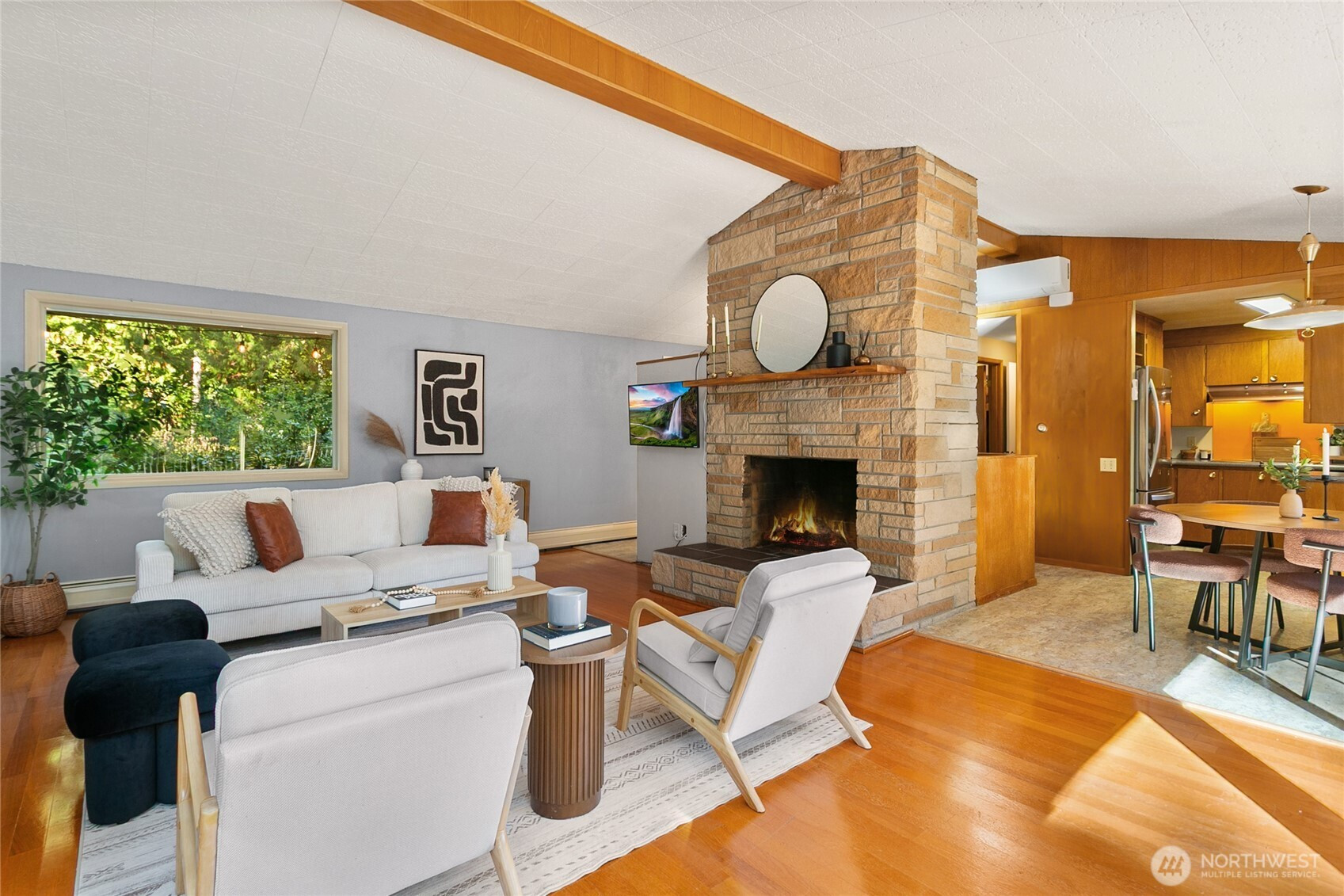 Experience Cooper Point living at its finest. This timeless mid-century modern home offers stunning Puget Sound and Mt. Rainier views, surrounded by 2.5 acres of private Northwest beauty. Enjoy peaceful walking trails, mature evergreens, and spacious patios perfect for entertaining or quiet mornings. Inside, sunlight fills the open living spaces with large windows, fireplaces, and mid-century character throughout. Ownership shows with a new roof, gutters w/ leaf guards, full septic system, fresh paint, new AC system, and new carpet. The property includes a 2-car garage + carport, RV parking, and room to garden or play. Minutes from shopping, dining, and the waterfront. Your own private retreat, move-in ready and waiting to welcome you home.