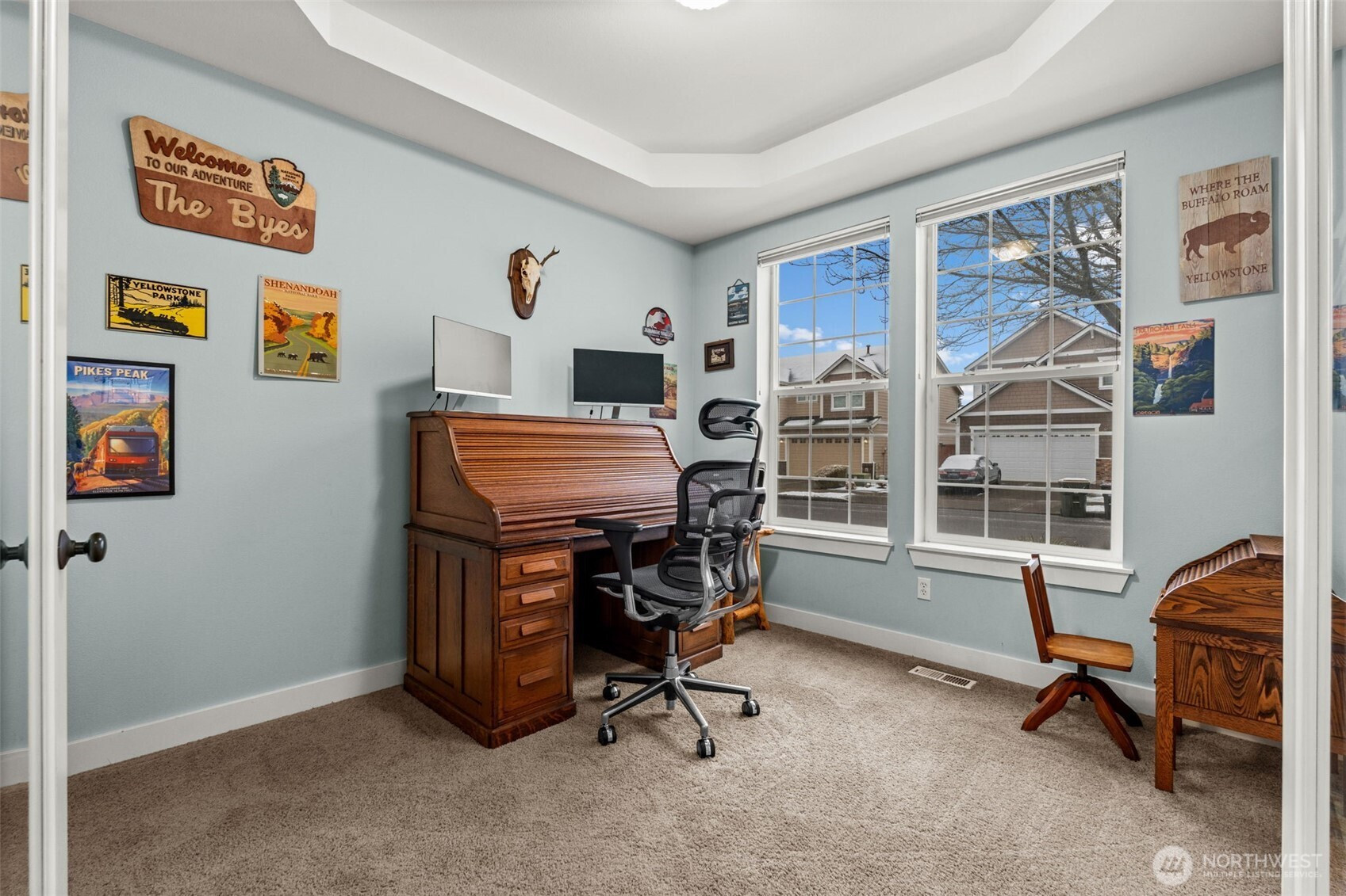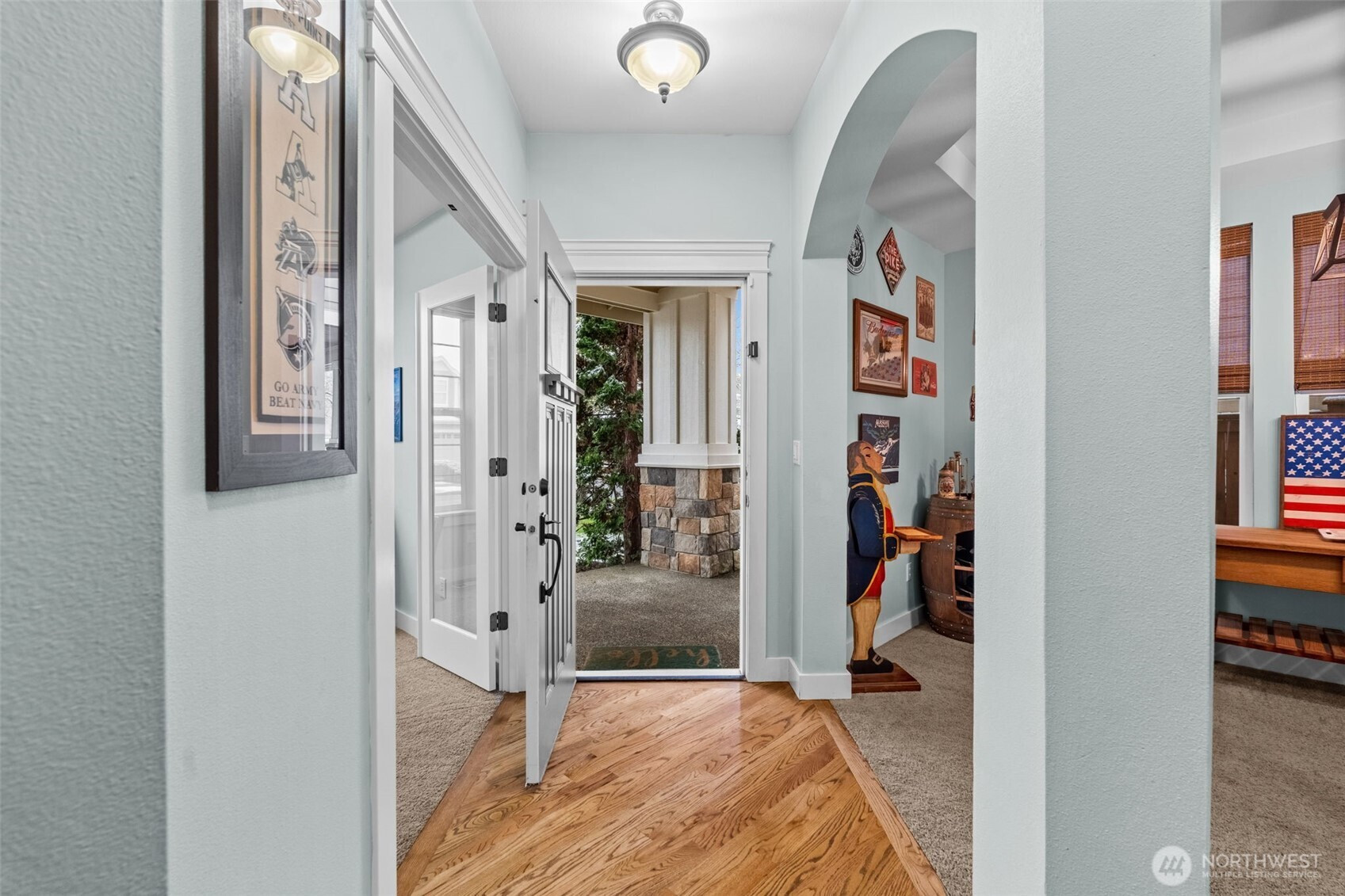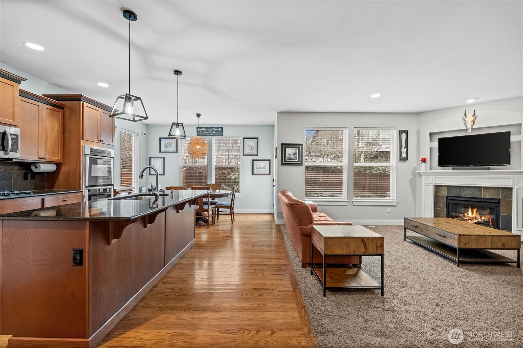 Welcome to the sought-after Edgewater community! This spacious 2,940 sq ft home offers the perfect blend of comfort, functionality, and location just moments from Edgewater Park and adjacent to Hawks Prairie Golf Course. As you enter the home you're immediately greeted with well-kept and timeless hardwood floors that extend all the way to the kitchen. Step inside to an open-concept layout featuring a formal dining room and an eat-in kitchen equipped with granite countertops, stainless steel appliances, and a double oven that's ideal for everyday living and entertaining. The massive primary suite is equipped with everything you could want! It's complete with its own fireplace, a luxurious 5-piece bathroom, and a large walk-in closet. Stay comfortable year-round with A/C, and enjoy the nice-sized backyard with a patio that is perfect for relaxing or hosting gatherings. The rare 3-car tandem garage extends all the way through to the back of the home, offering exceptional storage and versatility with a garage door to the back yard. Conveniently located near I-5 for an easy commute to JBLM, with close proximity to schools, parks, and amenities. Bonus: the home includes two Tesla chargers, and the HOA covers front yard landscaping for low-maintenance living.