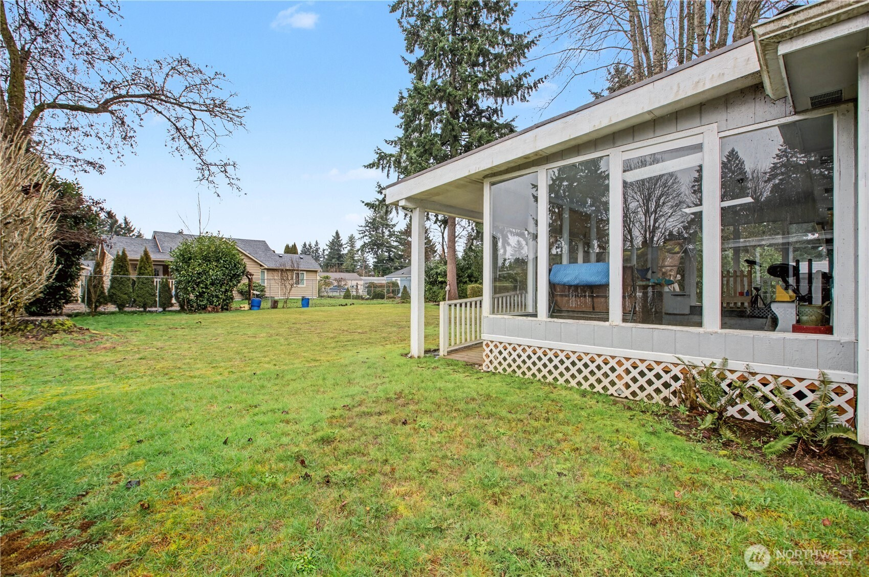 Charming one story 3 bed room home boasts mid century feel with modern amenities. Home features: original hardwood floors through out, newer roof (they believe 2-5 years old), central gas forced air furnace with AC, wood burning fireplace, sun room, patios, and all appliances stay with the sale! Site features: large fully fenced backyard with drive in access, driveway and street parking, garden space, likely ADU potential. Location is perfect. Close to shopping, restaurants, parks, schools, I-5, only 15 minutes to JBLM.
