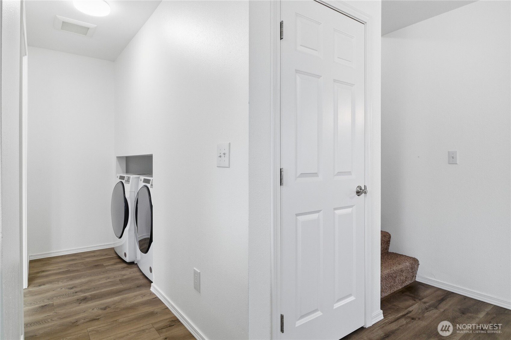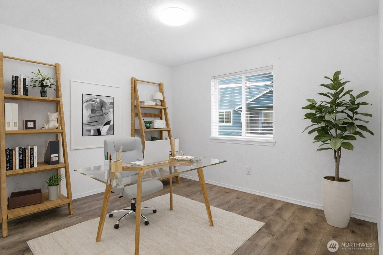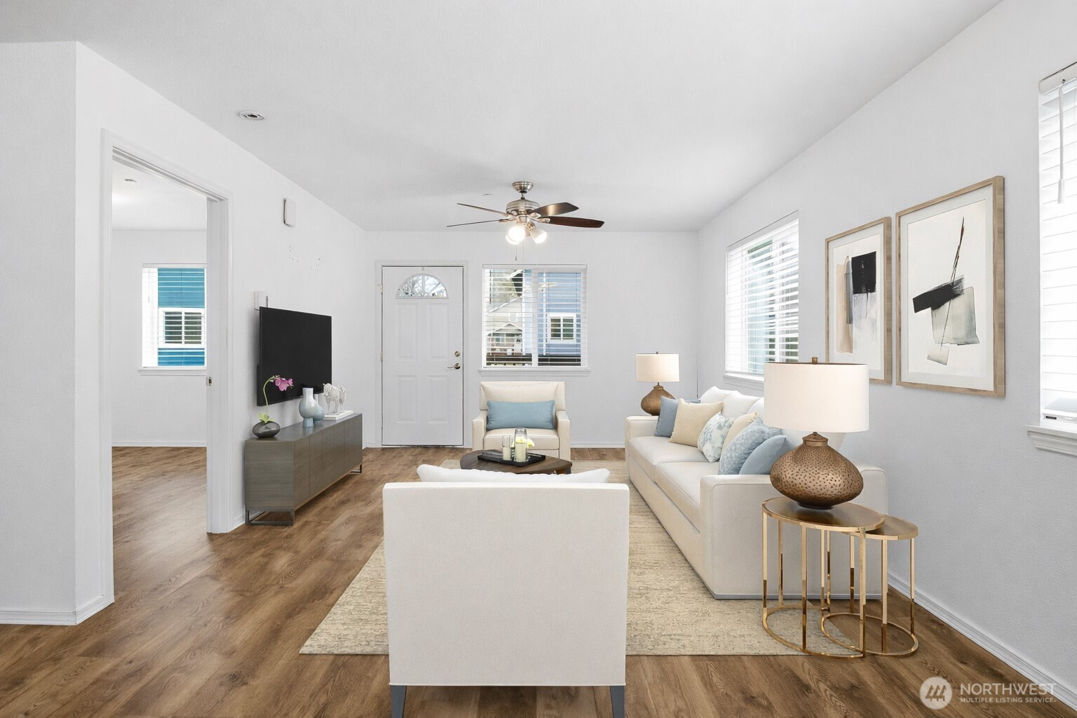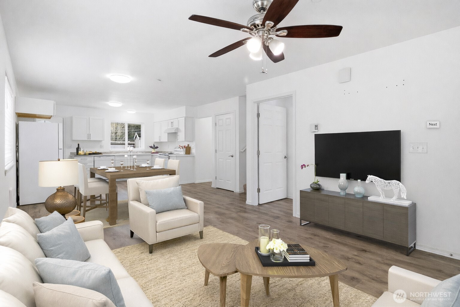 Think you can’t find an adorable AND affordable home in Lacey anymore? This three-bedroom home built in 2014 proves otherwise. Tucked into a charming cottage-style community, this 1600sqft home offers a central location with easy access to freeways, shopping, dining, healthcare, JBLM and the Chehalis Western Trail is only a block away. Inside, you’ll find a bright open-concept layout with durable and attractive laminate flooring, a functional updated kitchen with nearly-new appliances. Complimented by a sizable main-floor bedroom (or office), full bath, and dedicated laundry with like-new washer and dryer included. Upstairs features two oversized bedrooms with vaulted ceilings, ceiling fans and walk-in-closets, offering generous storage space. Enjoy friendly outdoor living with a charming covered front deck, storage shed, room to garden, community playground and a convenient back entrance. Low HOA dues and North Thurston Schools make this an incredible value for the price—don’t miss it!