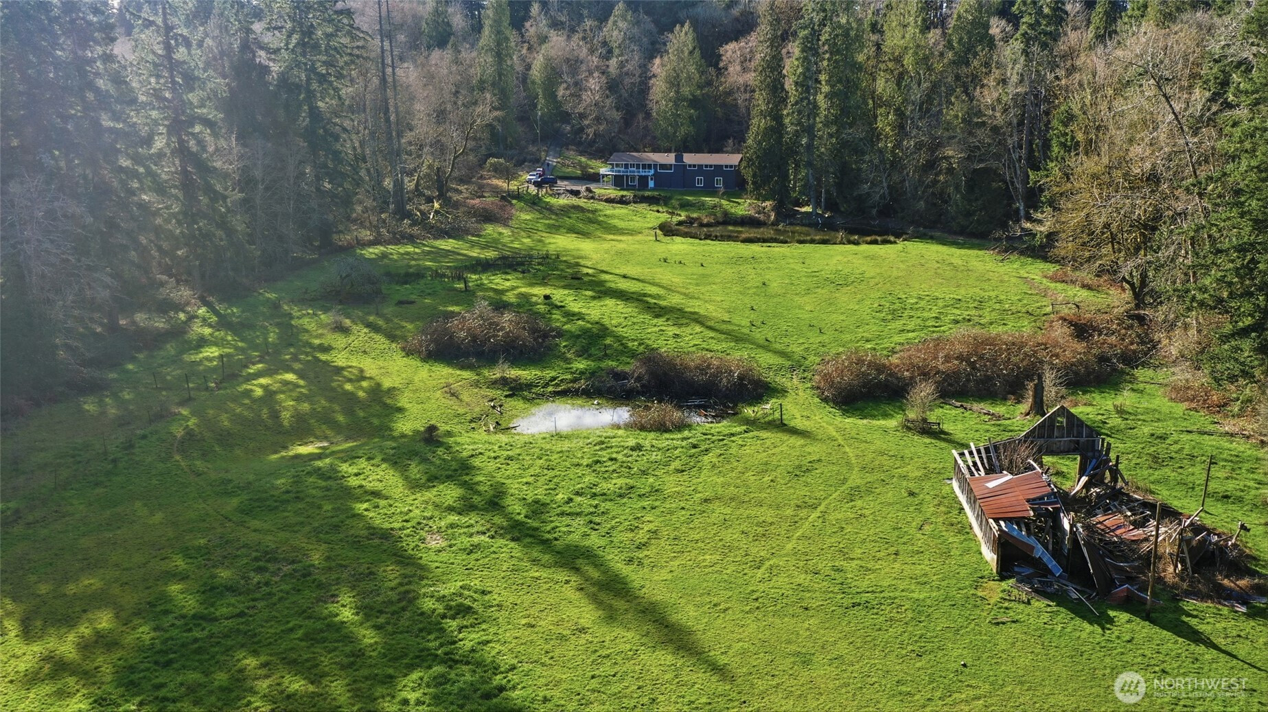 Secluded & serene, this beautifully updated 2060 sq ft (with approx. 1800 sq ft unfinished basement area), 3 bedroom, 2.5 bath home sits on an expansive 19.84 acres consisting of 2 separate parcels. This amazing piece of land has approx. 618 ft of waterfront on Henderson Inlet, multiple small creeks, a spring fed well and a freshwater pond that's home to your own family of ducks! Features in the home include a formal living room, family room, kitchen w/eating nook & a full unfinished basement. Recent updates include extensive hardwood floors throughout much of the home, new interior & exterior paint & updated bathrooms. This is a rare opportunity for those seeking privacy, space and a connection to nature while being minutes from schools, shopping, golf courses and the I-5 for easy commuting north or southbound.