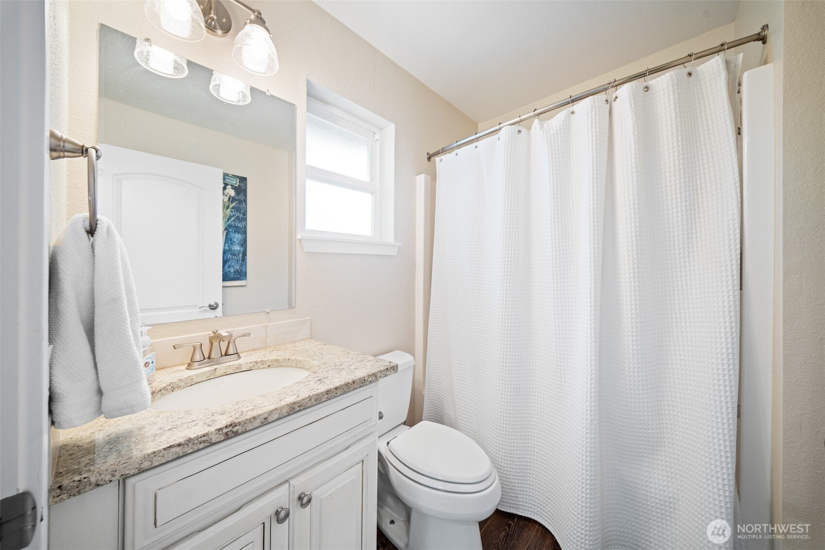 Tucked within the sought-after Beckonridge community, this thoughtfully designed 3-bedroom, 2.5-bathroom residence blends timeless style with effortless Northwest living. Bathed in natural light, the home offers an open and welcoming layout that feels both refined and comfortably spacious. Dark laminate flooring extends throughout the main level, complemented by crown molding and solid core doors that enhance craftsmanship while providing added privacy and quiet. A natural gas fireplace, installed in 2023, creates a warm focal point in the living area, while the seamless connection between kitchen, dining, and living spaces lends itself beautifully to both everyday living and entertaining. Upstairs, plush carpeting adds comfort underfoot, and the functional floor plan features a conveniently located laundry room along with two full bathrooms, while a powder room serves the main level. The backyard offers mature landscaping, raised garden beds, and a newly installed fence in 2024, creating a private outdoor retreat with minimal upkeep. HOA-maintained front landscaping and snow removal further support an easy-care lifestyle. Set back from main roads, Beckonridge offers a peaceful neighborhood atmosphere just moments from parks, golf courses, shopping, dining, fitness studios, and the Chehalis Western Trail.
