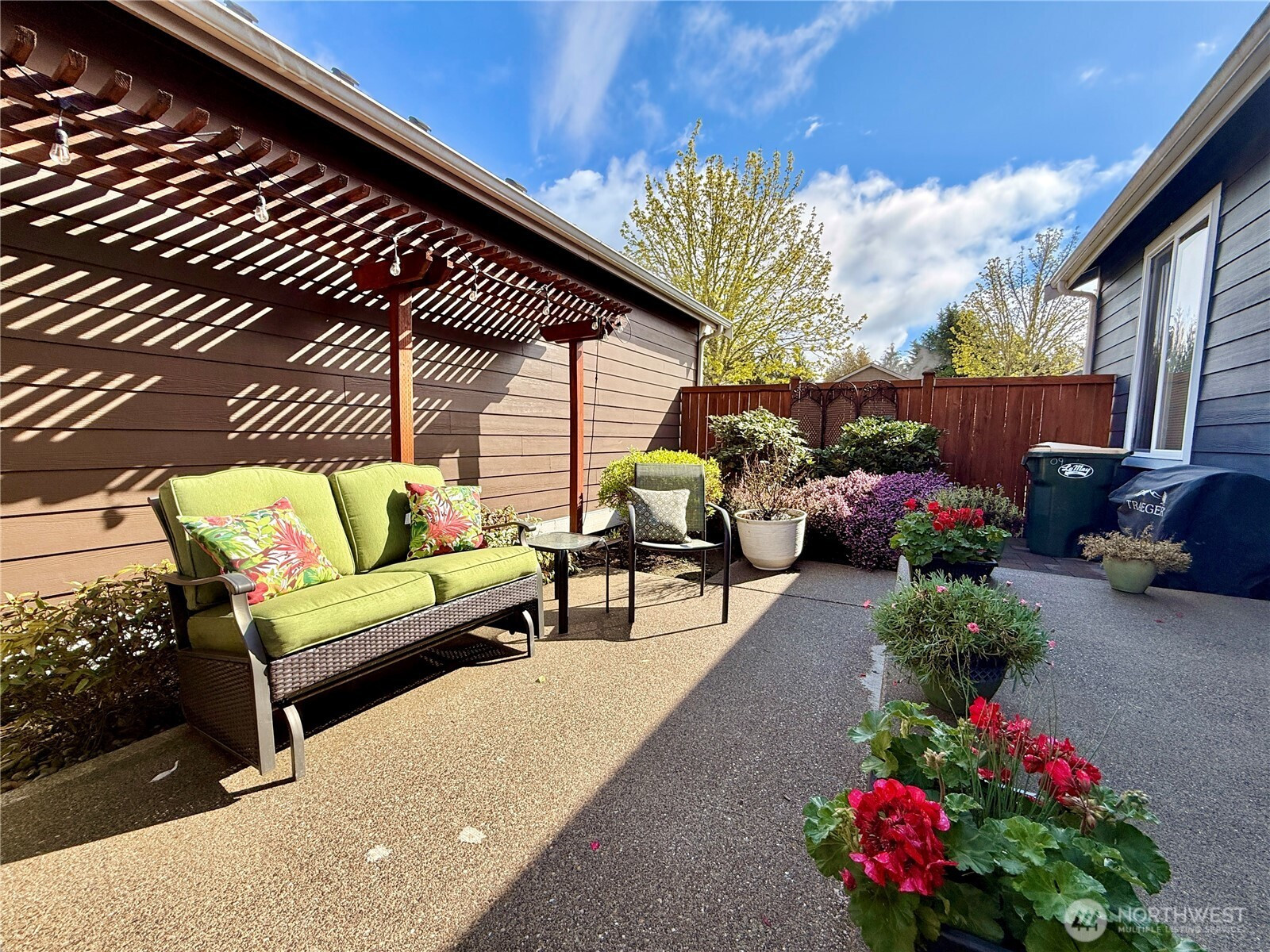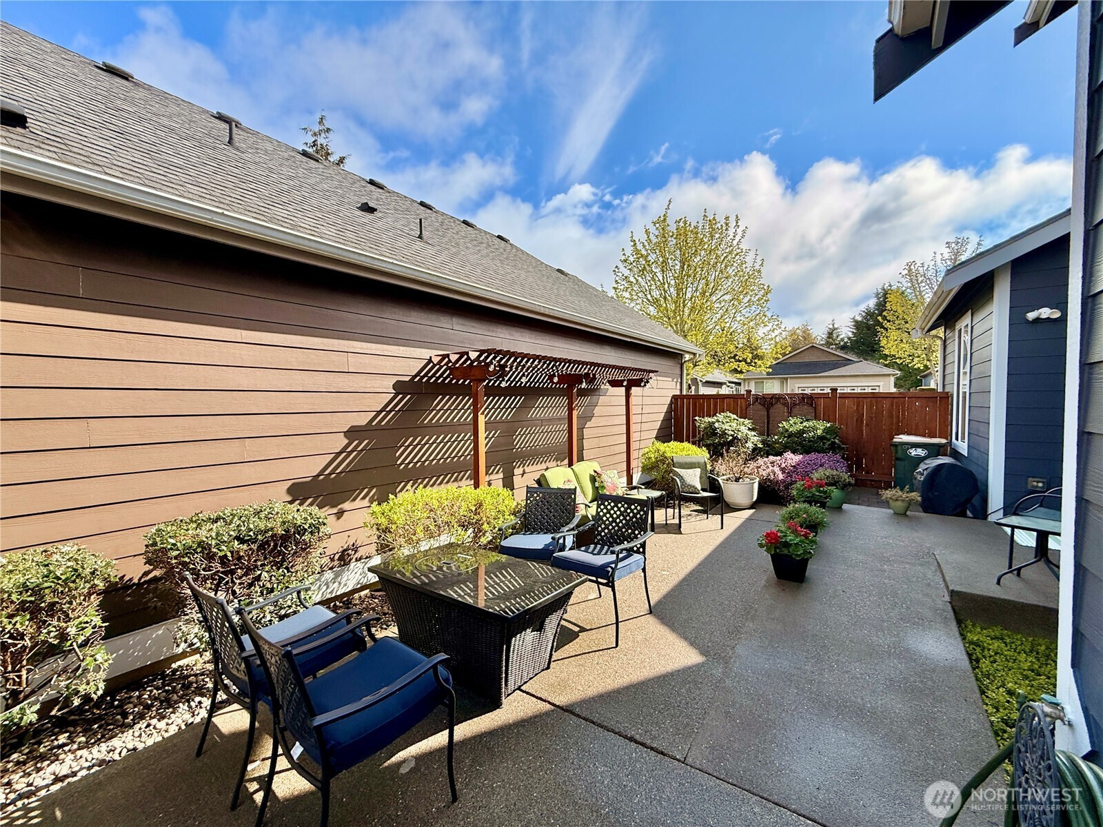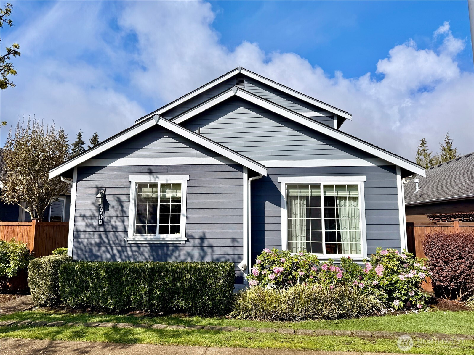 Immaculate 3 bedroom home in Lacey's Kensington neighborhood featuring main floor primary suite! This home has been lovingly maintained and is loaded with desirable features. You're welcomed into the spacious living room with laminate hardwood flooring and a gas fireplace. Vaulted ceilings and large upper windows flood the space with natural light. The living room opens to the dining room, which also features vaulted ceilings and abundant natural light, plus tile flooring. The dining room flows into the kitchen, with bar seat, built-in desk space, pantry, tile flooring, and all kitchen appliances are included. The main floor primary suite features laminate hardwood flooring and includes a walk-in closet and private en suite 3/4 bathroom with walk-in shower. A powder room and the laundry room complete the main floor. The main floor features extra wide doorways, solid surface flooring, an access ramp in the backyard and other accessibility features. Upstairs you'll find brand new carpeting throughout. A family room with skylights connects to the 2 guest bedrooms and a full bathroom. One of the upper bedrooms includes a walk-in closet and is plumbed for gas for a future fireplace. The home is equipped with air conditioning to keep you cool on hot summer days and gas forced air for efficient year round heating. Easy maintenance fenced side "yard" with extended patio and hot tub, and the HOA maintains the front yard. Rear 2 car garage accessible from the alley.
