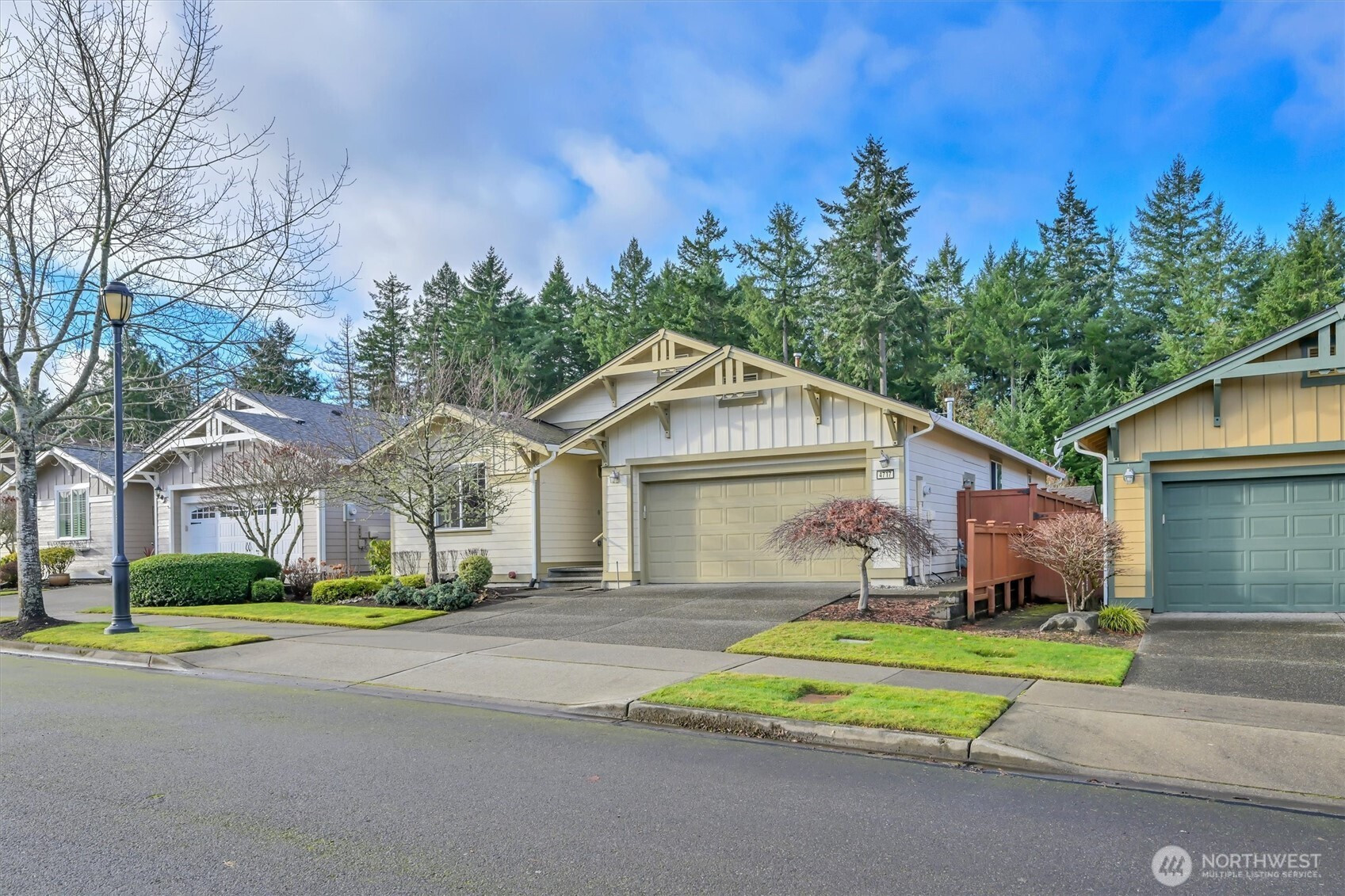 Jubilee's most popular model sits in a quiet cul-de-sac with lots of morning and afternoon sunlight. Meticulous care is evident throughout this 1,758 sf, 2 bedroom, 1.75 bath Diamond, equipped with A/C. The furnace and water heater are only 2 years old, the appliances about the same, and will remain with this well priced home. A very open feel through the kitchen and great room, office/den as you look out the rear to the majestic trees, covered deck and low maintenance backyard. There's a large shed for gardening and storage, too. A $5,000 Buyer Bonus is offered at closing for future upgrades, closing costs. A one year warranty included. Welcome home to Jubilee and the "lifestyle" that makes it the PREMIER adult community in the NW.