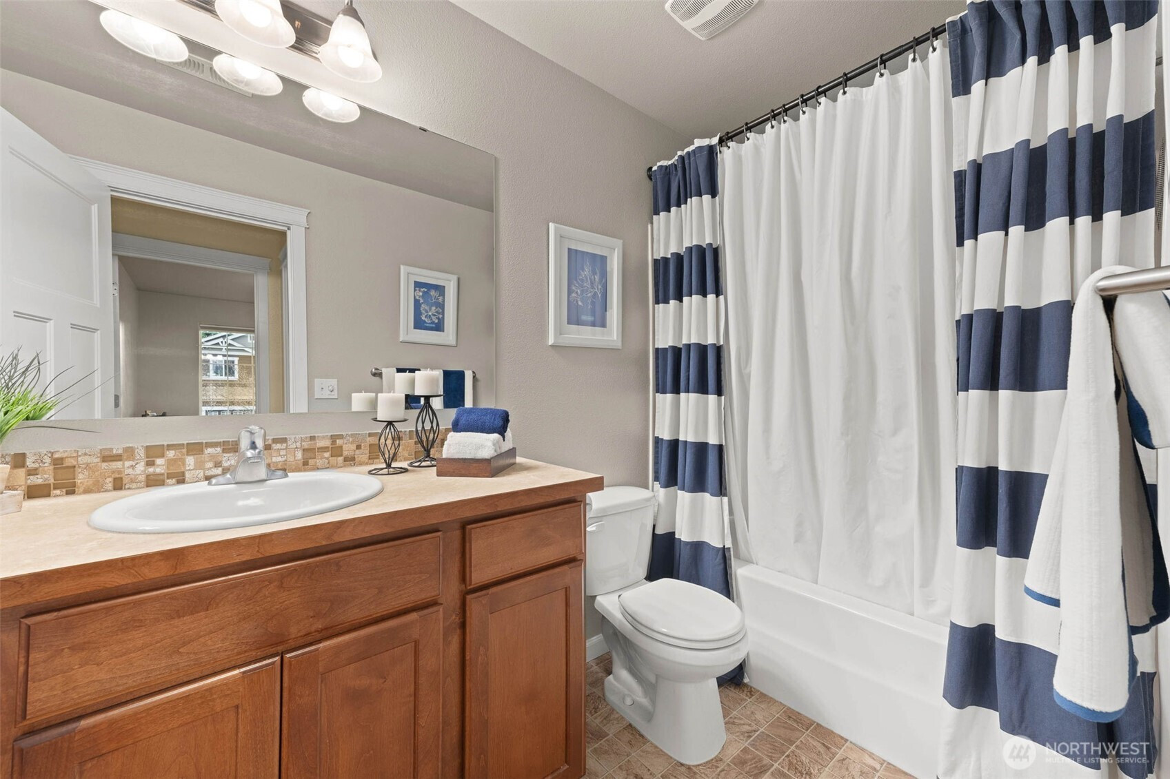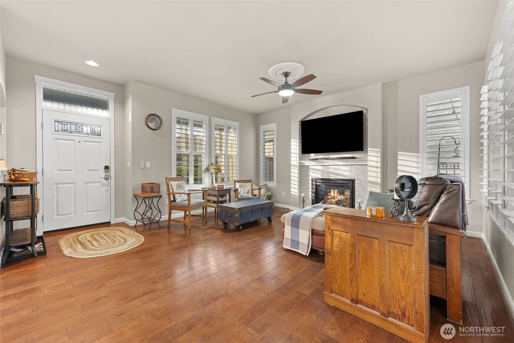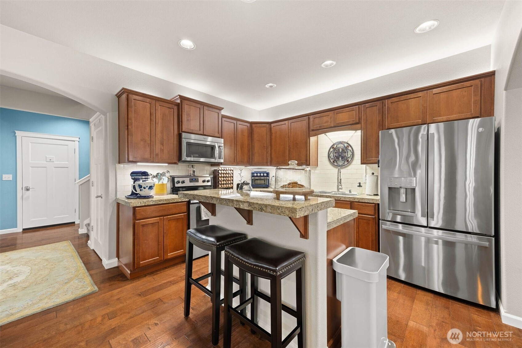Welcome Home to the Iris, a fantastic Craftsman-style home built in 2013. This 1,847 SF home features an open floorplan with engineered hardwoods on the main, louvered shutters, Chef’s kitchen including granite tile countertops with island/eating bar, Alder Cayenne-stained cabinets, formal Dining Room and large Living Room with gas fireplace. Downstairs is completed by powder room and access to fully-fenced yard (Fence new 2022) with gorgeous low-maintenance fairy garden and patio. Upstairs loft/living area is perfect for a home office, hobby or gaming area with updated electrical outlets to protect sensitive technology. Primary Bedroom features vaulted ceilings, large window for natural light and 5-piece en suite with walk-in closet. Also upstairs includes two additional bedrooms both with walk-in closets, full bathroom and laundry area. Updates/Upgrades include new garage door, motor, springs and lights in the 2-car garage with alley access. New carpet upstairs with memory foam pad installed 2021. Washer, dryer, refrigerator, installed 2021. Solar Panels installed and Electrical Panel upgraded in 2023. Exterior lights updated and painted in 2025. New hot water heater and fresh interior painted in 2026. In the heart of Lacey close to many amenities and just minutes away I-5 and JBLM!