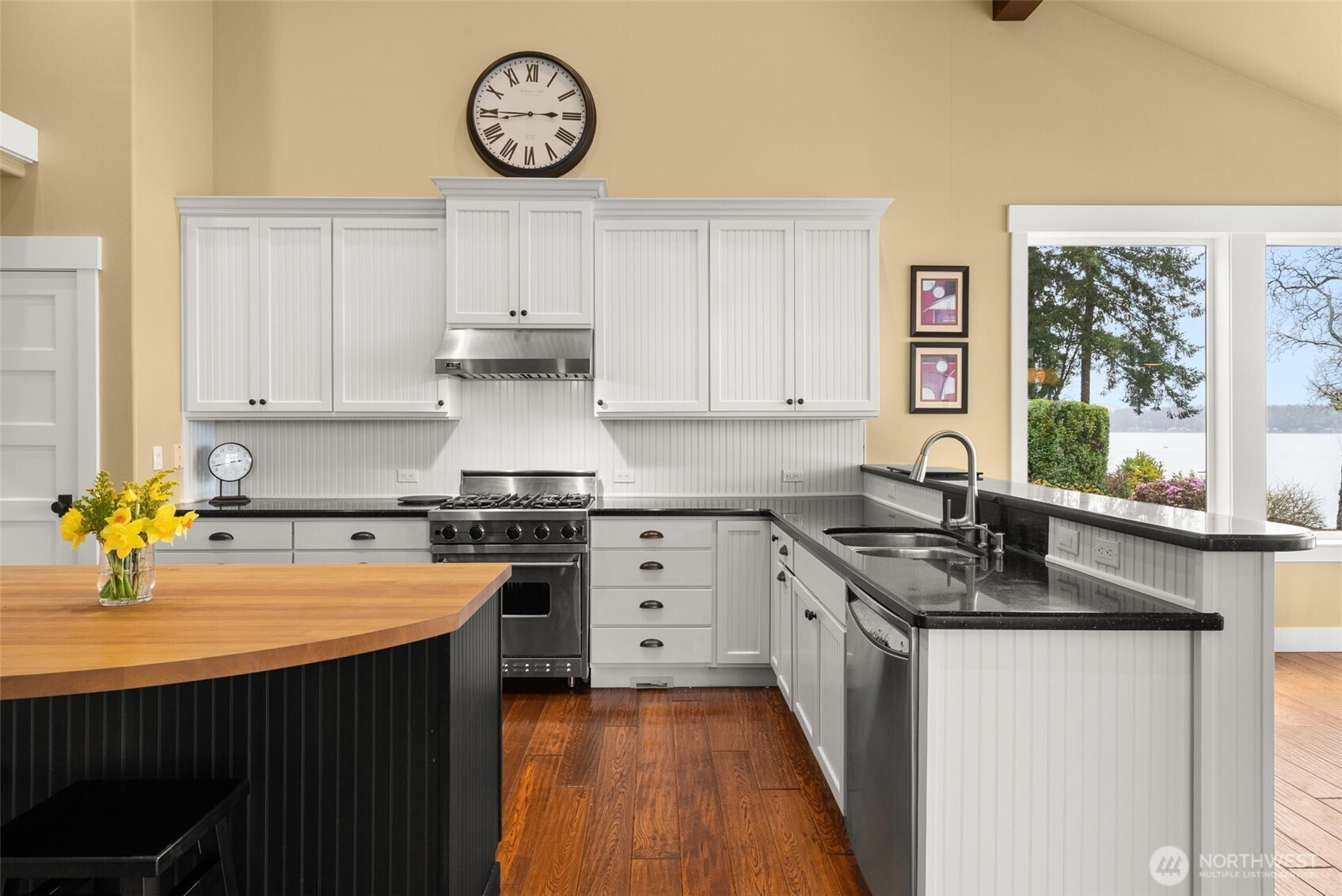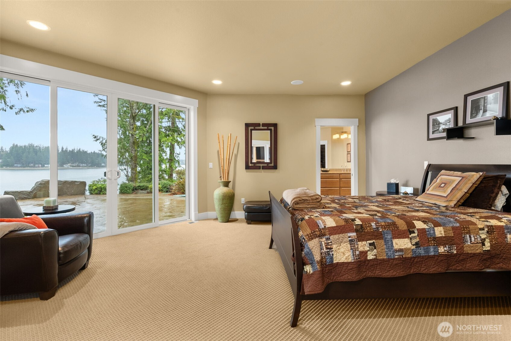 Take in breathtaking views on Bayshore with this beautifully designed, low-maintenance rambler. Offering 3 bedrooms plus a den & high tech wired media room, this home sits atop 147 feet of pristine Eld Inlet waterfront, includes tidelands and a buoy! Soak in the sunsets on the massive stamped concrete patio with room for all your entertaining needs. The impressive primary suite showcases sweeping Olympic Mountain views, a luxurious five-piece en-suite, & a spacious walk-in closet. Inside, you’ll find vaulted ceilings, impressive wood-wrapped beams, gorgeous masonry work and custom built-ins surrounding the fireplace, chef's kitchen w/ stainless steel appliances, custom details throughout, thoughtfully designed to check every box. 1242 Sq. Ft garage to store all your toys! NEW ROOF and NEW EXTERIOR PAINT! Located in a small, upscale community surrounded by high-end homes, this property includes rare deeded dock access for the ultimate waterfront lifestyle.