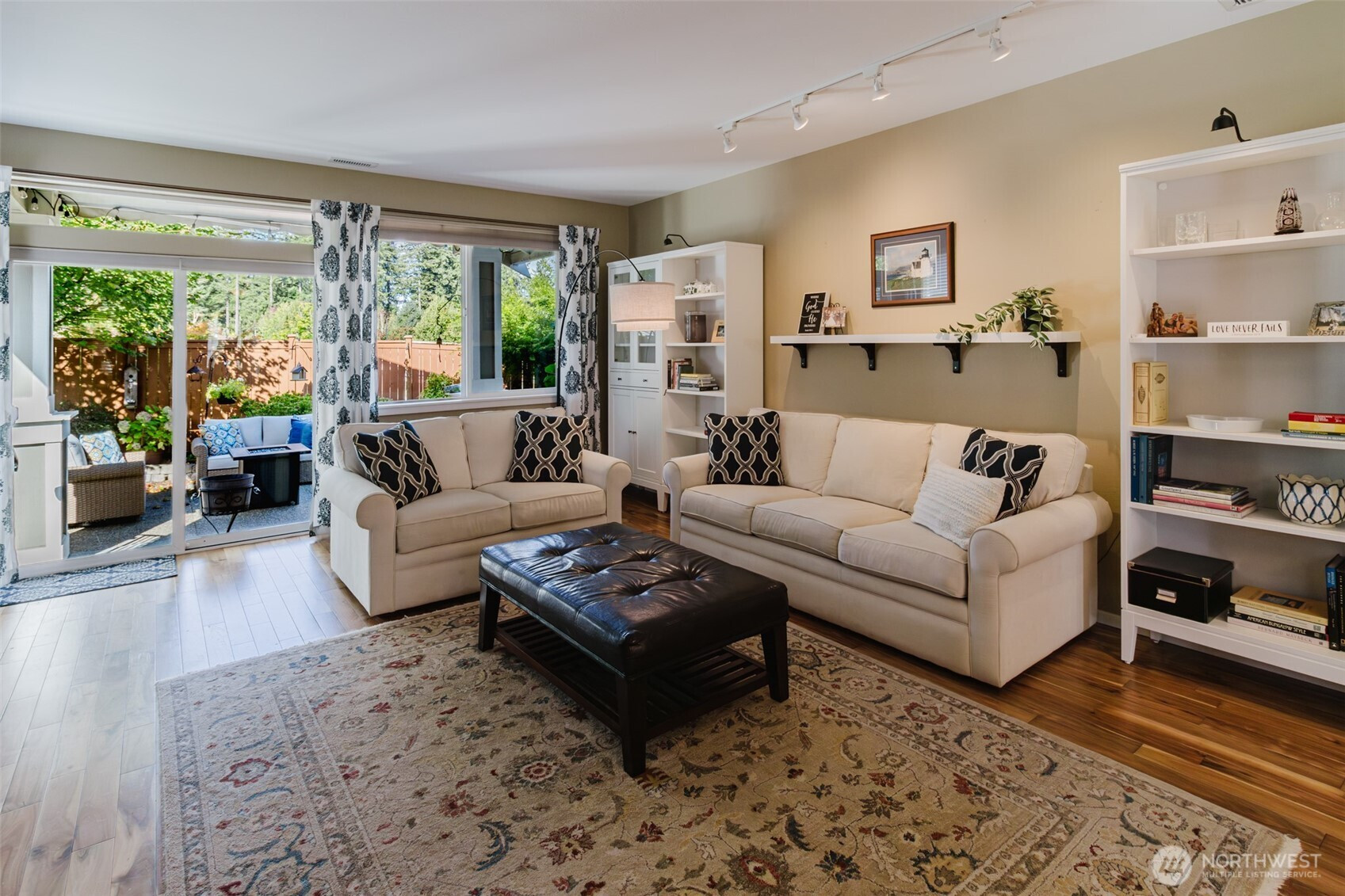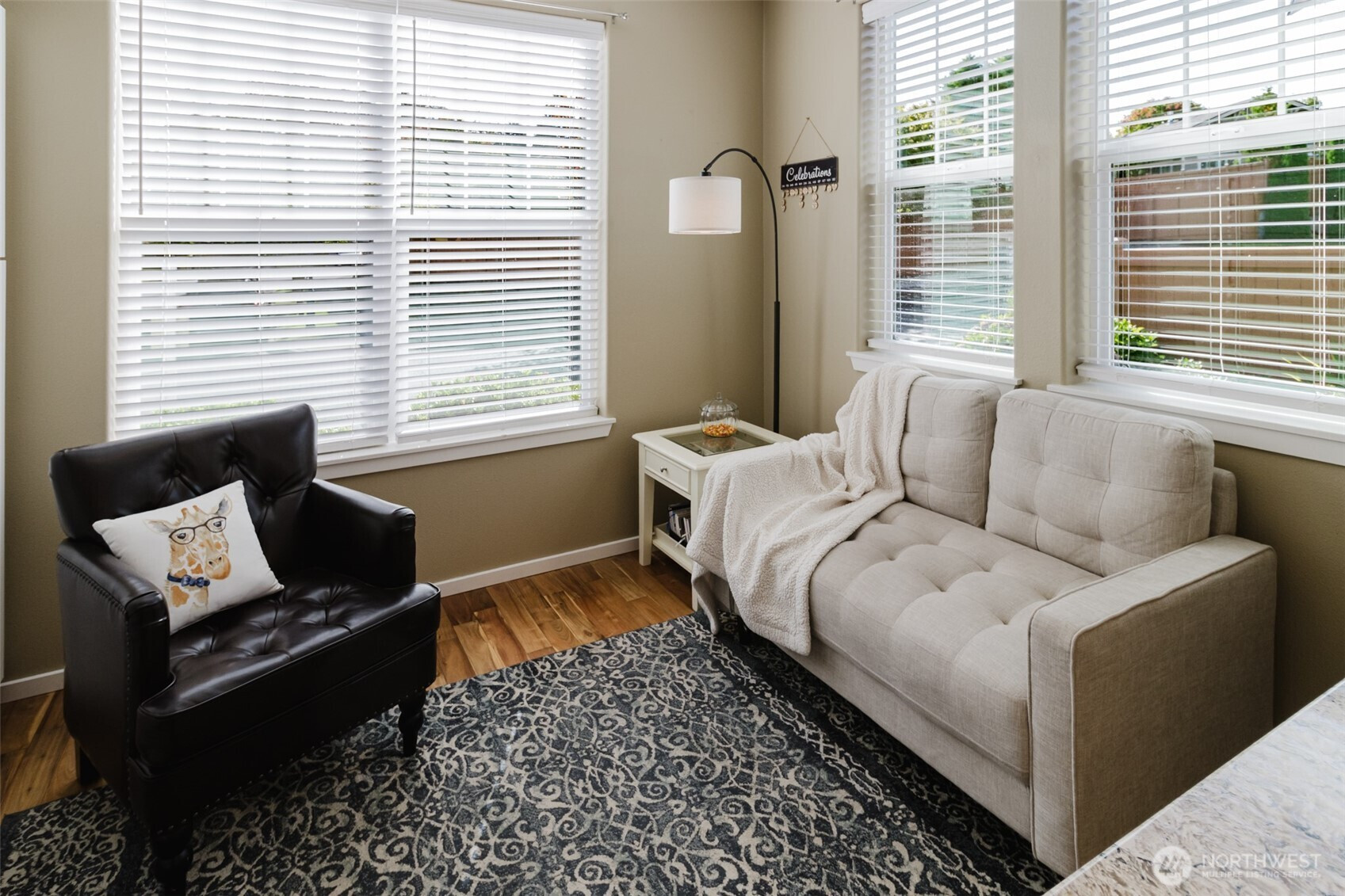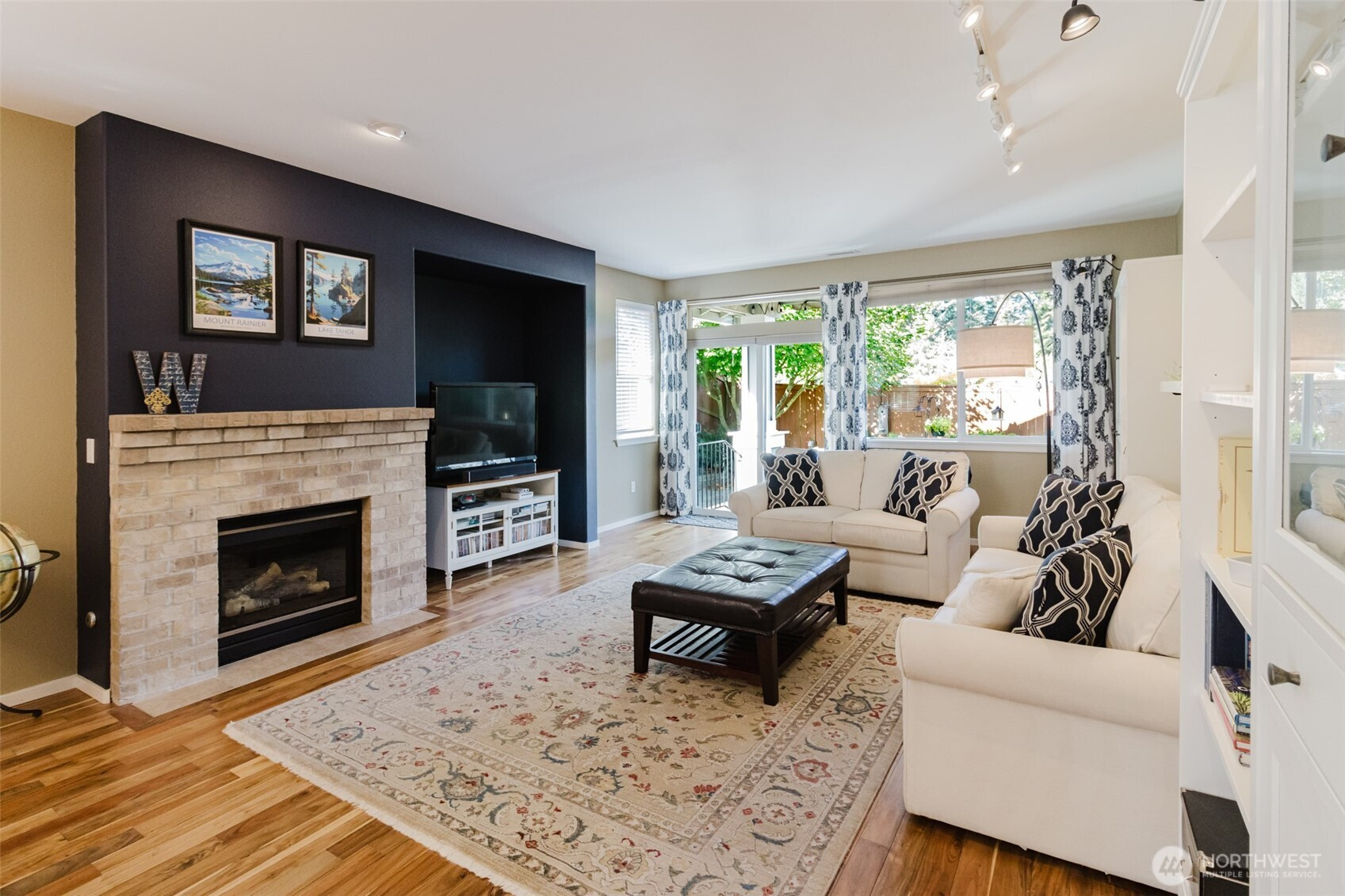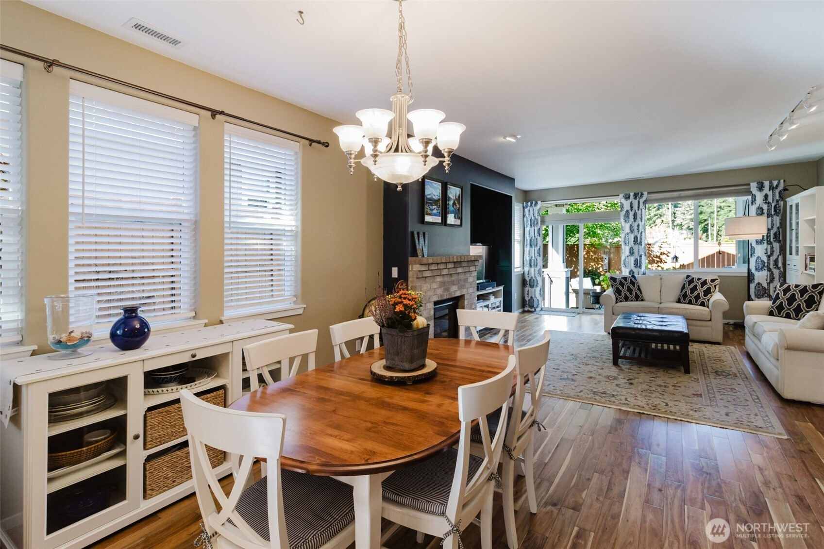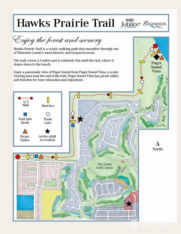 Welcome to Jubilee! Experience a vibrant lifestyle in this beautifully maintained Liberty floor plan. Light-filled, move-in ready, and featuring a private side entry. Gorgeous Hickory hardwood floors grace the main living areas, while the kitchen boasts quartz countertops and a cozy nook perfect for a desk or hobby space. Enjoy the warmth of a gas fireplace with brick surround. The finished garage includes a workbench and storage. Relax on the private covered patio with a retractable awning. Easy access to JBLM, medical facilities, shopping, and I-5. Community amenities include a clubhouse, workout room, pool, ballroom, pickleball and tennis courts, playgrounds, and more, all near Hawks Prairie Golf Course.