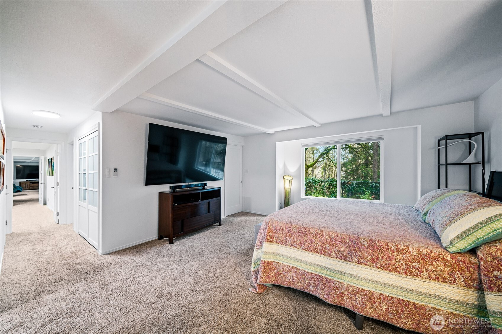 Nestled in a forest, and tucked into a hillside, this completely reimagined rambler home hides above the north end of Black Lake. You can fish, kayak, or just enjoy your recreational access to Black Lake. Every detail of the home was chosen for function, low maintenance, easy comfortable living, beauty, and flexibility. Large windows allow the light that streams through the trees to flood this long open floorplan. Living and dining rooms, plus bonus/flex room. Beautiful sunrises are the perfect backdrop for exploring your gardens with new blooms all spring, summer, and fall. Keyless entries, a backup Generac generator, and an app controlled sprinkler system add to your comfort living here and make it easy to leave behind when you go.