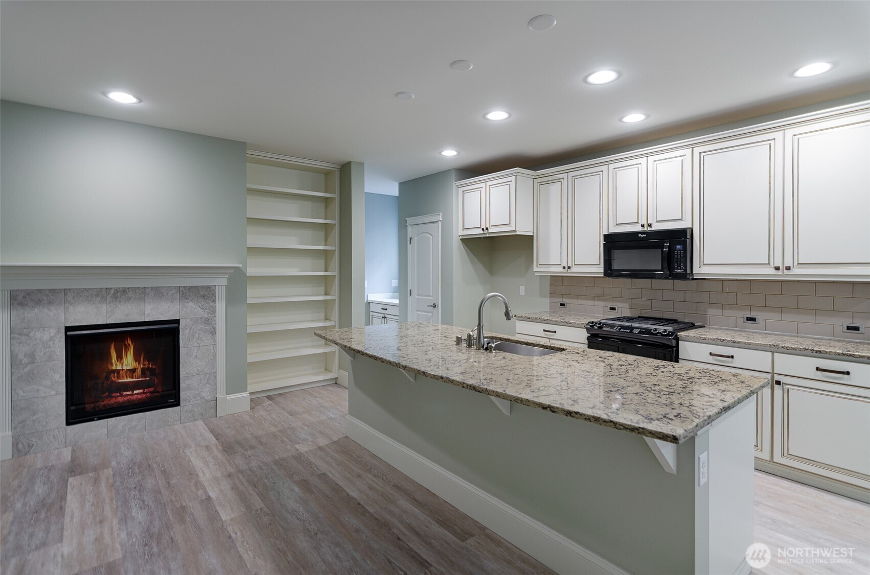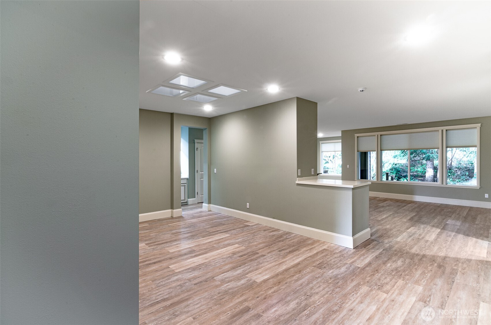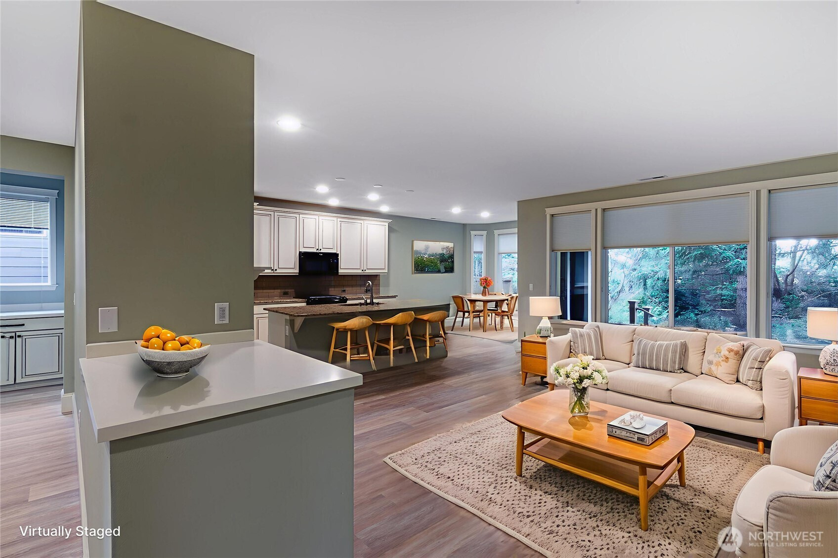Discover an upgraded Shea-built Bainbridge floor plan positioned to feel at one with nature. This exceptional homesite backs to the Links Golf Course and a well maintained wooded backdrop with mature plantings, a tranquil water feature, extended paved patio, and a covered porch ideal for year-round enjoyment. The open kitchen, dining, and living areas are designed to showcase the views, featuring a gas fireplace with built-in shelving and a massive kitchen island offering added storage. A private den and an open dining area with skylights provide flexibility and natural light. The serene primary suite includes a large bay window and direct access to the covered patio. Brand-new vinyl plank floors. Solar panels offer energy savings.