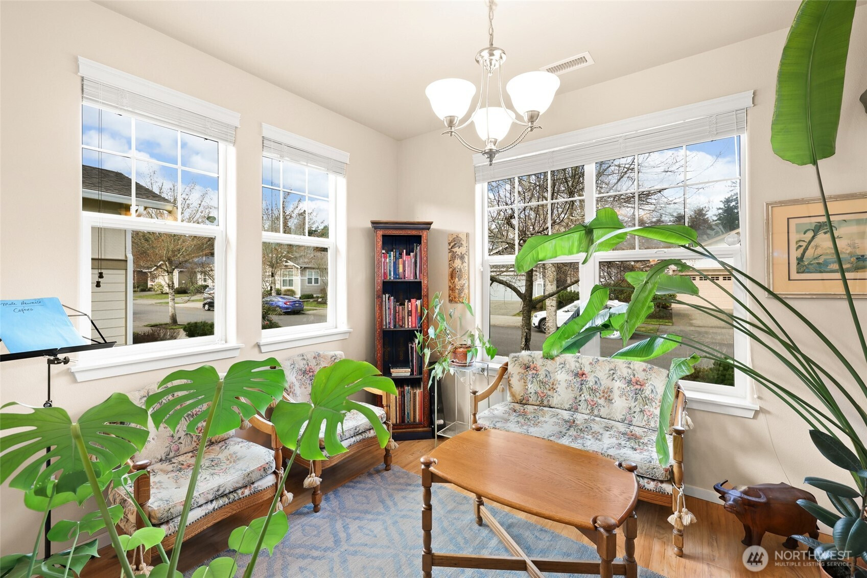 Welcome home—ideally located within walking distance to tennis courts. This charming property features attractive stone accents, a side entry, and a spacious living and dining room combination perfect for entertaining. The main windows run along the west-southwest side of the home, bathing the living room, dining area, and kitchen in abundant natural light. A spacious, light-filled sunroom sits just off the kitchen, which features Silestone countertops, maple cabinetry, pantry, gas range, refrigerator, and dishwasher. The spacious primary suite offers a walk-in closet and a beautifully tiled shower with ledge, along with a double vanity. A generous second bedroom provides versatility for guests or a home office. The inviting living area includes a large TV niche and a stone fireplace with mantle. Step outside to the covered deck with railing—perfect for year-round enjoyment. The property is fully fenced and includes HVAC, underground sprinklers, and thoughtful finishes throughout. Recent maintenance provides added peace of mind, including furnace and heat pump maintenance completed on 1/12/2026 and crawl space inspection and maintenance on 1/16/2026. The home is also equipped with a Noritz EZ Series Pro tankless gas water heater installed on 8/25/2025. The home was freshly painted just two years ago. A newer HVAC system, installed seven years ago, has been consistently and professionally maintained.