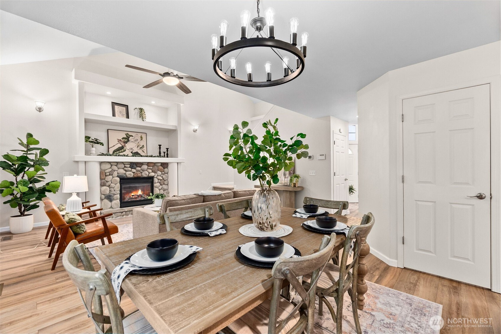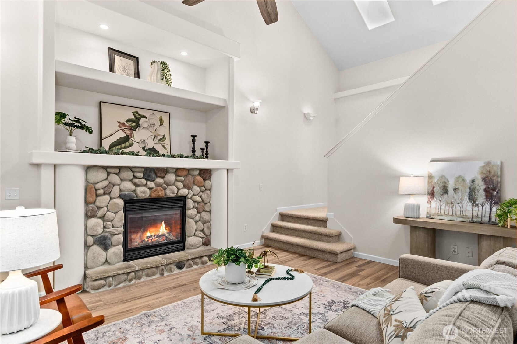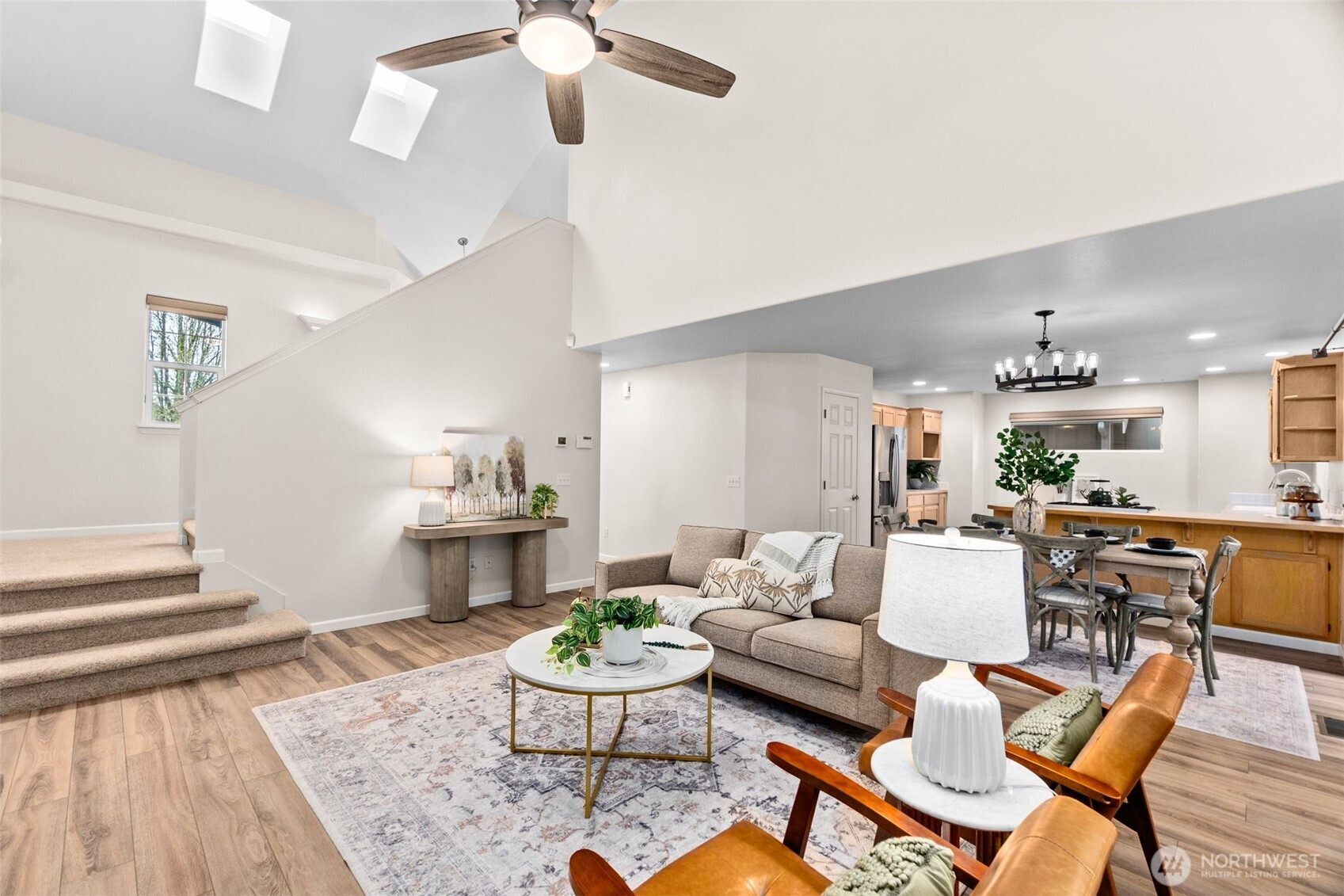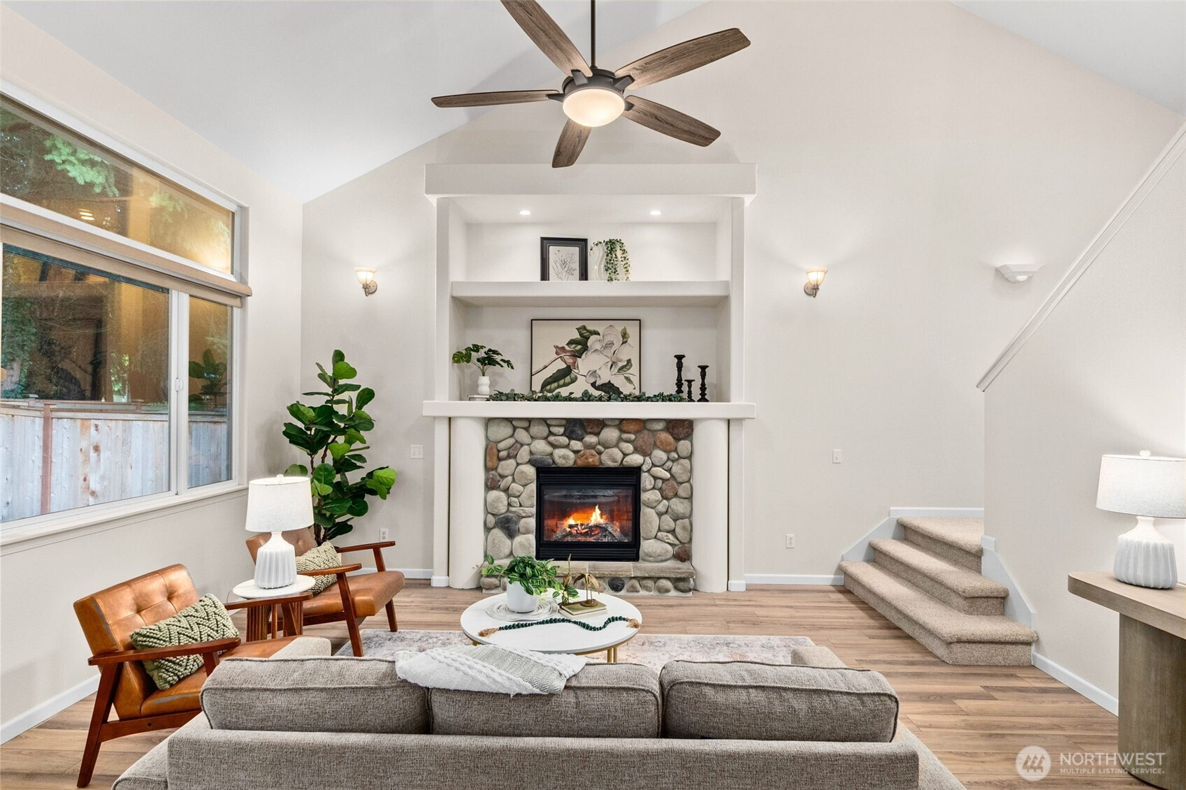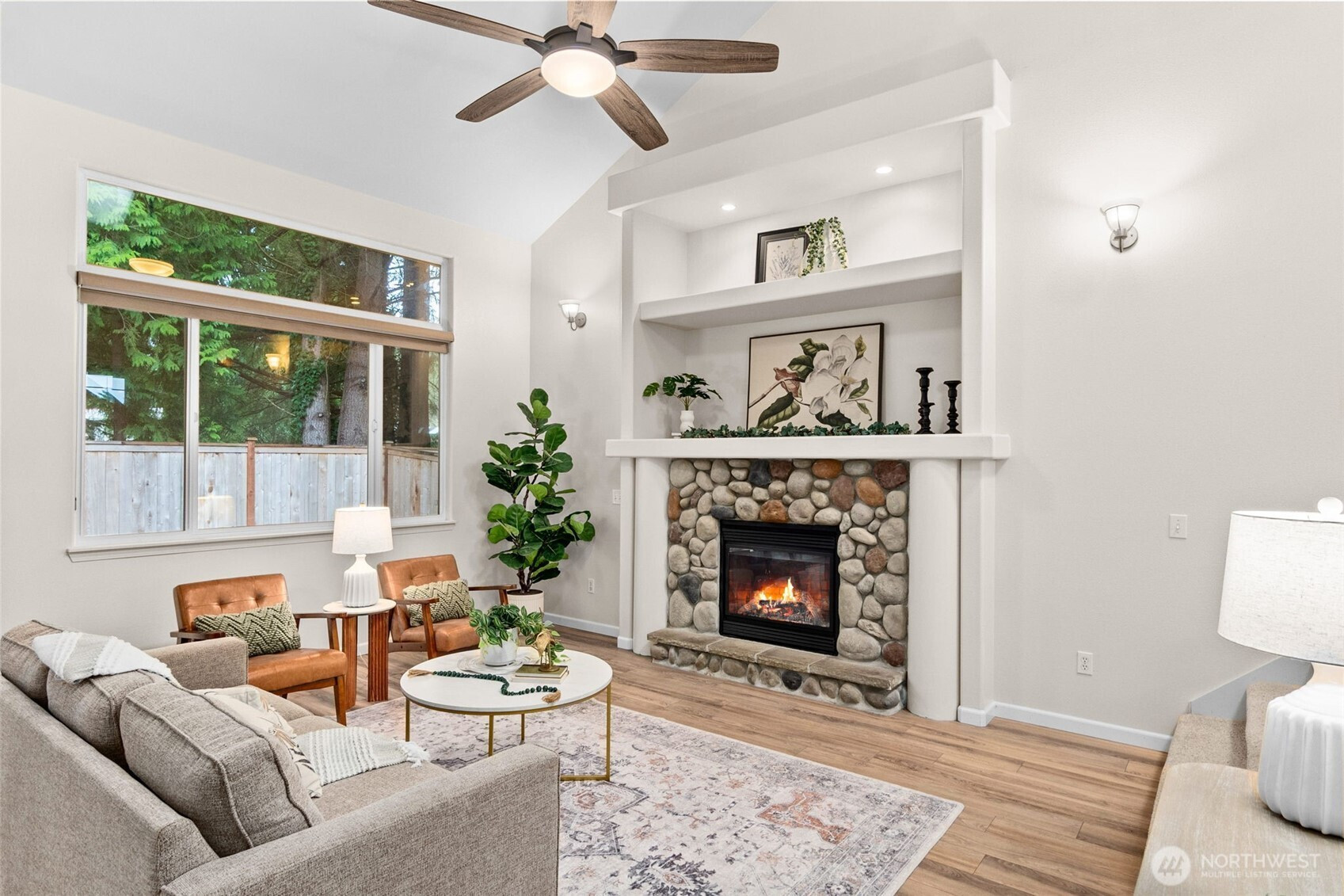 Immaculate 4-bed, 3-bath home in sought-after Chambers Creek Crossing! Bright, spacious & truly move-in ready with thoughtful updates throughout. The main level showcases newer laminate hardwoods, updated lighting & a seamless layout designed for comfortable living & easy entertaining. The spacious kitchen offers newer stainless steel appliances, abundant cabinetry, generous counter space & a walk-in pantry, all open to the dining area & great room with soaring ceilings, oversized windows & a striking stone fireplace with built-in display shelving. Slider leads to a fully fenced, low-maintenance backyard with peaceful greenbelt backdrop. Main floor BR/den & full bath provide flexibility. Upstairs, the dreamy primary suite features an elegant coved ceiling, grand walk-in closet & luxurious 5-piece bath with soaking tub, walk-in shower & dual vanities. Two additional BRs, full bath & laundry room complete the upper level. XL 2-car garage with workbench, storage & generator hook-up. Newer HVAC, water heater, exterior paint, flooring, carpet, baseboards, ceiling fans & fixtures AND 2019 roof & gutters! Community park with playground & sport court across the street! Just a quick stroll to Centennial Elementary- Olympia Schools! Relax, you've found your dream home!