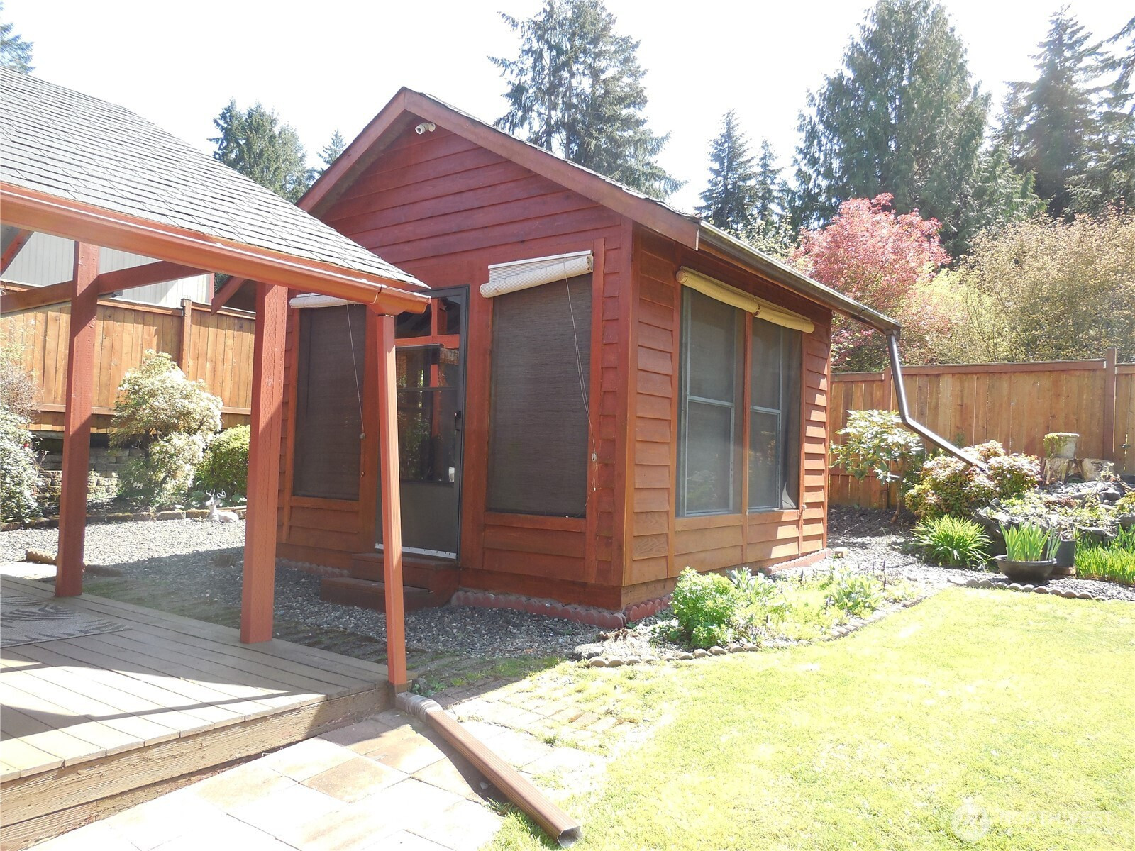Beautiful home with .25 acre DOUBLE lot in a quiet neighborhood and private beach community. 3 bedroom 2 full bath, skylights, gas fireplaces & wood stove. Large Primary bedroom, dual vanities, jetted tub, walk-in shower & huge closet. Kitchen w/maple cabinets & brand new granite countertops. Fully fenced for privacy. Retreat Cave with lights, ceiling fan and electrical outlet, ready for sauna or office. Private South Sound community offers residents w/access to 1/2 mile private beach, 2 waterfront cabanas, high tide marina, kayak/canoe rack slots, boat ramp, mooring buoys, a nature trail, playground, park, basketball court, & school bus shelter. 1 yr Home Warranty provided by seller.