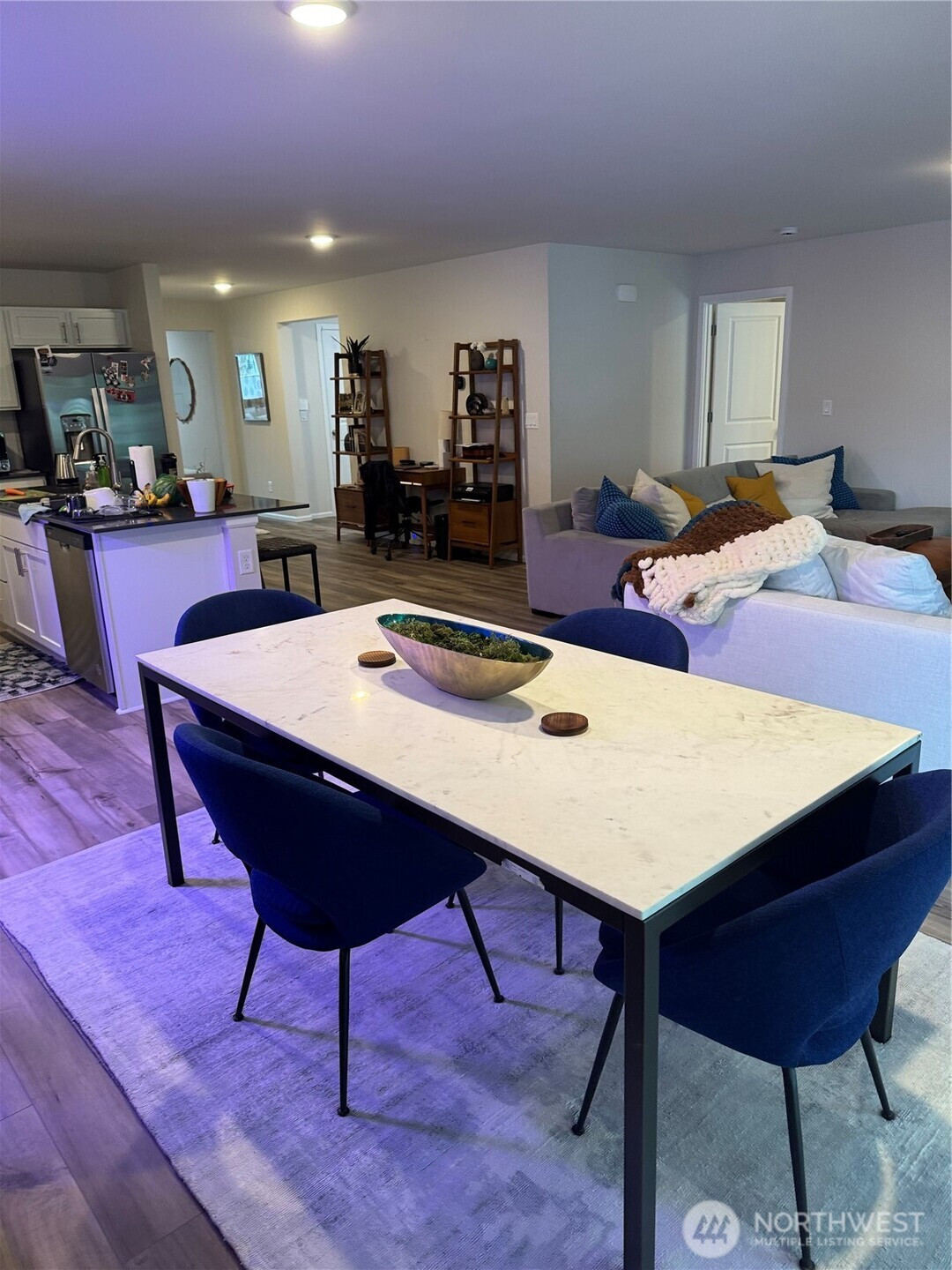 Modern One-Level Living at Its Finest! Experience the perfect blend of style and convenience in this stunning 1,725 sq. ft. rambler. The heart of the home features a chef-inspired kitchen boasting sleek White Maple cabinets with nickel pulls, elegant slab quartz countertops, and a full-height tile backsplash. Whether hosting at the oversized quartz island or cooking on your premium gas range, this space shines. Enjoy durable LVP flooring through the main living areas and plush carpet in the bedrooms. 5 setting LED canned lighting, Ring doorbell w/remote, honeycomb top down/bottom up shades throughout. Pre-plumbed for utility sink in laundry room. Complete with a covered patio for year-round outdoor enjoyment, a high-efficiency heat pump with AC, and a fully landscaped yard. Move-in ready with all appliances included!