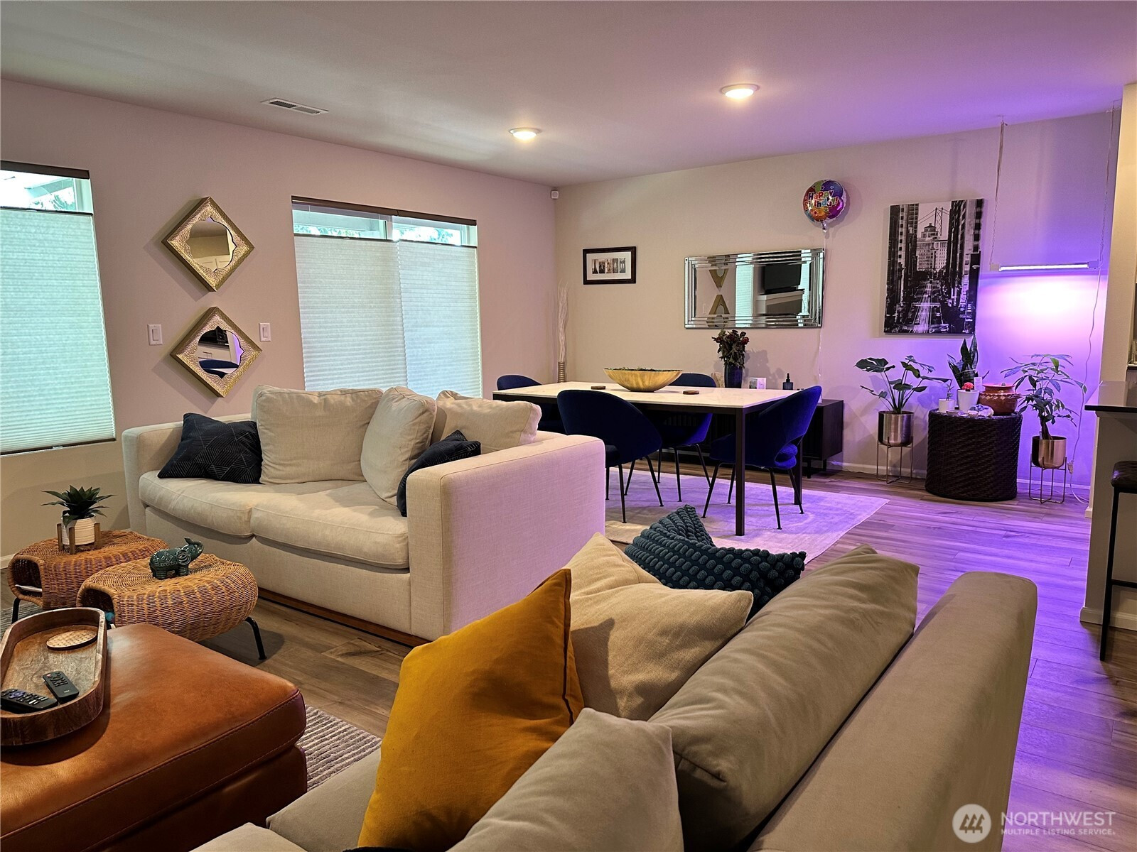 Modern One-Level Living at Its Finest! Tumwater School District- walk the kiddos to Peter G Schmidt Experience the perfect blend of style and convenience in this stunning 3/2 1,725 sq. ft. rambler. Open concept family style living. Chef-style kitchen, walk-in pantry, counter seating, dining room, and gas fireplace. Perfect for gatherings. Enjoy durable LVP flooring through the main living areas and plush carpet in the bedrooms. 5 setting LED canned lighting, Ring doorbell w/remote, honeycomb top-down/bottom-up shades throughout. Pre-plumbed for utility sink in laundry room. Complete with a covered patio for year-round outdoor enjoyment, a high-efficiency heat pump with AC, and a fully landscaped yard. Move-in ready with all appliances included! Seller will include furnishings for $5,000 pending negotiation