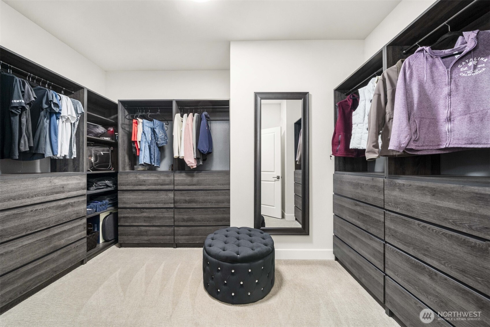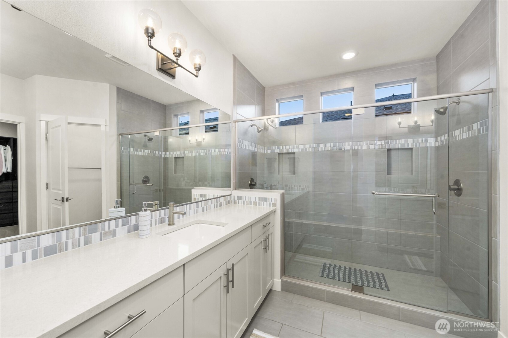Like new immaculate Elate model built by Shea. Absolutely turn key ready & no detail missed. A rare find that perfectly blends style and functionality. This lovely home features two spacious bedrooms, each with its own en-suite bath. Primary bath features extra-large double headed shower. There is a dedicated office space/flex room. The open great-room floor plan is designed for entertaining, highlighted by a 6' x 9' generous quartz kitchen island & high-end GE profile appliances. Engineered hardwood flooring through main living areas. Loads of upgrades throughout. Master closet recently remodeled with Closet by Design. Tailored shelving, custom compartments that will house high heeled shoes, long dresses, to folded sweaters, creating a boutique-style display. Covered outdoor patio area & low maintenance yard. Exterior home painted 2023, interior walls and millwork painted 2024. We have updated all 36 can ceiling lights to create the perfect atmosphere by Sunco's decorative fixtures. This home backs onto a serene greenbelt and community trail, providing direct access to the community beach & Puget Sound. Experience the peaceful sights & sounds of nature in the welcoming 55+ community of Jubilee.