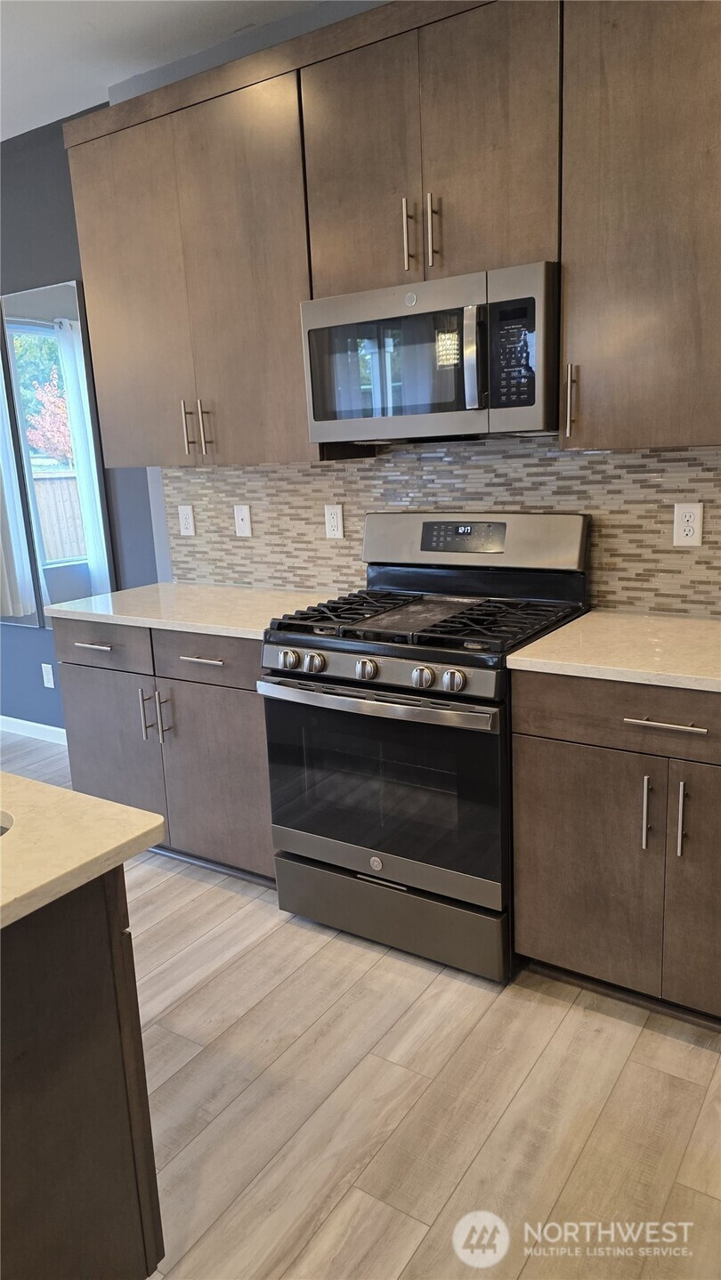 Welcome to this meticulously maintained home in the desirable Summerwalk community of Lacey! This stylish residence features an open-concept kitchen with quartz countertops, a gas range, stainless steel appliances, and a spacious island.The dining area opens to a private, fenced backyard. The living room includes a gas fireplace and a half bath. Upstairs, enjoy a laundry room and a luxurious primary bedroom with a 5-piece en-suite bath and walk-in closet, plus three additional bedrooms and another bath.With a two-car garage and close to shopping, restaurants, and Rainier Vista Park, this home offers comfort and convenience. Don’t miss this opportunity!