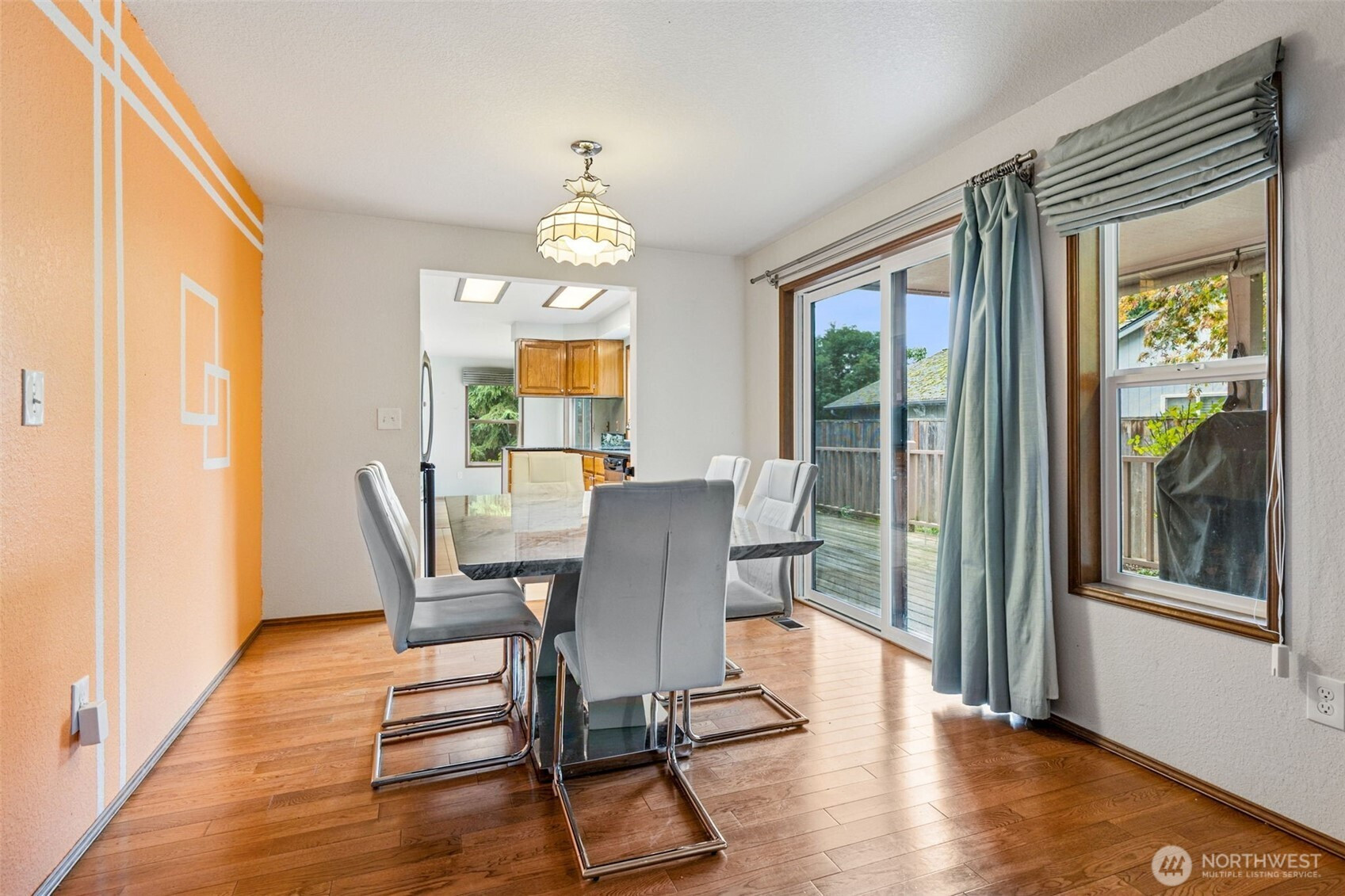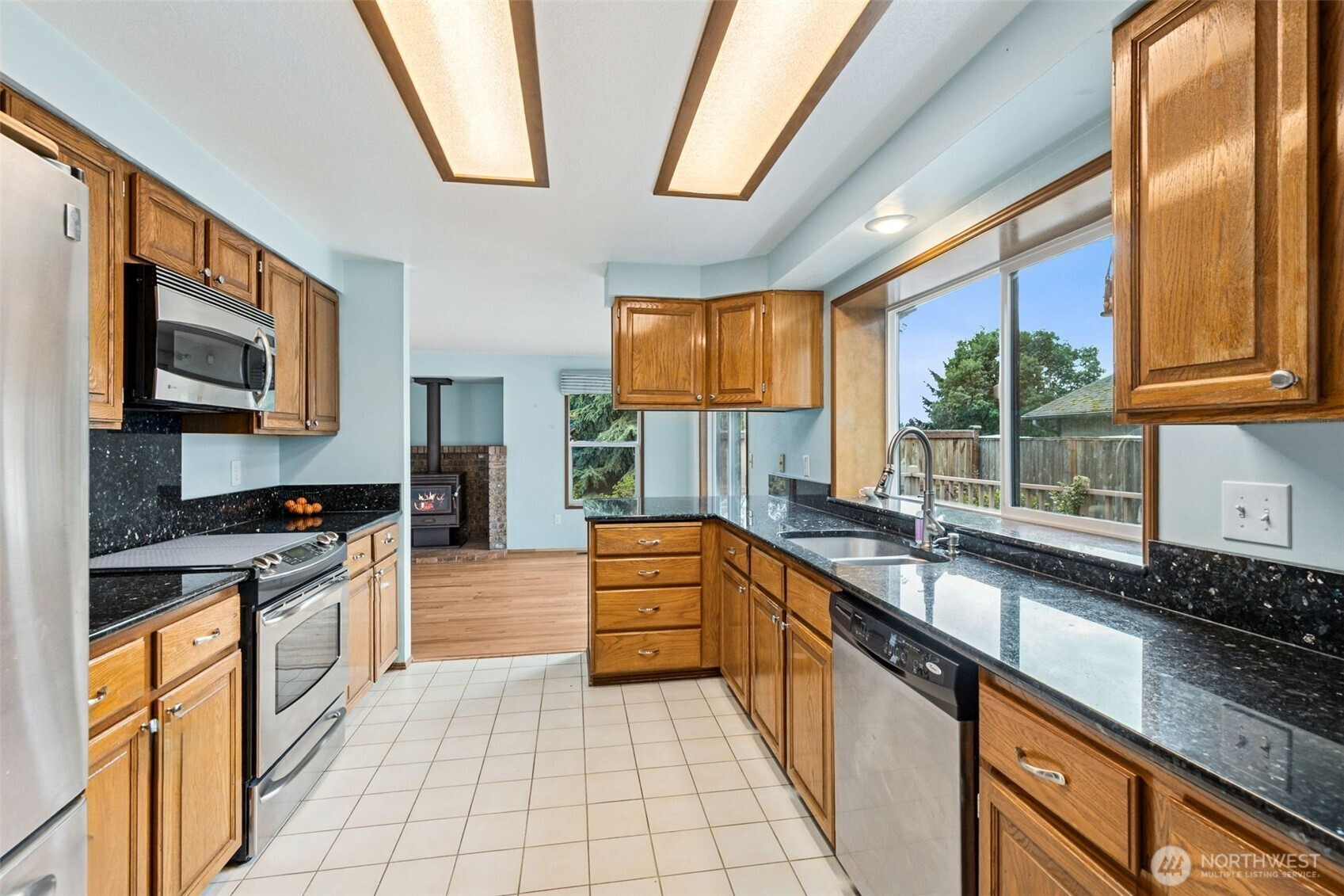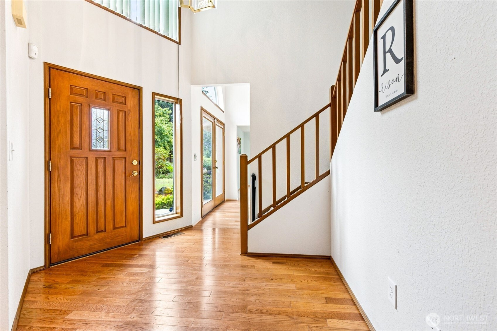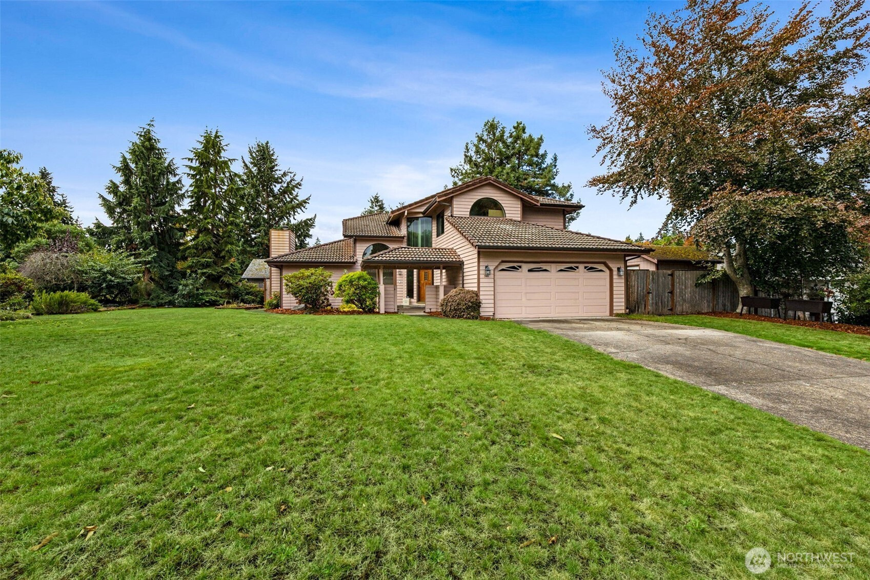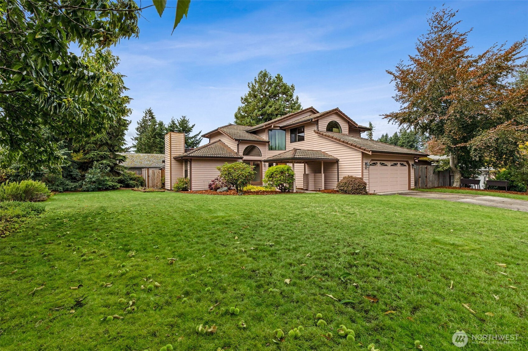 This 2-story home with 3 bedrooms sits perfectly on one of the largest corner lots in the neighborhood with ¼ acre. Large front yard & covered back deck is perfect for relaxing & gardening. Grand entry w/ 2-story foyer flooded w/natural light on rich oak hardwood floors throughout the main floor. Large kitchen w/ granite counters, Stainless steel appliances, oak cabinets & eating bar. 2 separate living rooms & primary bedroom w/ attached 5-piece suite w/ soaking tub & walk in closet. 2 Skylights bring in lots of natural light & all appliances included. Energy efficient gas forced air heat & gas hot water heater. 2 car garage & Long-Life tile roof. Conveniently located minutes from Hawks Prairie golf course, restaurants, grocery store & JBLM