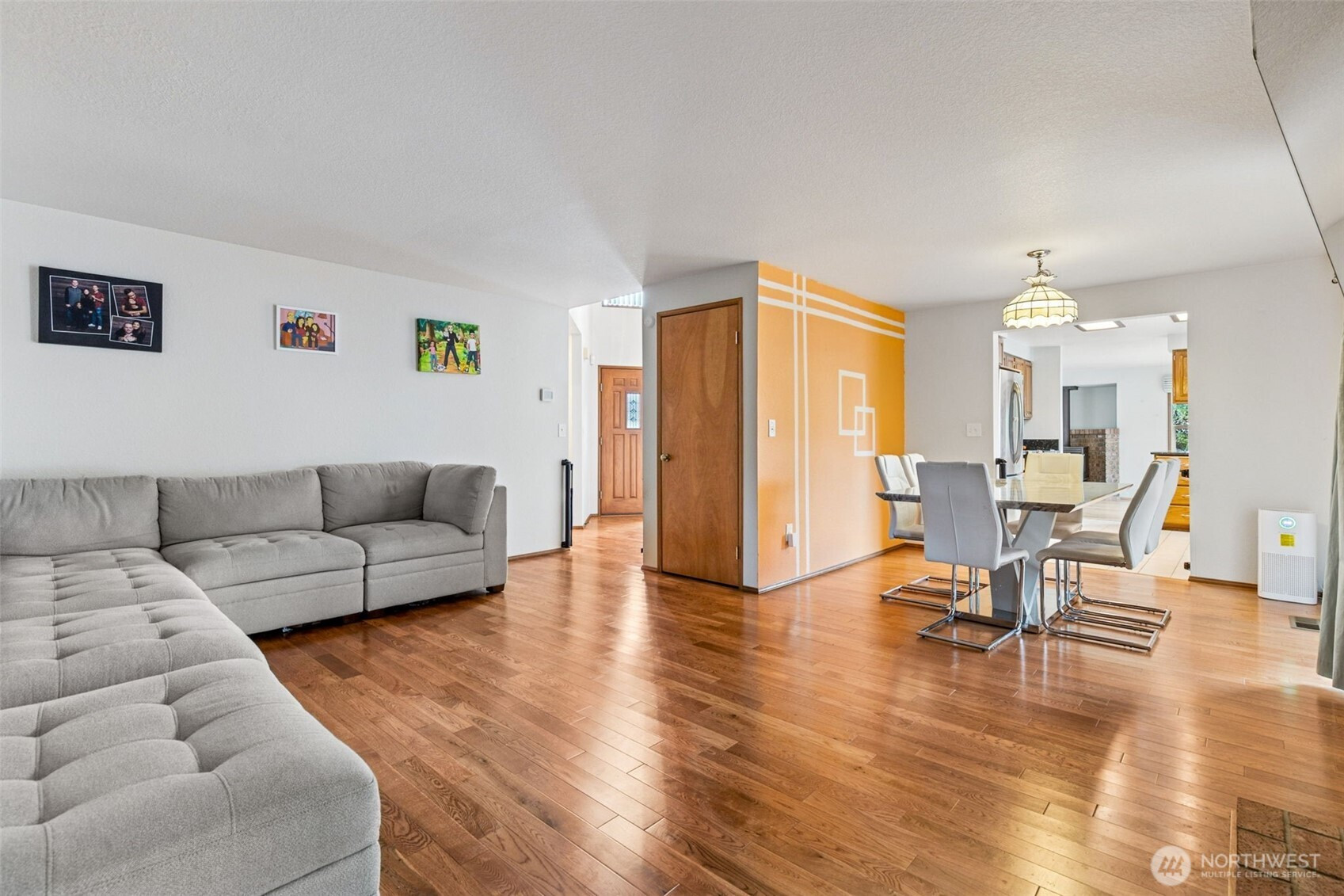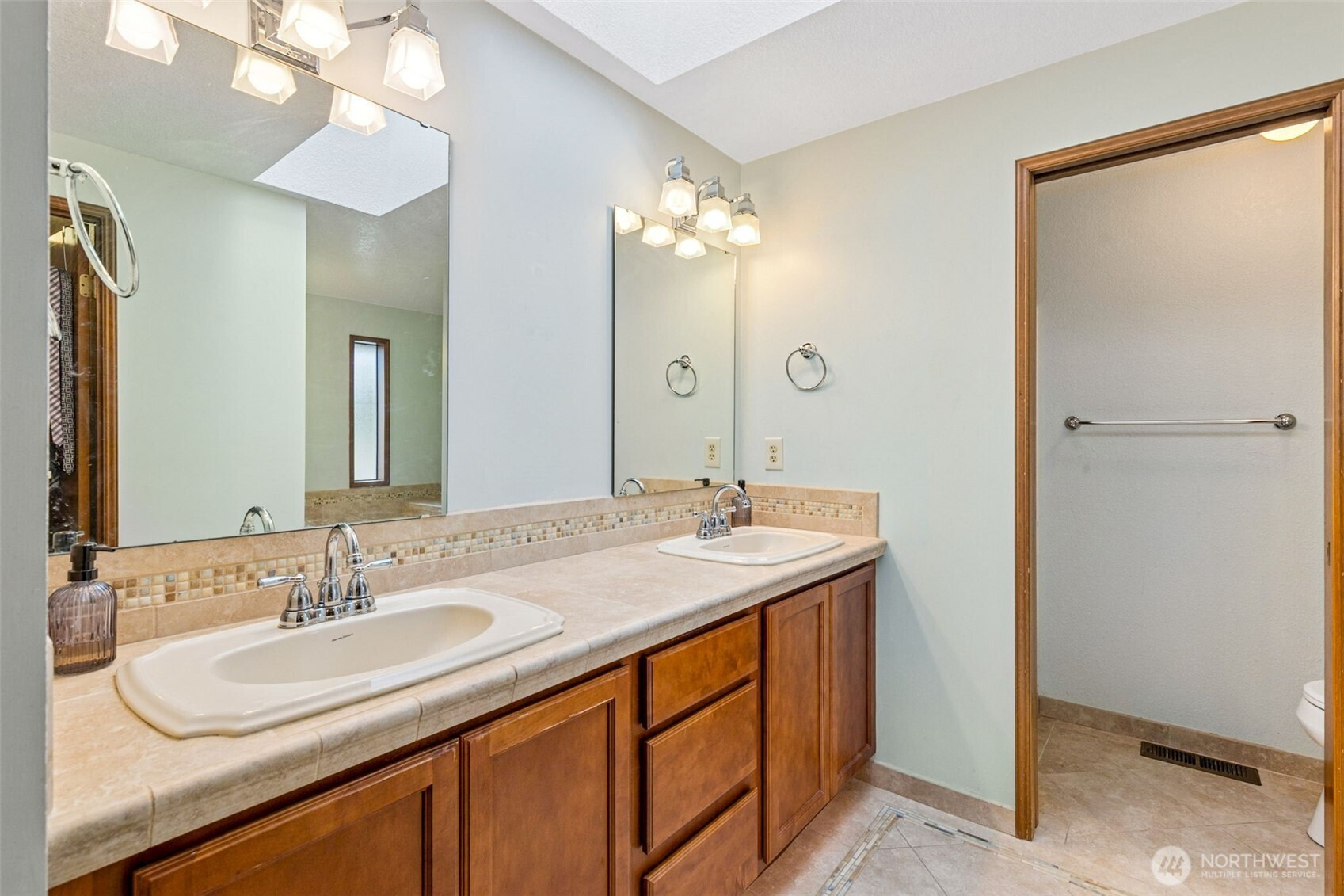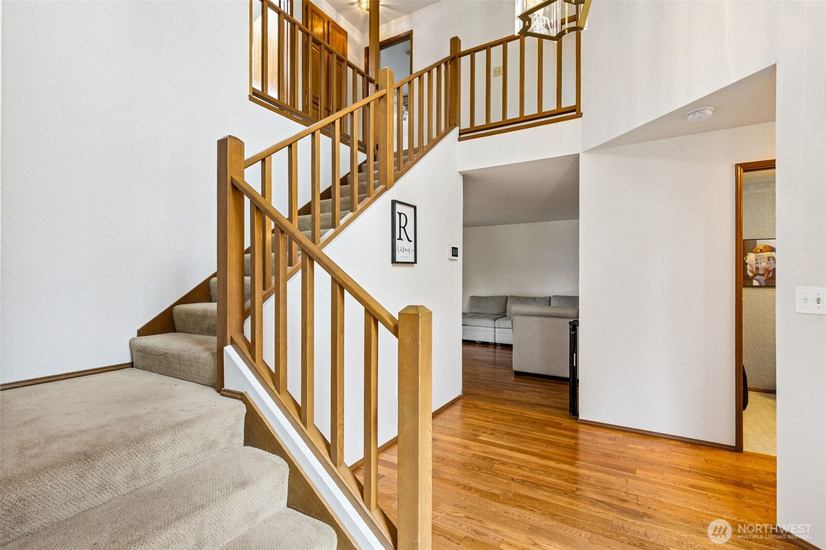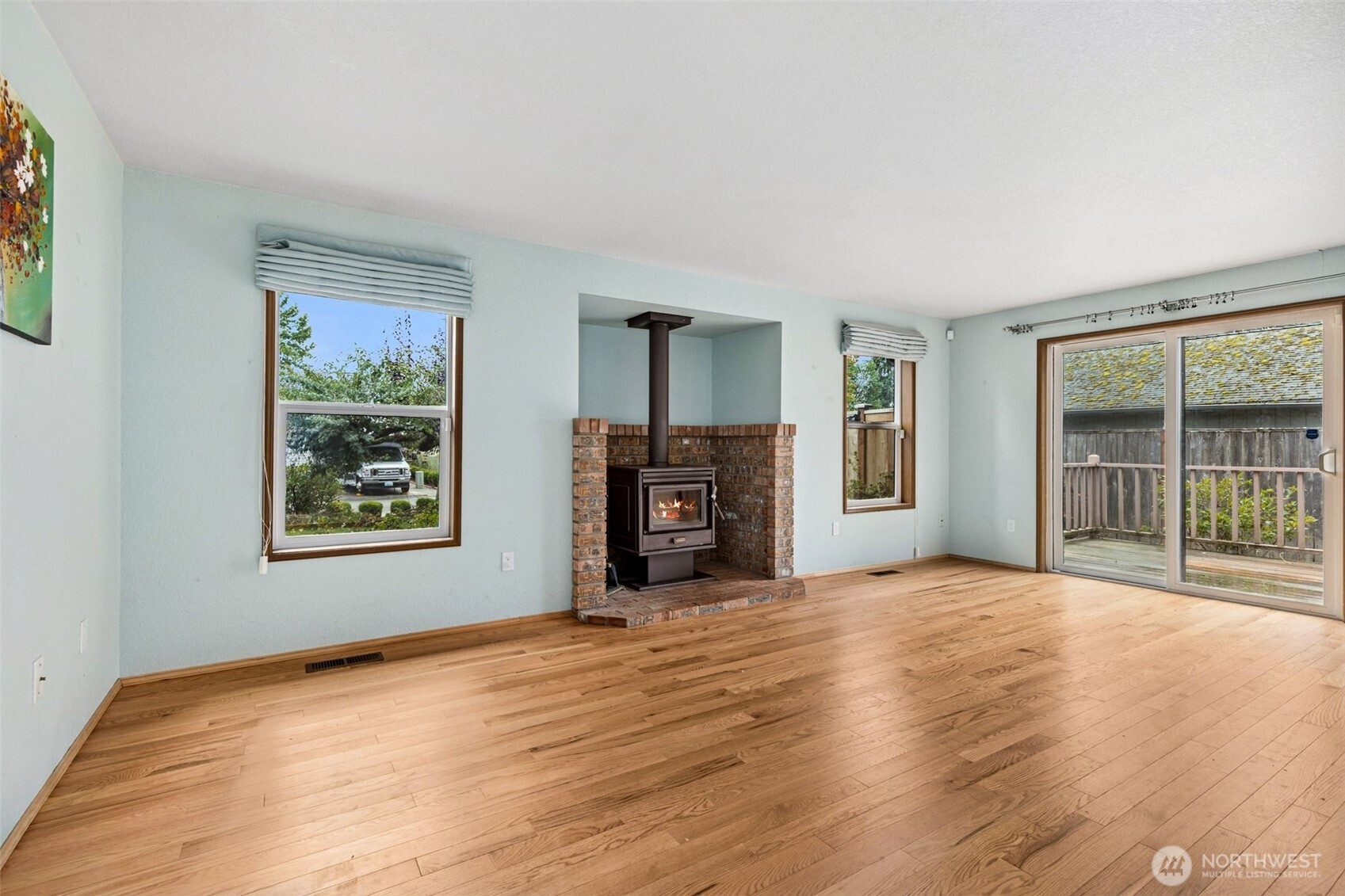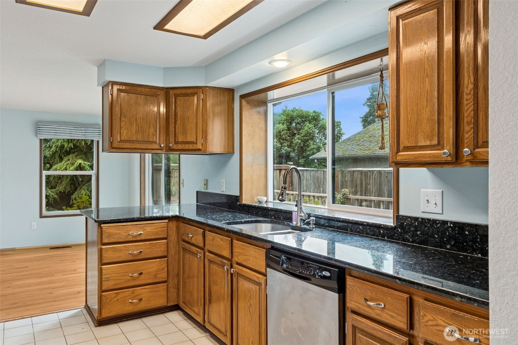 This 2-story home with 3 bedrooms sits perfectly on one of the largest corner lots in the neighborhood with ¼ acre. Large front yard & covered back deck is perfect for relaxing & gardening. Grand entry w/ 2-story foyer flooded w/natural light on rich oak hardwood floors throughout the main floor. Large kitchen w/ granite counters, Stainless steel appliances, oak cabinets & eating bar. 2 separate living rooms & primary bedroom w/ attached 5-piece suite w/ soaking tub & walk in closet. 2 Skylights bring in lots of natural light & all appliances included. Energy efficient gas forced air heat & gas hot water heater. 2 car garage & Long-Life tile roof. Conveniently located minutes from Hawks Prairie golf course, restaurants, grocery store & JBLM