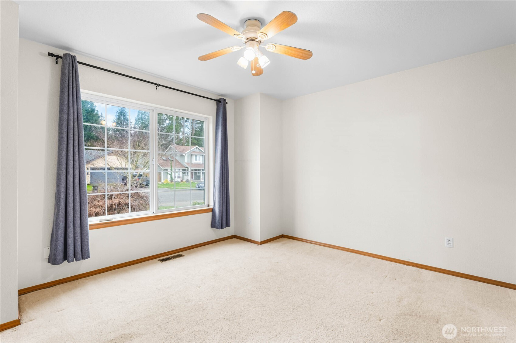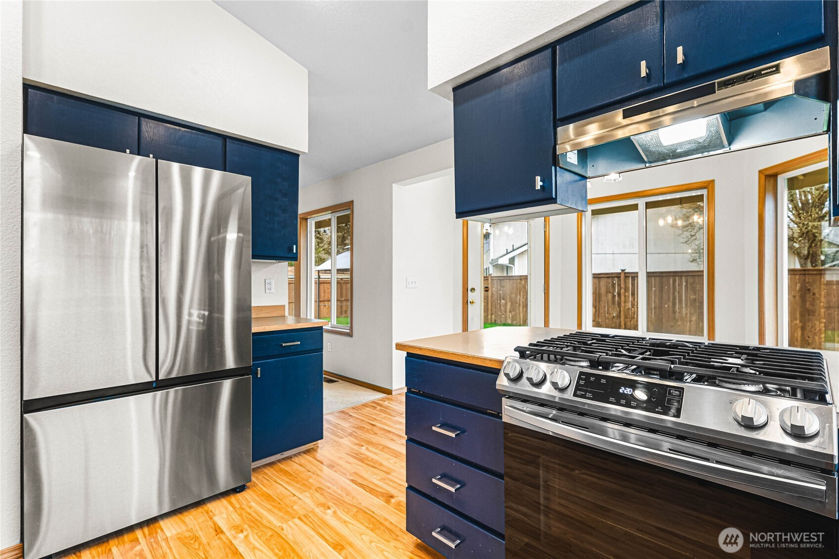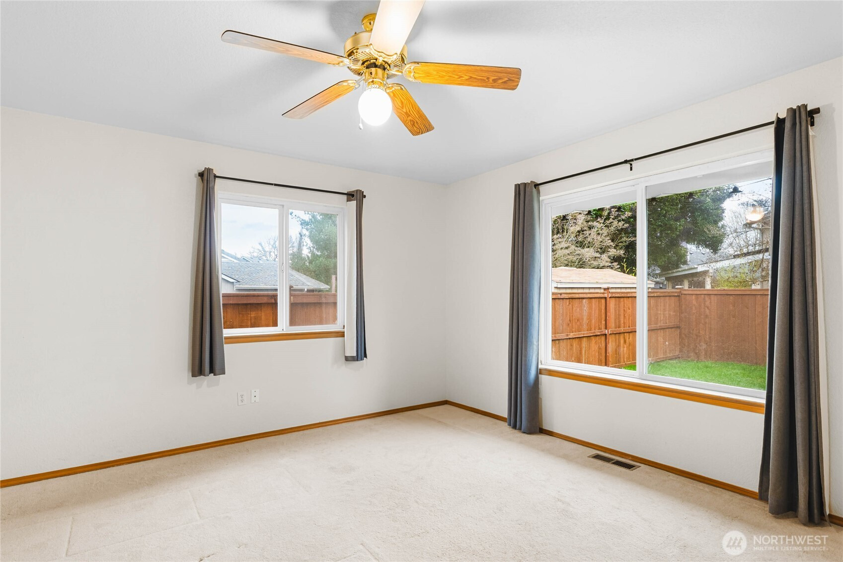 Welcome home to this Lacey rambler in the highly sought-after Park Place community! This beauty comes equipped with solar panels and a large fully fenced yard with a shed and a patio that's perfect for enjoying in the warm summer months! As you enter the home, you can't help but notice the vaulted ceilings with skylights, which ushers in tons of natural light! The double-sided, see-through fireplace is convenient for the winter months as it's central to the living and eating space. This home's kitchen is updated with stylish cabinets, a gas stove, an overhang with room for barstools, and a nice-sized pantry! The favorable split-bedroom floor plan offers a spacious primary suite with walk-in closet and a 5-piece bath complete with garden tub, water closet, and abundant counter and cabinet space. Solar panels plus generator-ready setup add efficiency and peace of mind. Just minutes from Rainier Vista Park with walking trails, recreation, and Mt. Rainier views. Close to shopping, dining, and commuting routes—this location, neighborhood, and home check all the boxes. This home is move in ready and close to JBLM. Do not miss out!