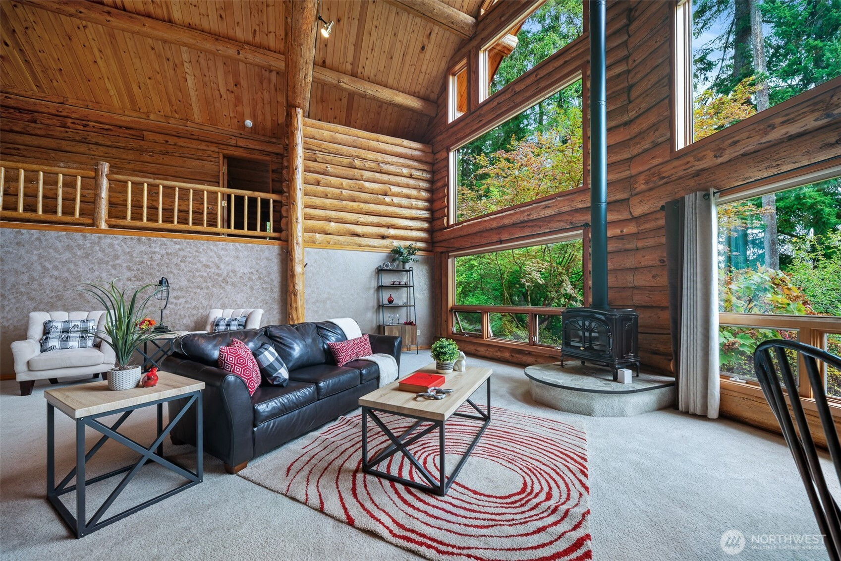 Meander through towering firs and cedars to this breathtaking 3,000+/- sq ft log lodge on 5+/- private acres off Johnson Point, showcasing a majestic Mt. Rainier view. Enjoy the feeling of living in the wilderness while still being close to town. The expansive great room pairs beautifully with a huge chef’s kitchen, ideal for entertaining. A split-bedroom plan ensures privacy, while outdoors offers multiple decks, two firepits, a charming cabin perfect for guests or crafting, and open fields for livestock. Durable metal roof, propane or wood-powered radiant heat, and an oversized 3-car garage complete this rare retreat blending seclusion with modern convenience.