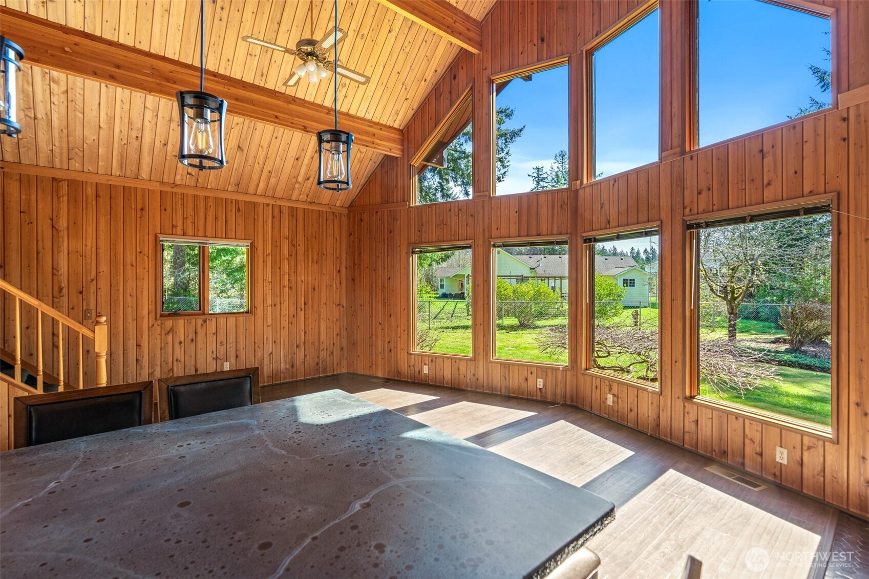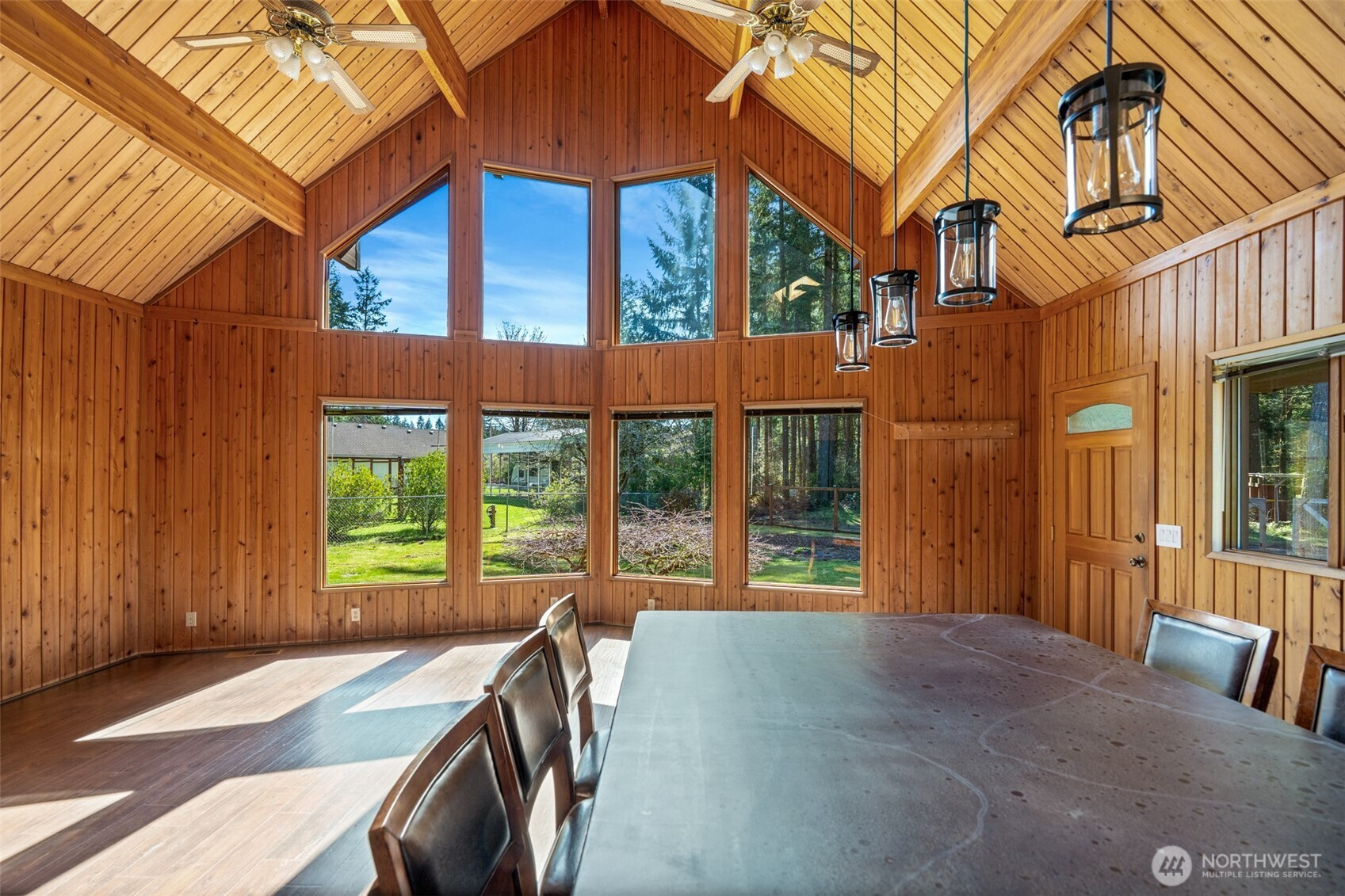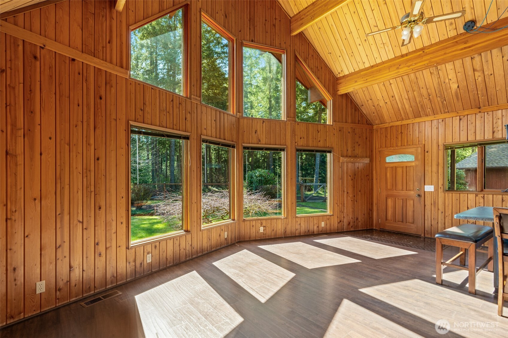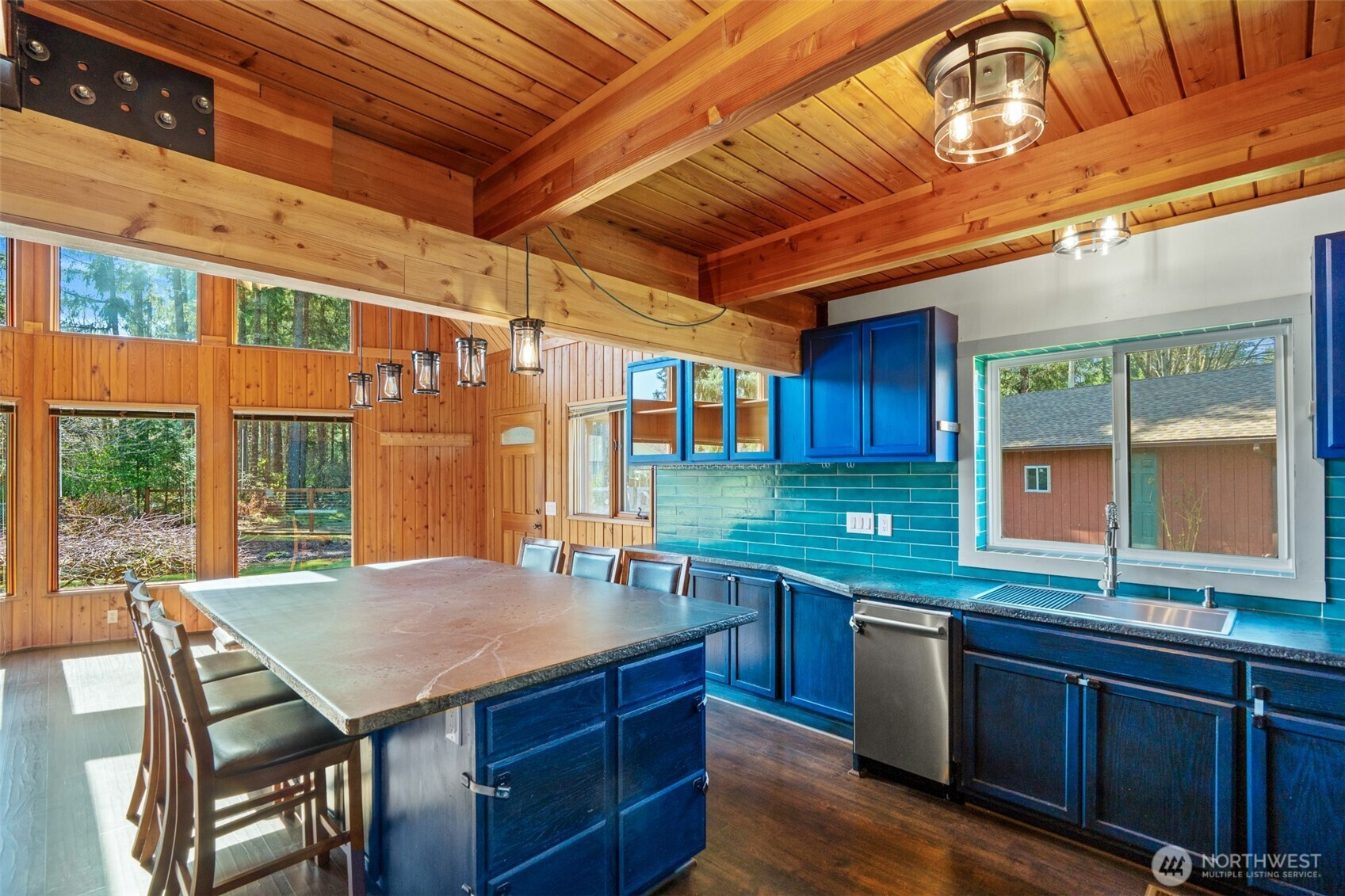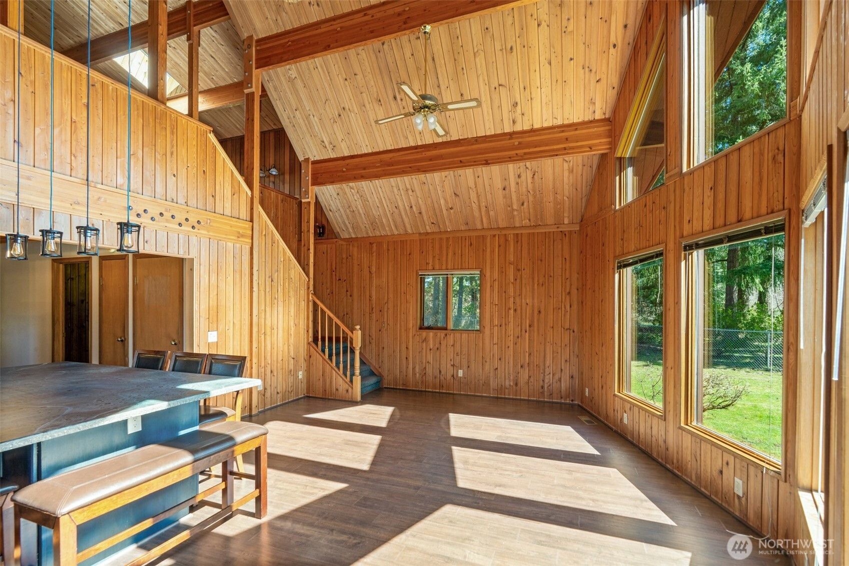 Stunning custom cedar home with expansive shop on a shy acre in the peaceful Offut Lake community. Soaring ceilings with exposed beams and wood paneling are illuminated by the sprawling wall of windows upon entry. Beautifully redesigned kitchen built with entertaining in mind features large center island with wrap around seating, SS appliances and tile backsplash. Primary bedroom loft with ¾ bath and walk in closet. Bonus room in the back of the home with wood stove can be used as a second living area, guest room or as the space needed to satisfy your lifestyle needs. Heated 52’X24’ shop with workbenches perfect for the woodworker, car collector or any hobbyist that needs more space. Shop built with 2 sets of garage doors offers the flexibility to separate the space into different areas. Stretch out in the fully fenced level backyard and let your garden dreams come to fruition this spring! Recent updates include full kitchen remodel, net metered solar energy system, laminate flooring and 30yr roof.