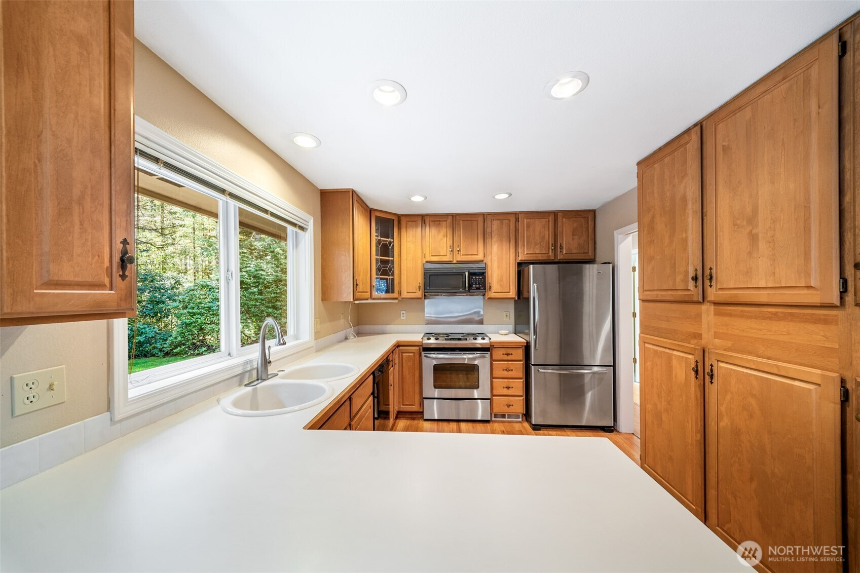 Classic Cougar Ridge rambler on ~.39 +/- acres in a serene, park-like setting! Bright and inviting with oak hardwood floors, vaulted ceilings, and spacious rooms throughout. Split-bedroom layout offers a private primary suite with 5-piece bath . Enjoy a vaulted family room w/built-ins, separate living room plus huge 3-car garage w/ample storage. Relax or entertain on the back deck overlooking peaceful surroundings. Beautiful, manicured landscaping w/Sprinkler system...move in and enjoy!