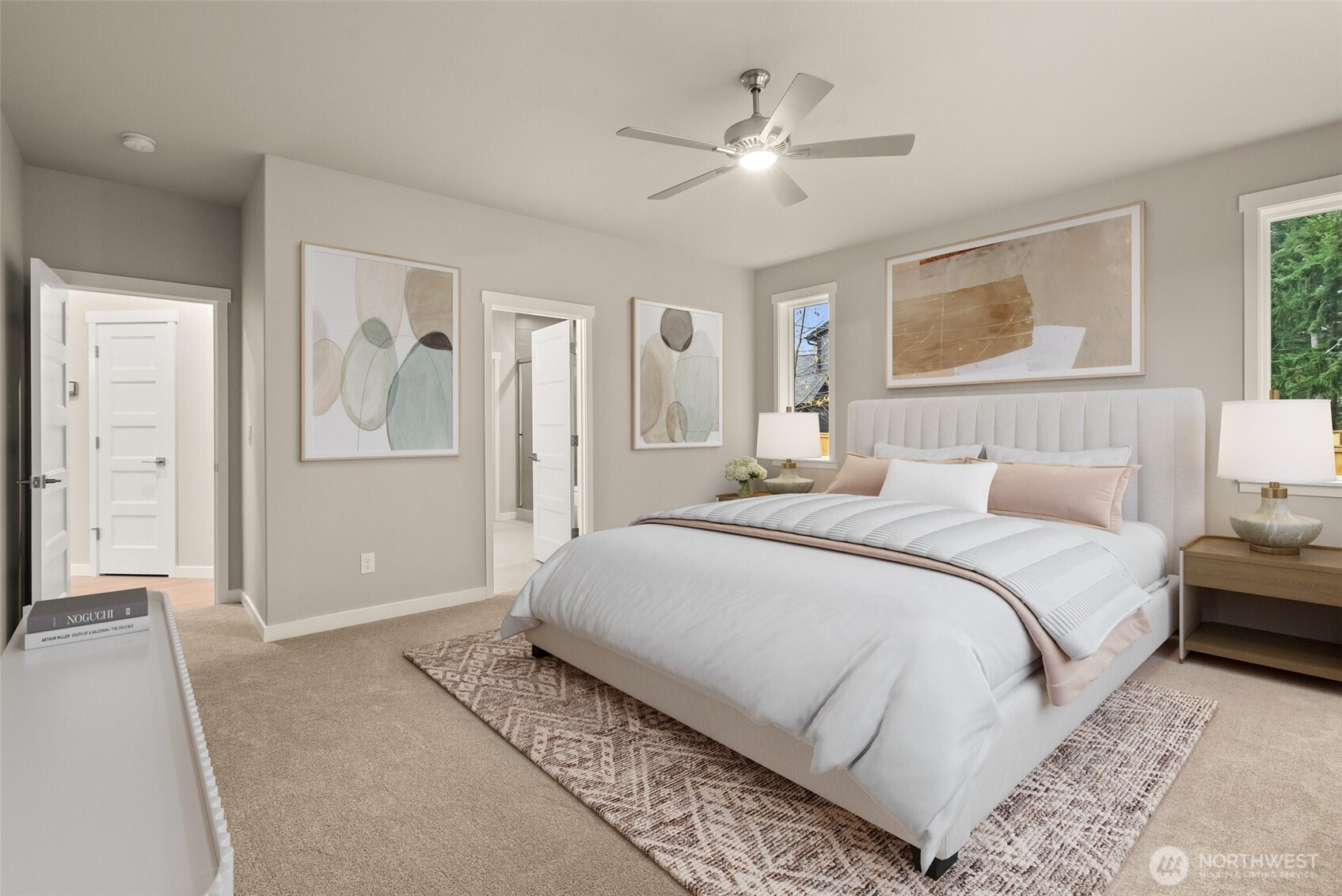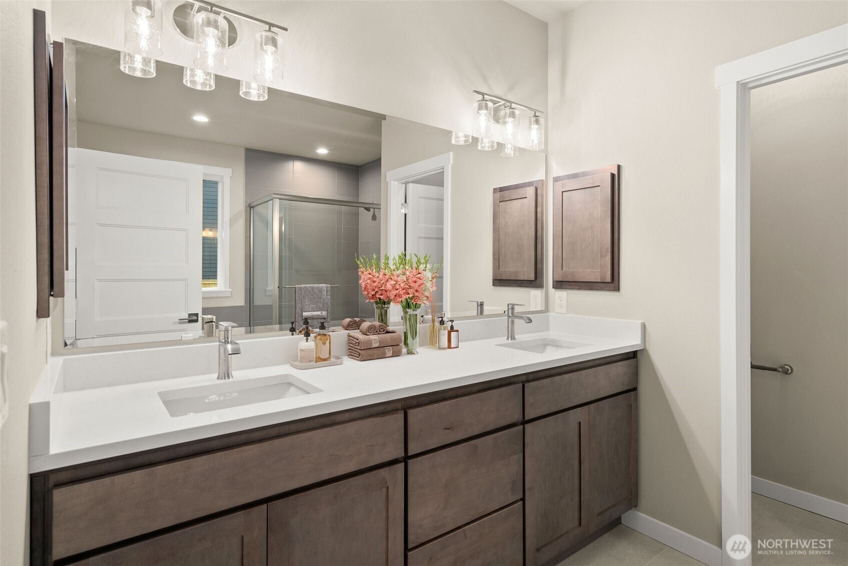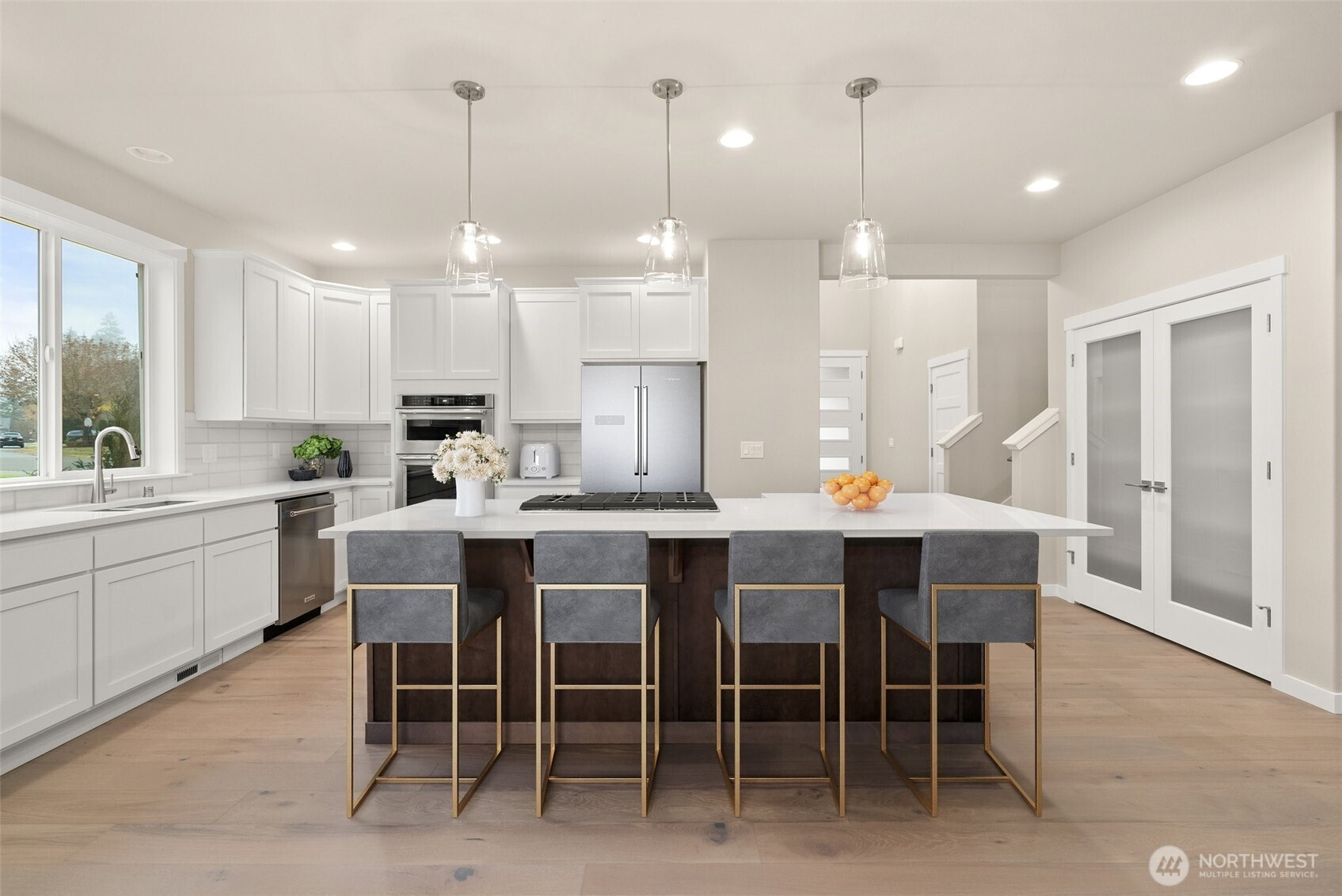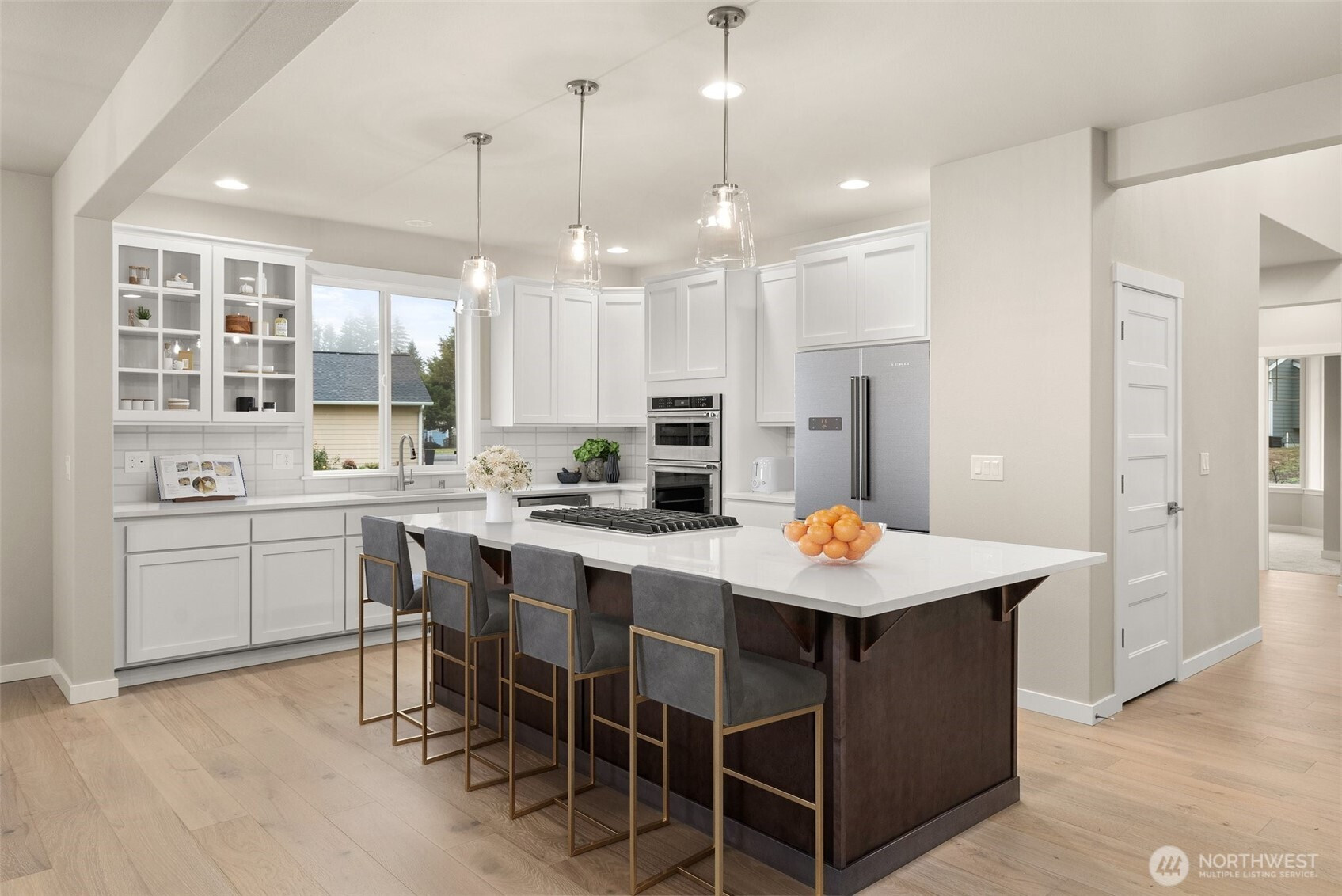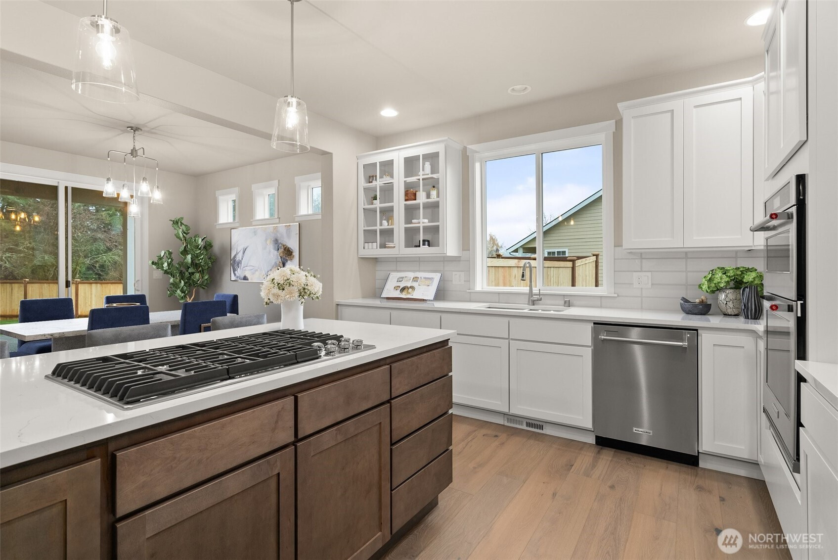 Welcome to the Pebble plan in Trosper Woods—Rob Rice Homes’ newest community in Tumwater where timeless style meets modern efficiency. This spacious 2,613 sq. ft. home features a main-floor primary suite, 2 additional bdrms, 3/4 bath, and a flexible upstairs retreat w/bonus room, full bath, and 4th bdrm. Great room w/vaulted ceilings & a gas fireplace, open to kitchen that impresses w/quartz counters, full tile backsplash, Maple cabinetry, and upgraded KitchenAid appliances (differ from photos). Enjoy hardwood floors, a spa-inspired 5-piece primary w/vessel tub & full tile shower, and energy-saving features like solar panels, cold-climate heat pump & triple-pane windows. All on spacious lot w/services minutes away! Photos virtually staged.