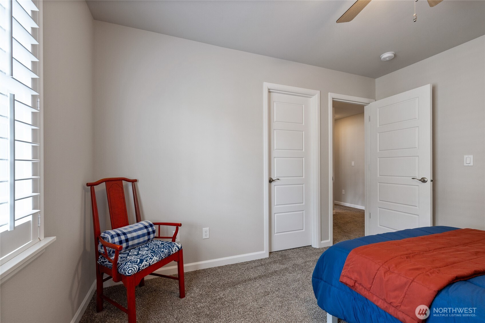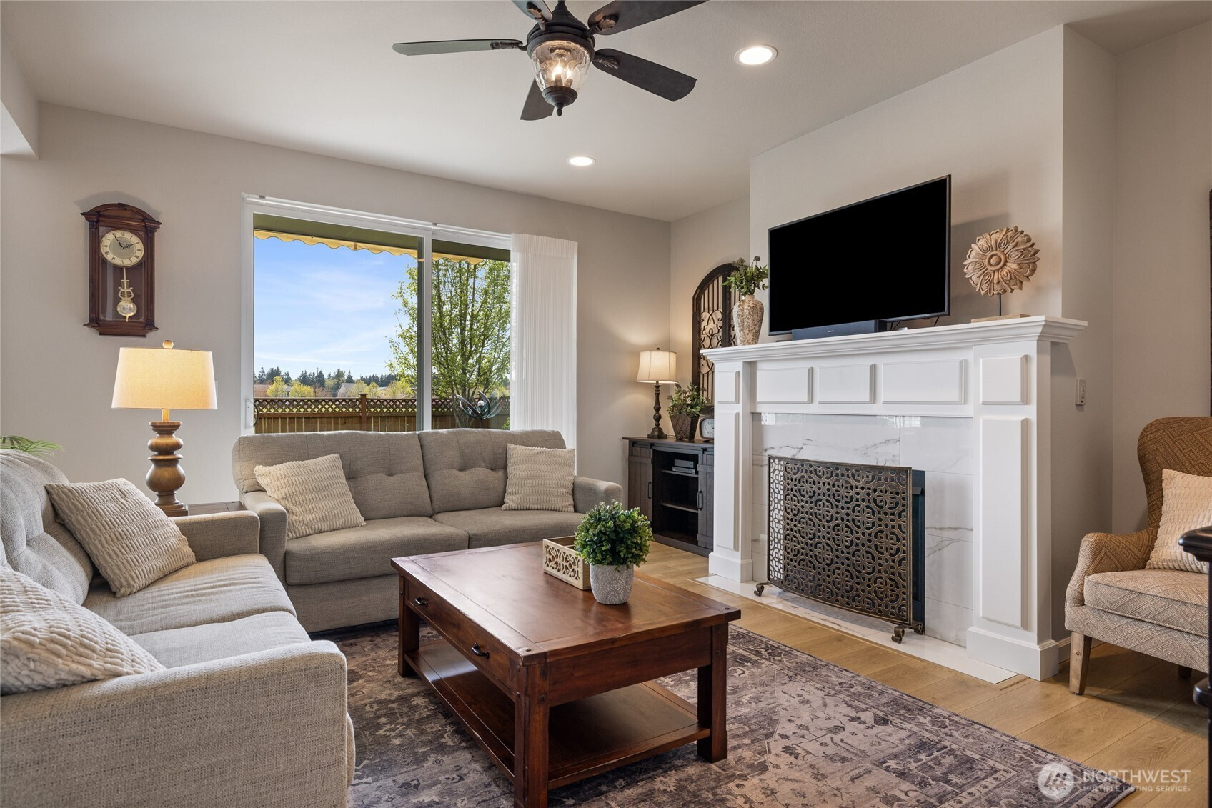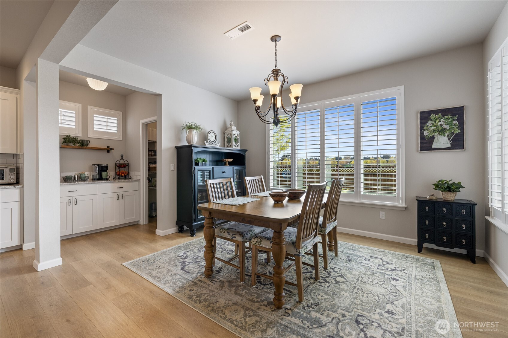 Welcome home to this exquisitely maintained residence in Horizon Pointe, offering space, functionality, and privacy, with beautiful plantation shutters throughout. This property features laminate hardwood throughout the main level, a dedicated downstairs office with French doors, and a well-appointed kitchen with granite countertops, staggered cabinetry, and a walk-in pantry for added storage.Upstairs, all bedrooms include walk-in closets, while the expansive primary suite showcases vaulted ceilings, an oversized walk-in closet, and a 5-piece bath with separated dual sinks and a tiled shower.Step outside to a truly private backyard with no neighbors beyond the rear fence, plus an expandable awning over the patio—perfect for relaxing or entertaining year-round. Just steps from Horizon Pointe Park, enjoy easy access to open space and recreation. Conveniently located near JBLM and shopping, this property offers privacy where it matters and access to everything else. NO HOA DUES! Pre-inspection available for your piece of mind.