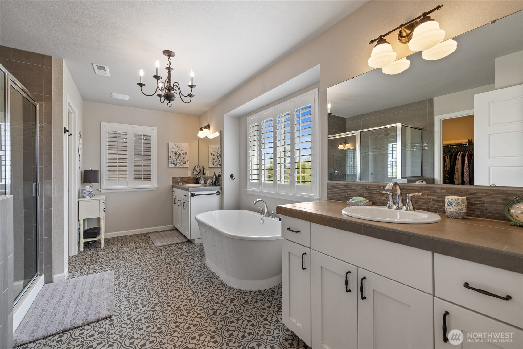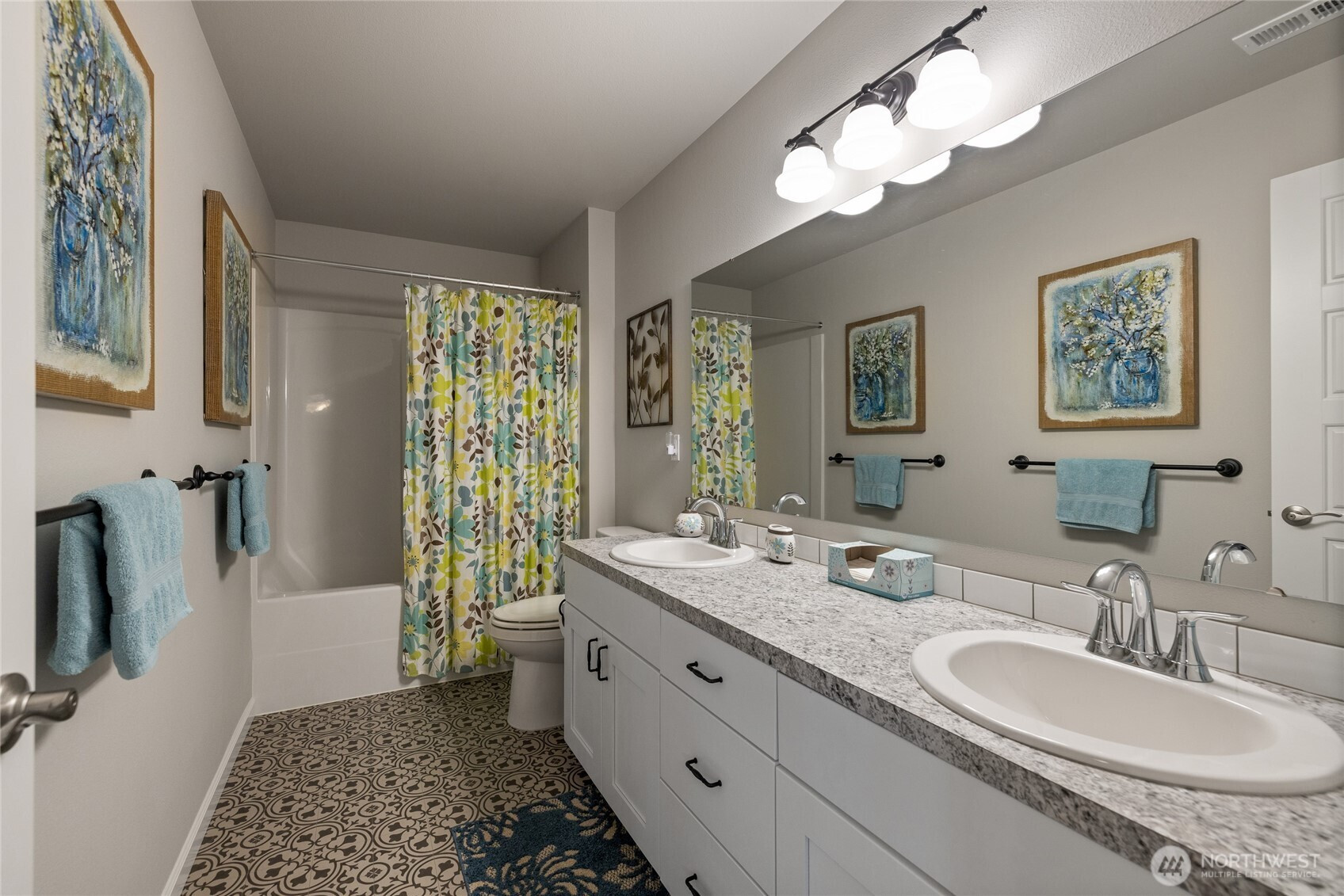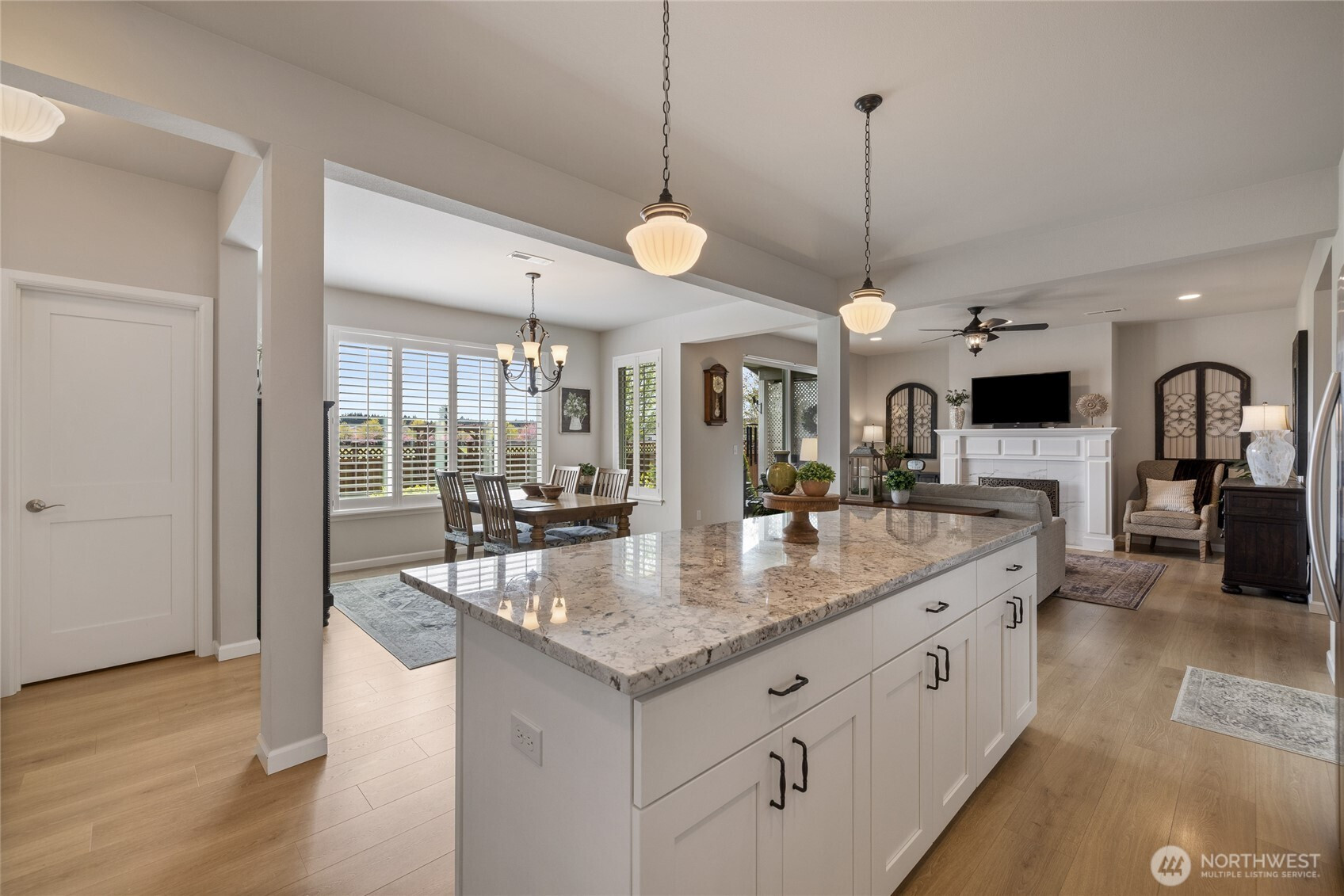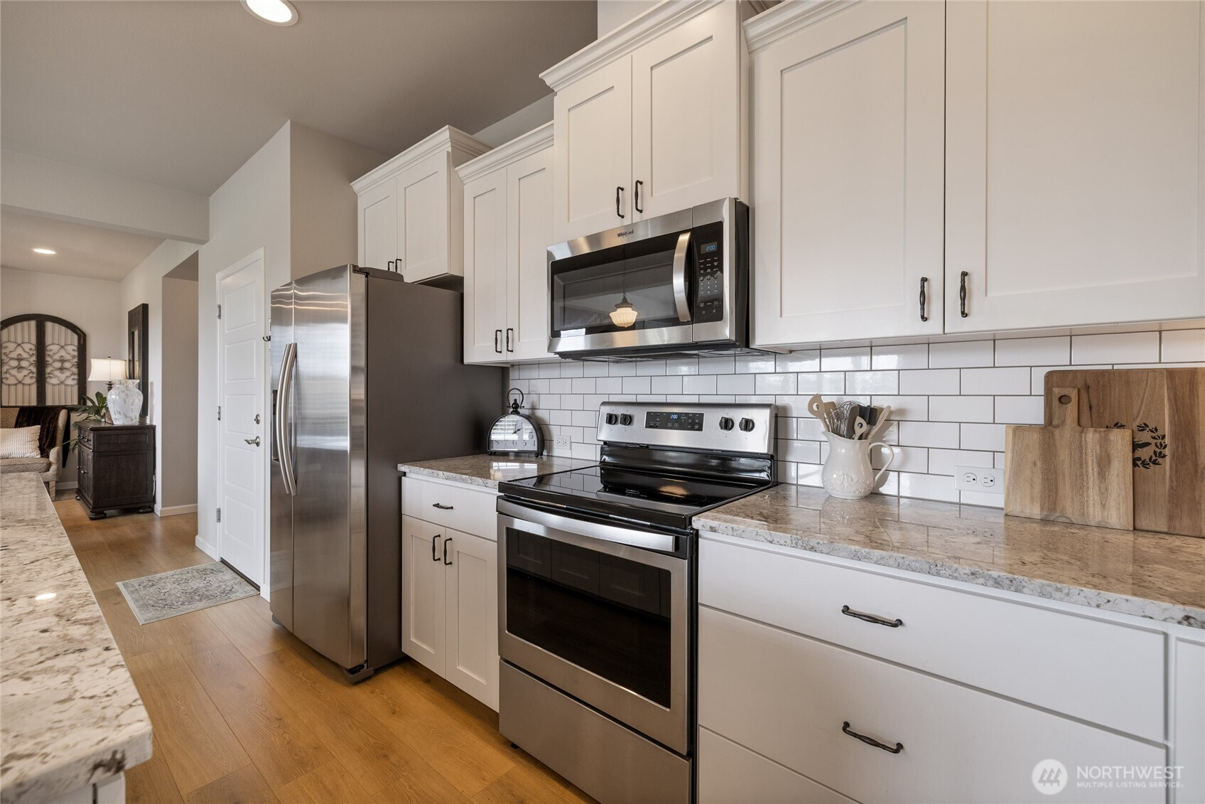 Welcome home to this exquisitely maintained residence in Horizon Pointe, offering space, functionality, and privacy, with beautiful plantation shutters throughout. This property features laminate hardwood throughout the main level, a dedicated downstairs office with French doors, and a well-appointed kitchen with granite countertops, staggered cabinetry, and a walk-in pantry for added storage.Upstairs, all bedrooms include walk-in closets, while the expansive primary suite showcases vaulted ceilings, an oversized walk-in closet, and a 5-piece bath with separated dual sinks and a tiled shower.Step outside to a truly private backyard with no neighbors beyond the rear fence, plus an expandable awning over the patio—perfect for relaxing or entertaining year-round. Just steps from Horizon Pointe Park, enjoy easy access to open space and recreation. Conveniently located near JBLM and shopping, this property offers privacy where it matters and access to everything else. NO HOA DUES! Pre-inspection available for your piece of mind.