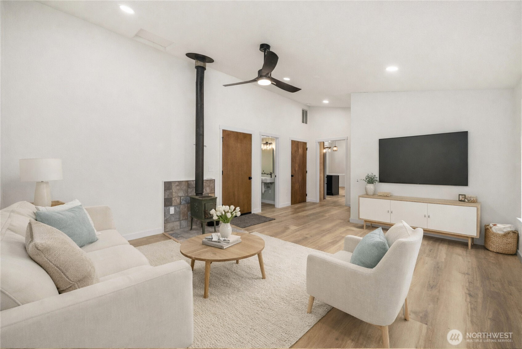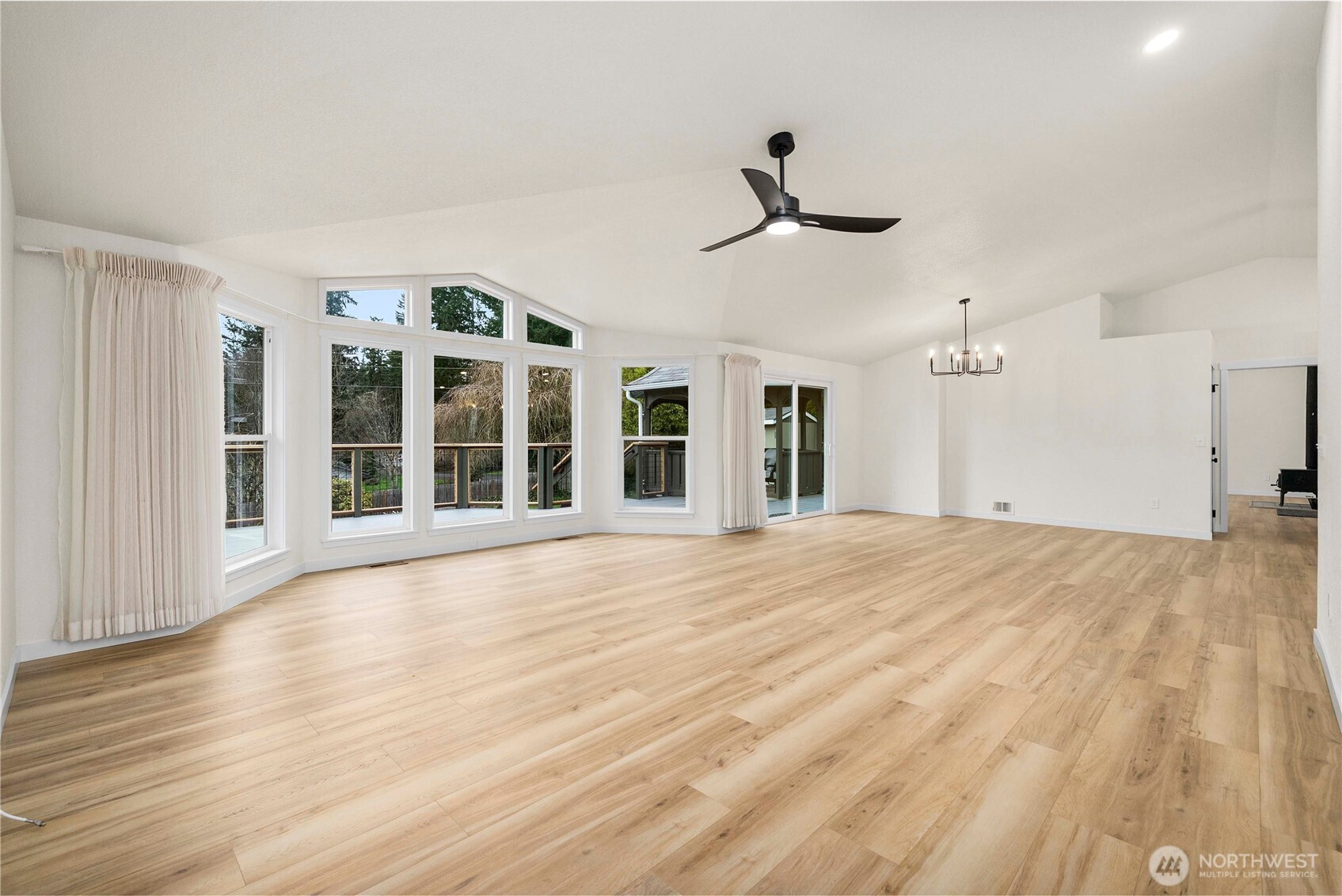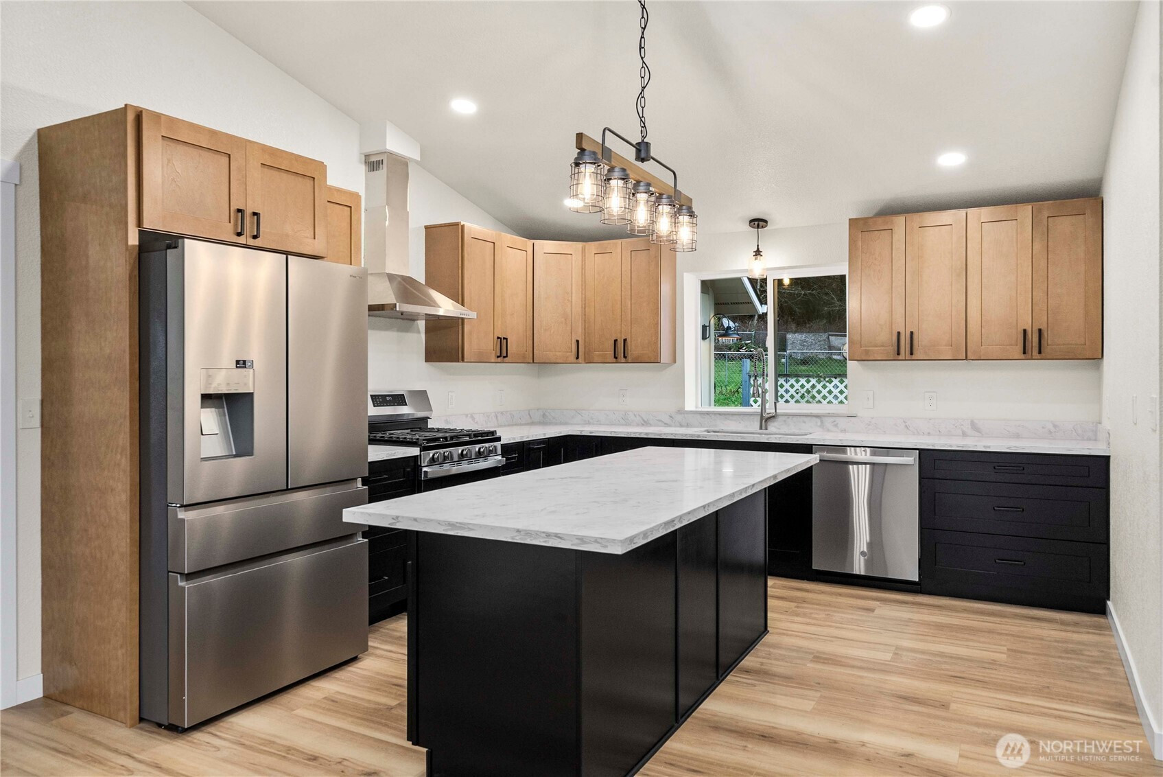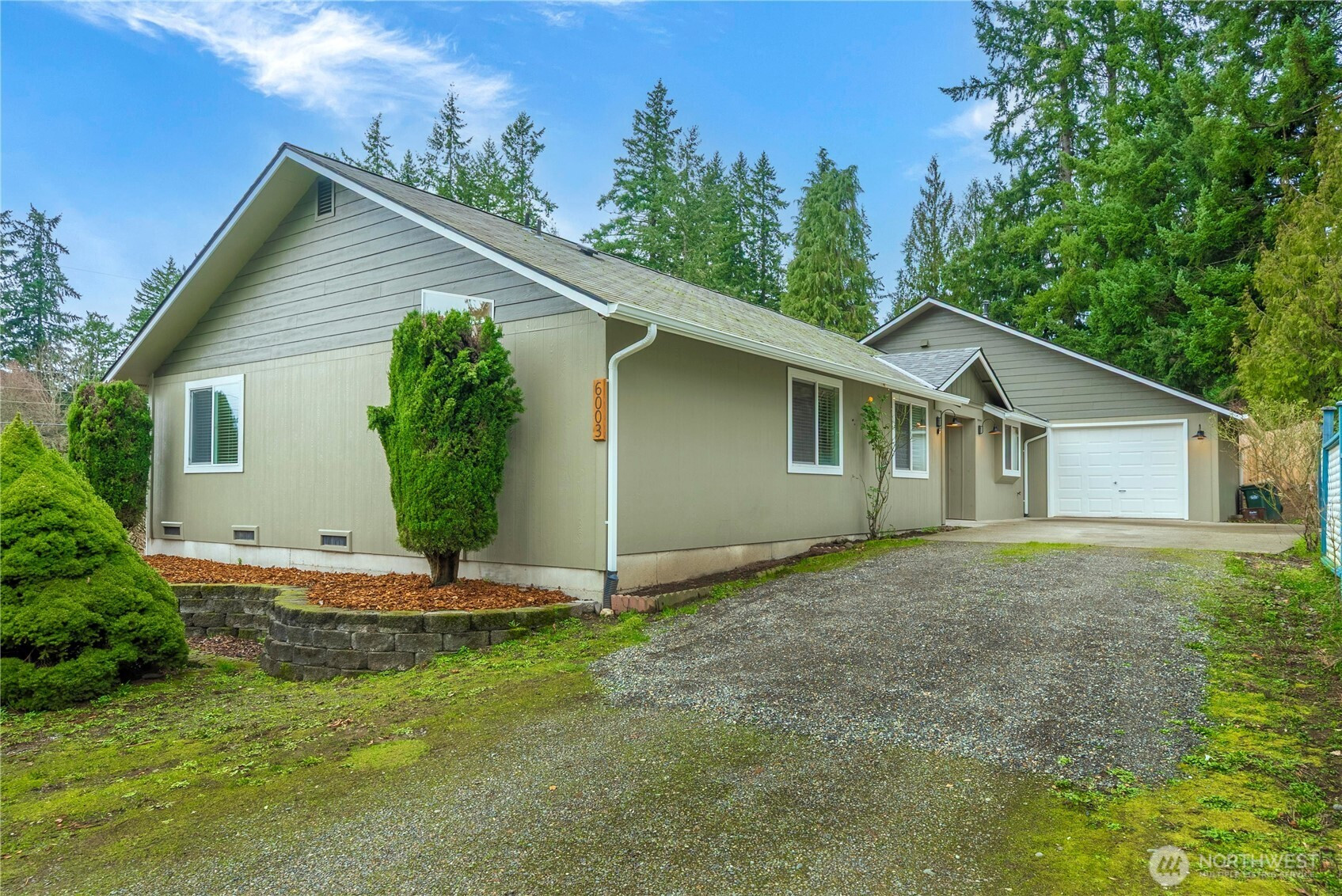Stunning, freshly updated rambler on a desirable corner lot directly across from White Taylor Community Park with lake access & partial water views. This beautifully refreshed home offers a rare combination of modern upgrades, functional living, and an exceptional location. The light-filled great room features vaulted ceilings, floor-to-ceiling windows, and an open layout designed for both everyday living & entertaining.The brand-new kitchen showcases modern two-tone cabinetry, new stainless steel appliances, updated countertops, and a spacious center island with eating bar, all flowing seamlessly into the main living and dining spaces. Recent improvements include new flooring & carpet throughout, fresh interior and exterior paint, new light fixtures, & an updated bathroom w/ stylish finishes. The primary suite offers a spacious walk-in closet w/ custom shelving, while additional bedrooms feature vaulted ceilings that enhance the home’s open, airy feel. A versatile finished room with closet provides flexible use as a third bedroom, home office, or bonus space. Enjoy outdoor living on the expansive back deck with gazebo, ideal for entertaining or relaxing while taking in the mature landscaping & fruit trees. Additional features include a dedicated laundry room with built-in storage, shed, and an oversized one-car garage with shop and storage space. With park amenities and lake access just steps away, this move-in-ready home delivers comfort, style, and an unbeatable setting.