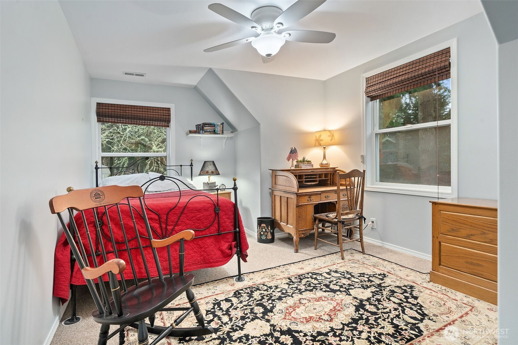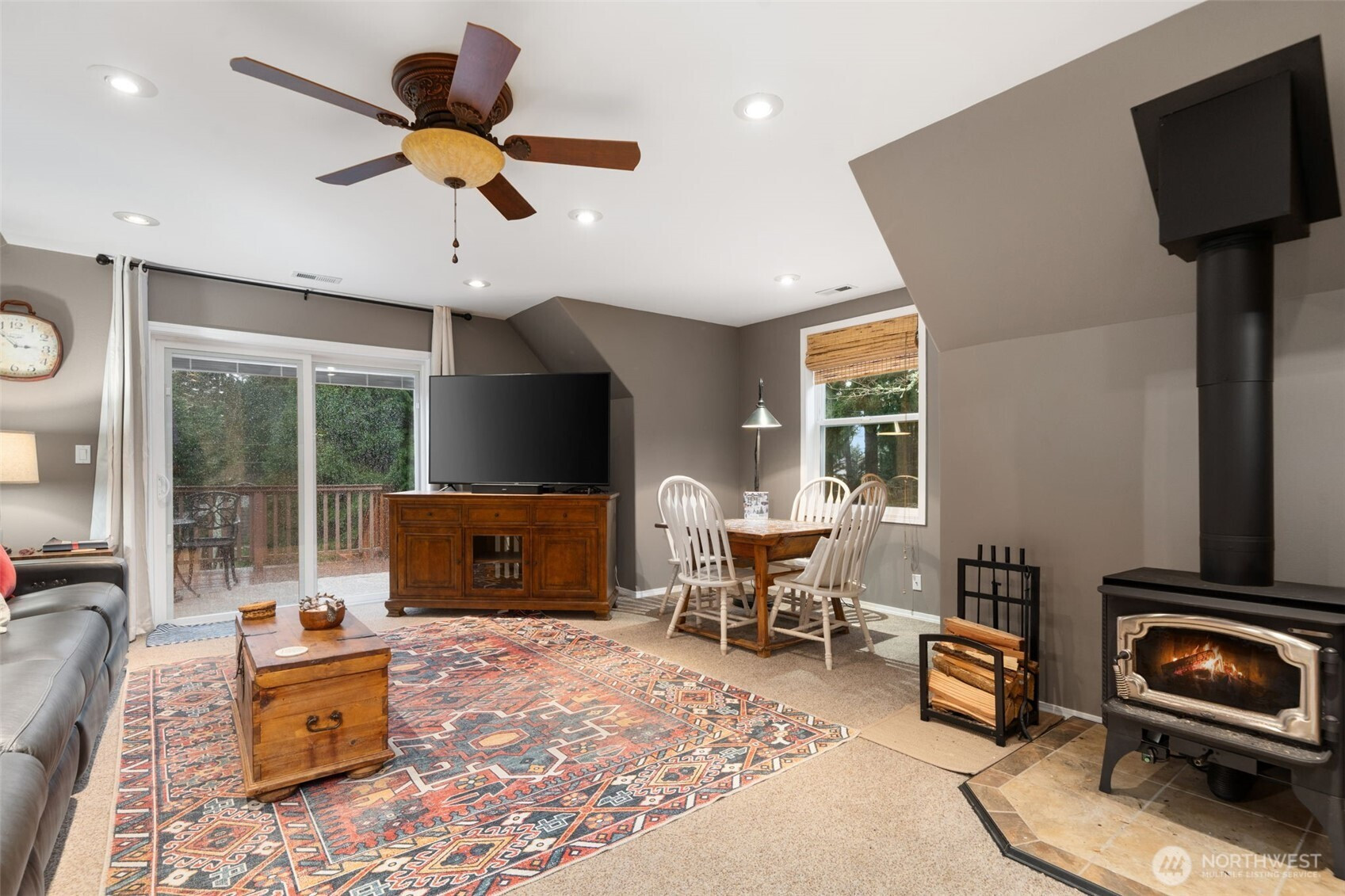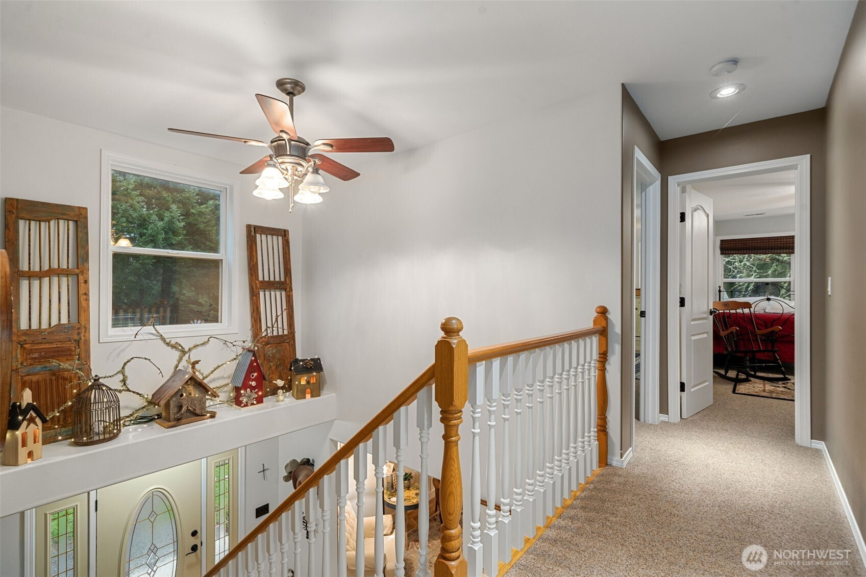 Immaculate home on just under 2 level acres! Enter through a wrought iron gate to fully fenced grounds, a 3-bay shop, two sheds, and a spacious covered patio ideal for year-round living. The main-level primary suite features a 5-piece bath, while the open kitchen flows into a large great room with a gas fireplace. Upstairs offers a private family room with a newer HE wood insert and a balcony overlooking the property. Major upgrades include newer HE HVAC with A/C, a newer 40-year roof, brand new furnace, new tankless water heater, freshly painted interior, cherry cabinetry, and a fenced garden. A rare, move-in-ready estate with space, privacy, and endless potential!