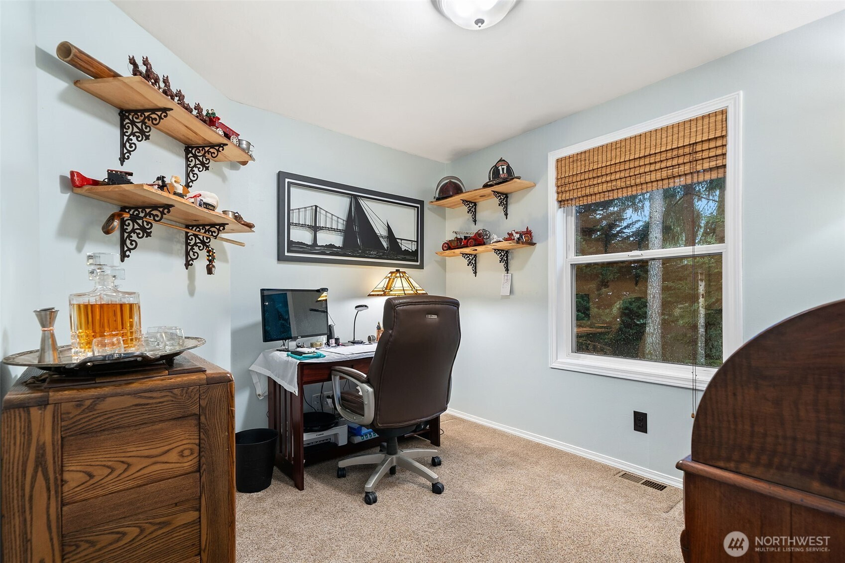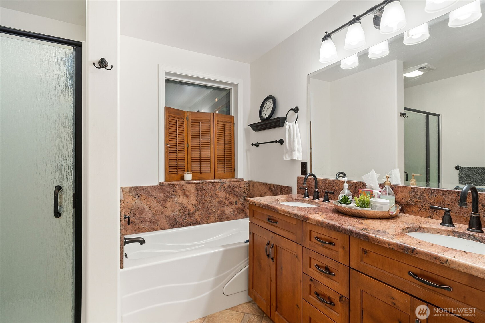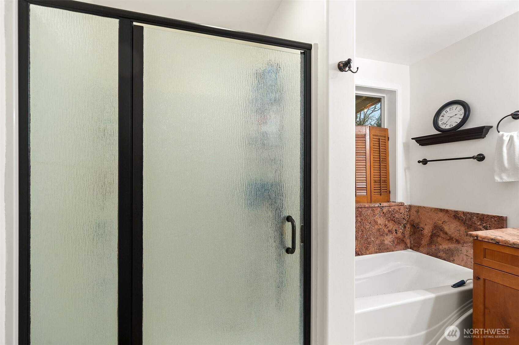 Immaculate home on just under 2 level acres! Enter through a wrought iron gate to fully fenced grounds, a 3-bay shop, two sheds, and a spacious covered patio ideal for year-round living. The main-level primary suite features a 5-piece bath, while the open kitchen flows into a large great room with a gas fireplace. Upstairs offers a private family room with a newer HE wood insert and a balcony overlooking the property. Major upgrades include newer HE HVAC with A/C, a newer 40-year roof, brand new furnace, new tankless water heater, freshly painted interior, cherry cabinetry, and a fenced garden. A rare, move-in-ready estate with space, privacy, and endless potential!