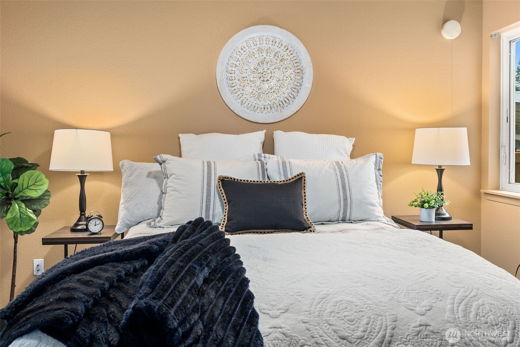 Centrally-located, low-maintenance living in Lacey! This light, bright home has a convenient main-floor primary bedroom with full bathroom en suite, walk-in closet, and two more bedrooms & a second full bathroom upstairs. The two year old roof gives peace of mind, there's a generous two car garage for parking or storage, a covered patio out back, and an easy-to-care-for fenced yard abutting HOA green space; the many HOA amenities include lawn care, community pool just around the corner, garbage collection, parks, and clubhouse. Easy commuting to shopping, dining, schools, I-5, JBLM (~11 miles), and public transit!