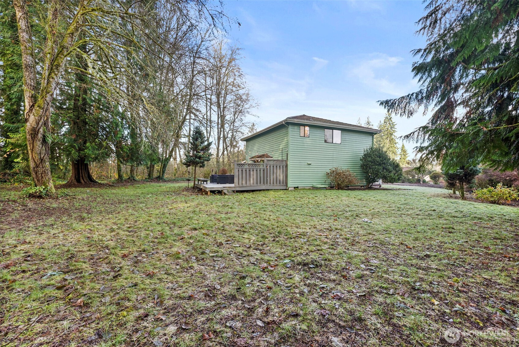 Life here feels peaceful, grounded, and easy. Set at the end of a quiet cul de sac in the heart of Tumwater, this home sits on one of the largest lots in Gold Creek, offering rare space and privacy. Inside, it feels bright and open, with large windows bringing in natural light and full backyard views. The kitchen has generous counter space and a breakfast bar that is ideal for everyday living and gathering. Cozy up by the fireplace or retreat to the primary suite for an escape. Out back, the expansive yard backs to a forested greenbelt, creating a magical year round setting with sunsets, custom lighting, and room to relax. A long driveway, RV or boat parking, and a two car garage make life here as practical as it is peaceful.