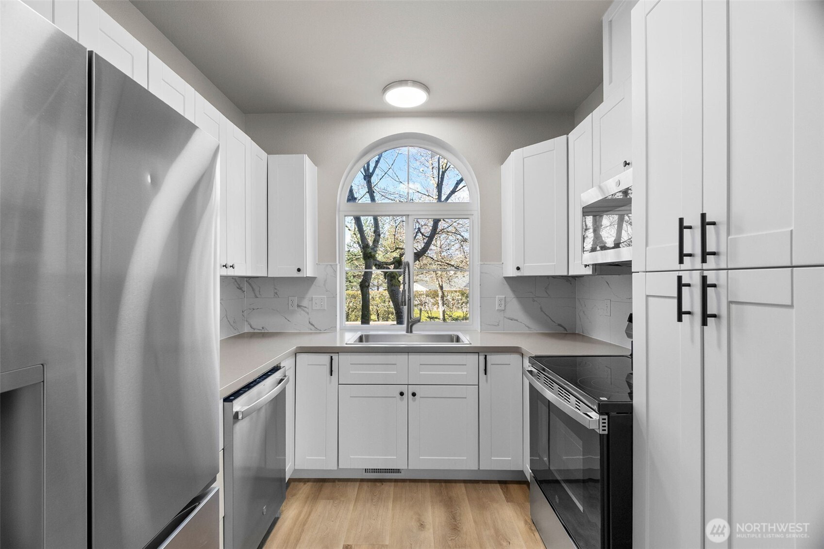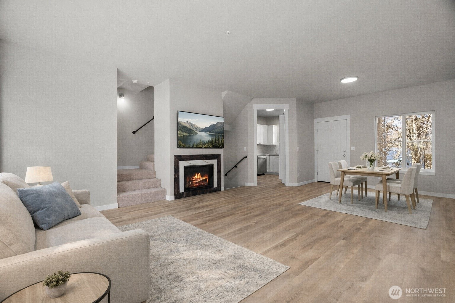 Welcome to Lakepointe Community! This condo was taken down to the sheetrock and thoughtfully rebuilt with all-new systems and finishes, offering truly turnkey living. The completely redesigned kitchen features updated cabinetry, counters, and appliances, opening to a light-filled living area with durable LVP flooring and a new gas fireplace. Both bedrooms include private full baths, with an additional half bath on the main level—ideal for guests. New carpet enhances the bedrooms, and major upgrades include a new furnace and water heater for added peace of mind. Enjoy a small private porch, a 2-car garage, and a park located just across the street. HOA dues of $295/month cover water and garbage. Conveniently located near major shopping and dining with easy access to everyday amenities.